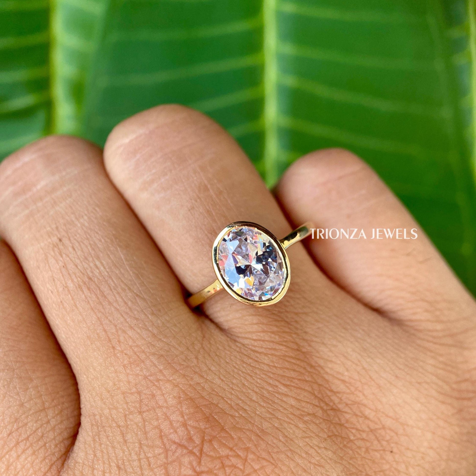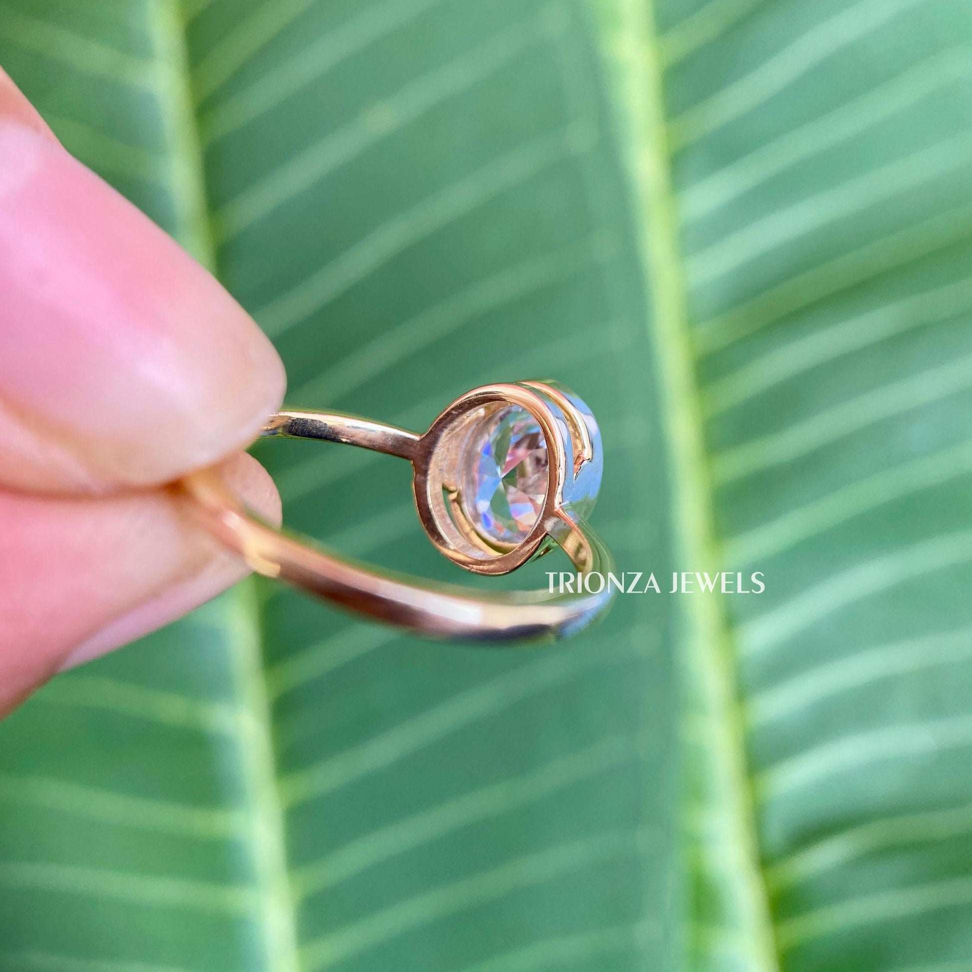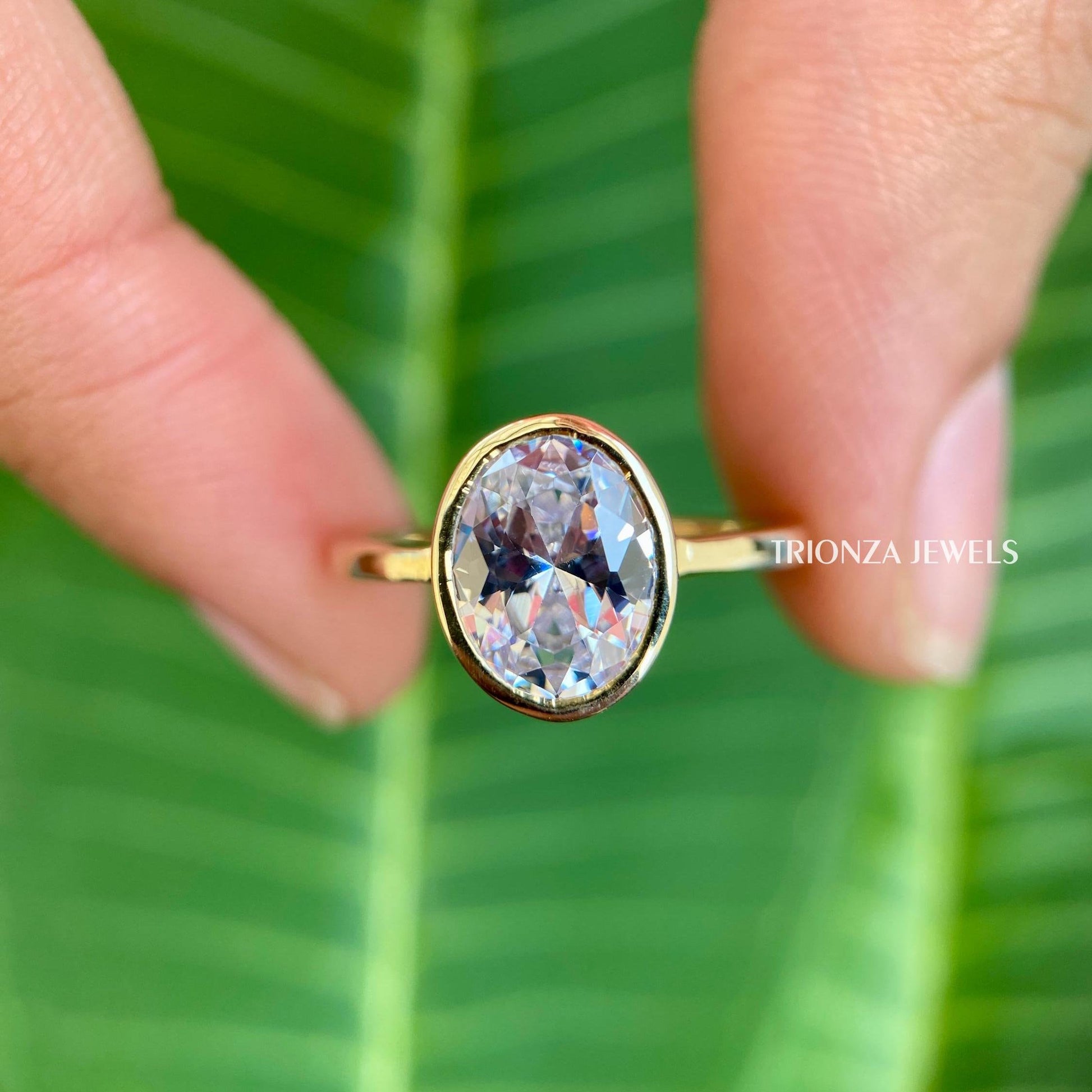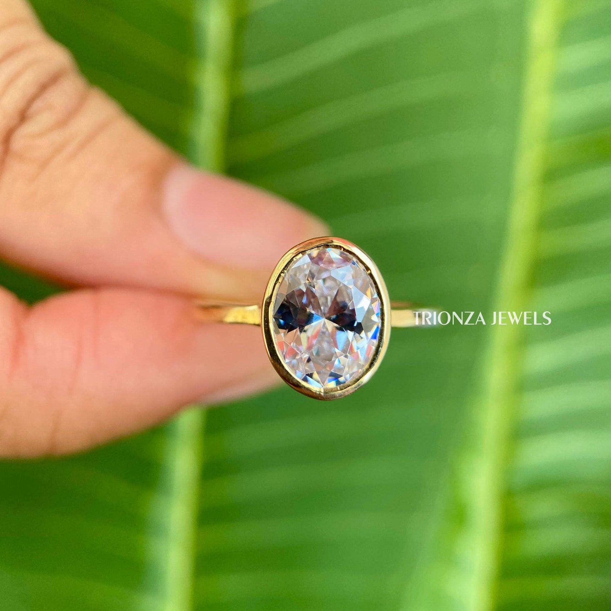 2.00 CT Oval Moissanite Engagement Ring | 14K Gold Half Bezel Solitaire