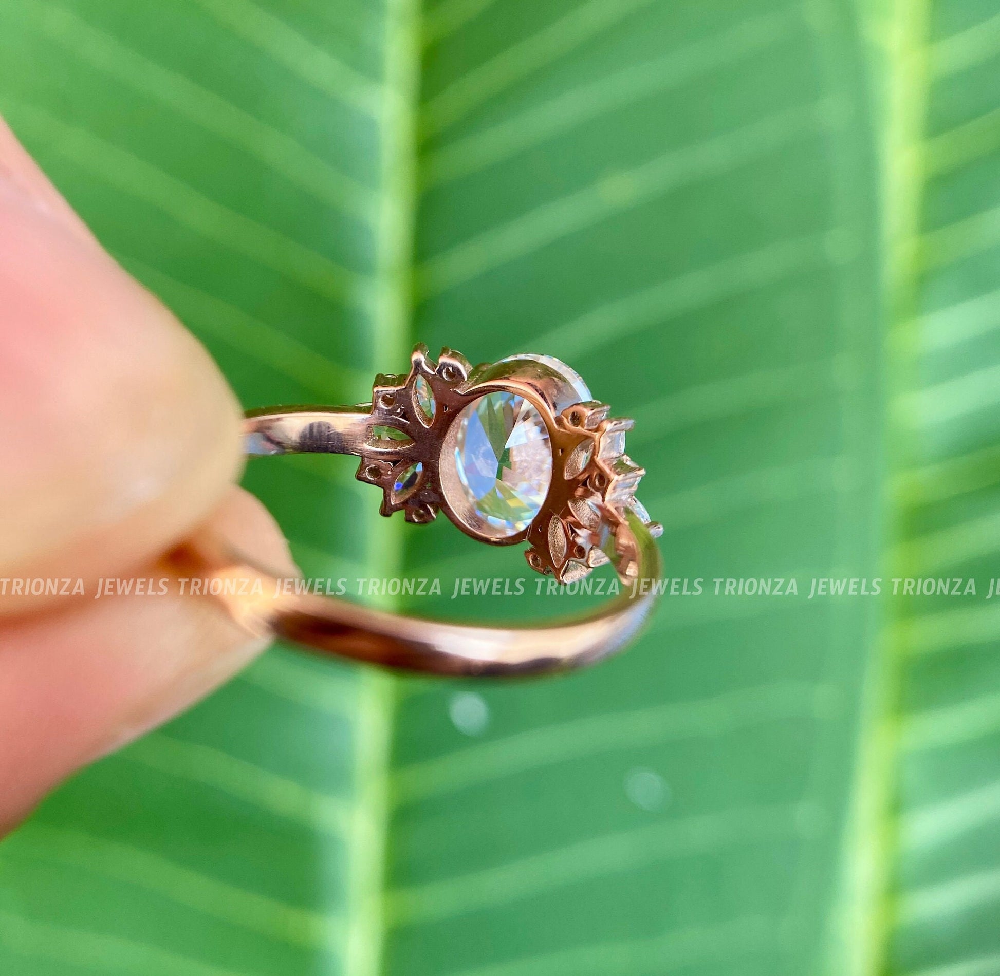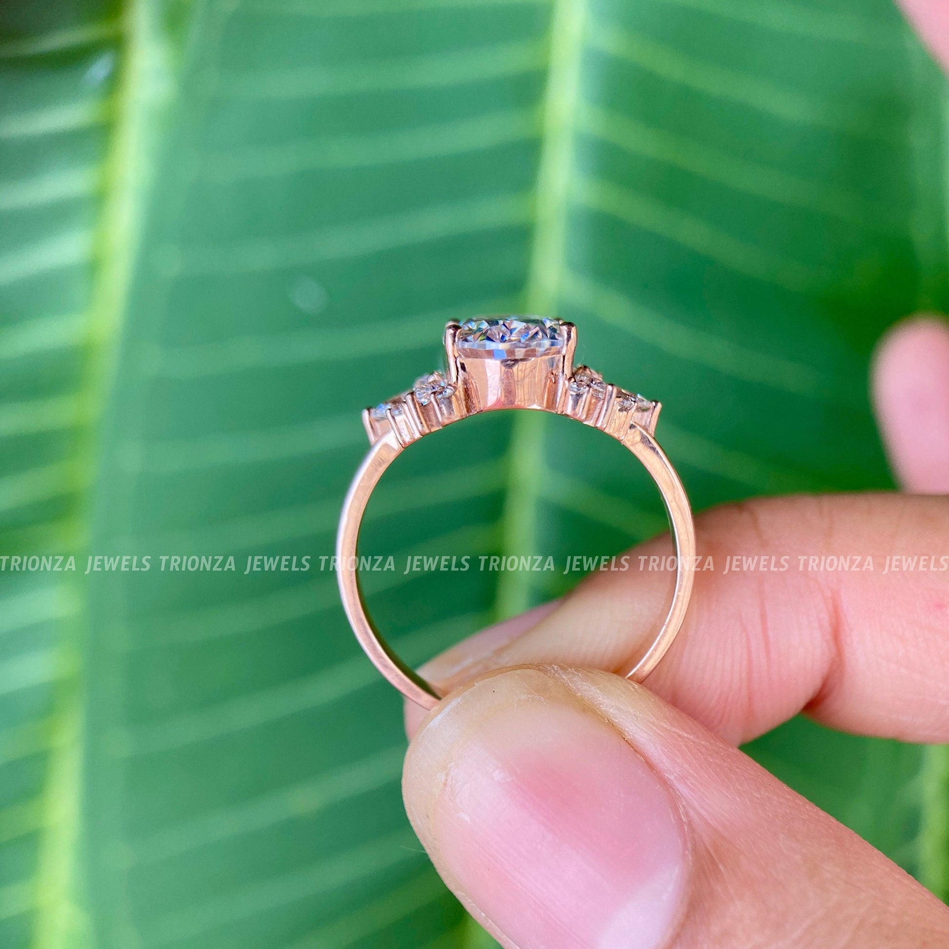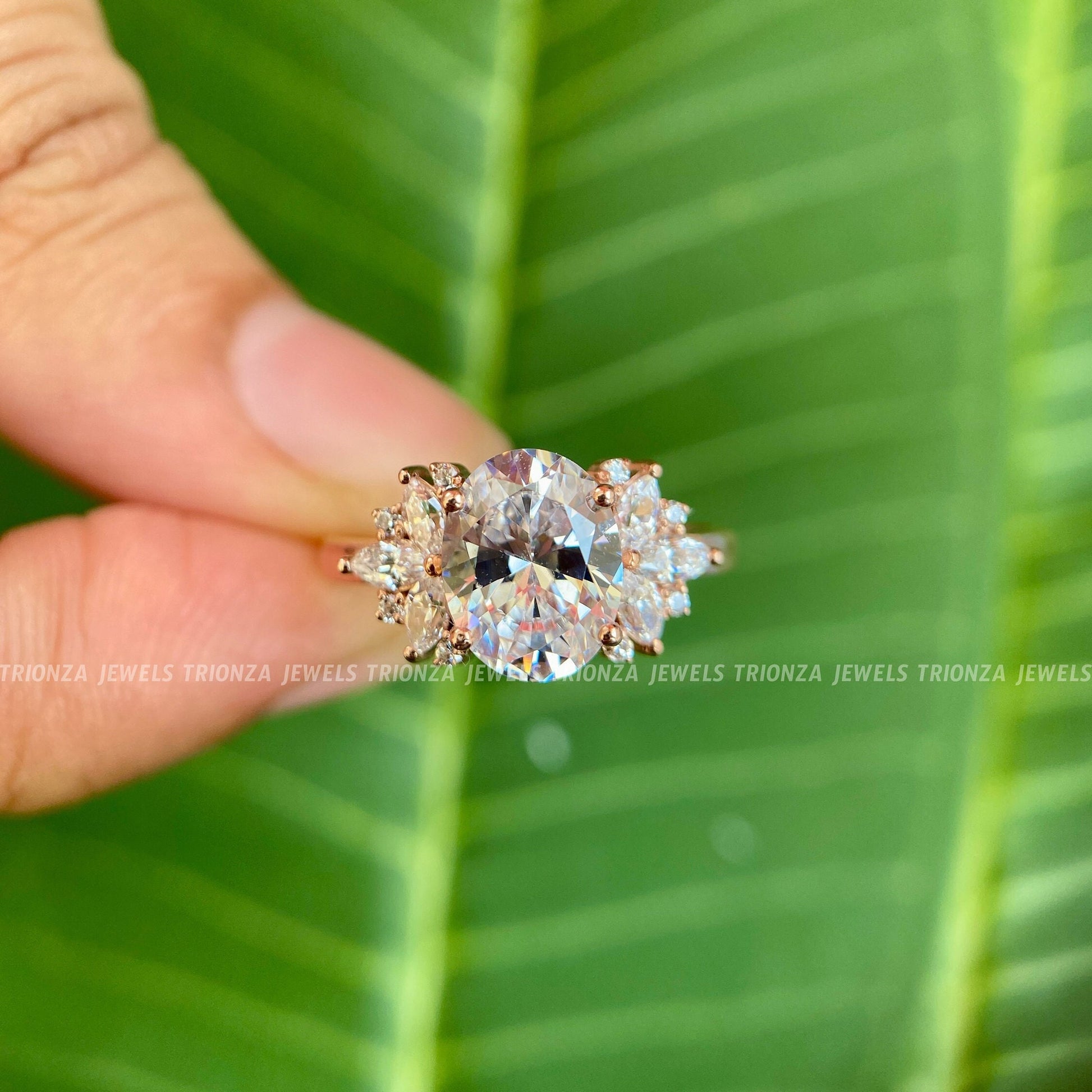 2.00 CT Oval Moissanite Engagement Ring | 14K Gold & Marquise Sides