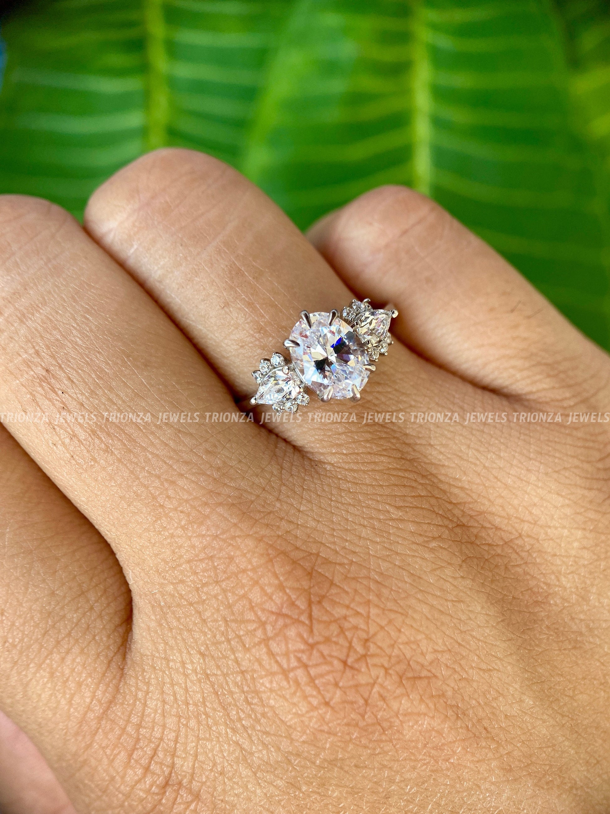 Celebrate your love story with this exquisite 2.00 CT Oval Cut Moissanite Engagement Ring from TRIONZA JEWELS. This stunning vintage-inspired design, crafted in 14K White Gold, features a brilliant oval cut moissanite surrounded by a delicate diamond cluster, making it a perfect promise ring, wedding ring, or anniversary gift for her.