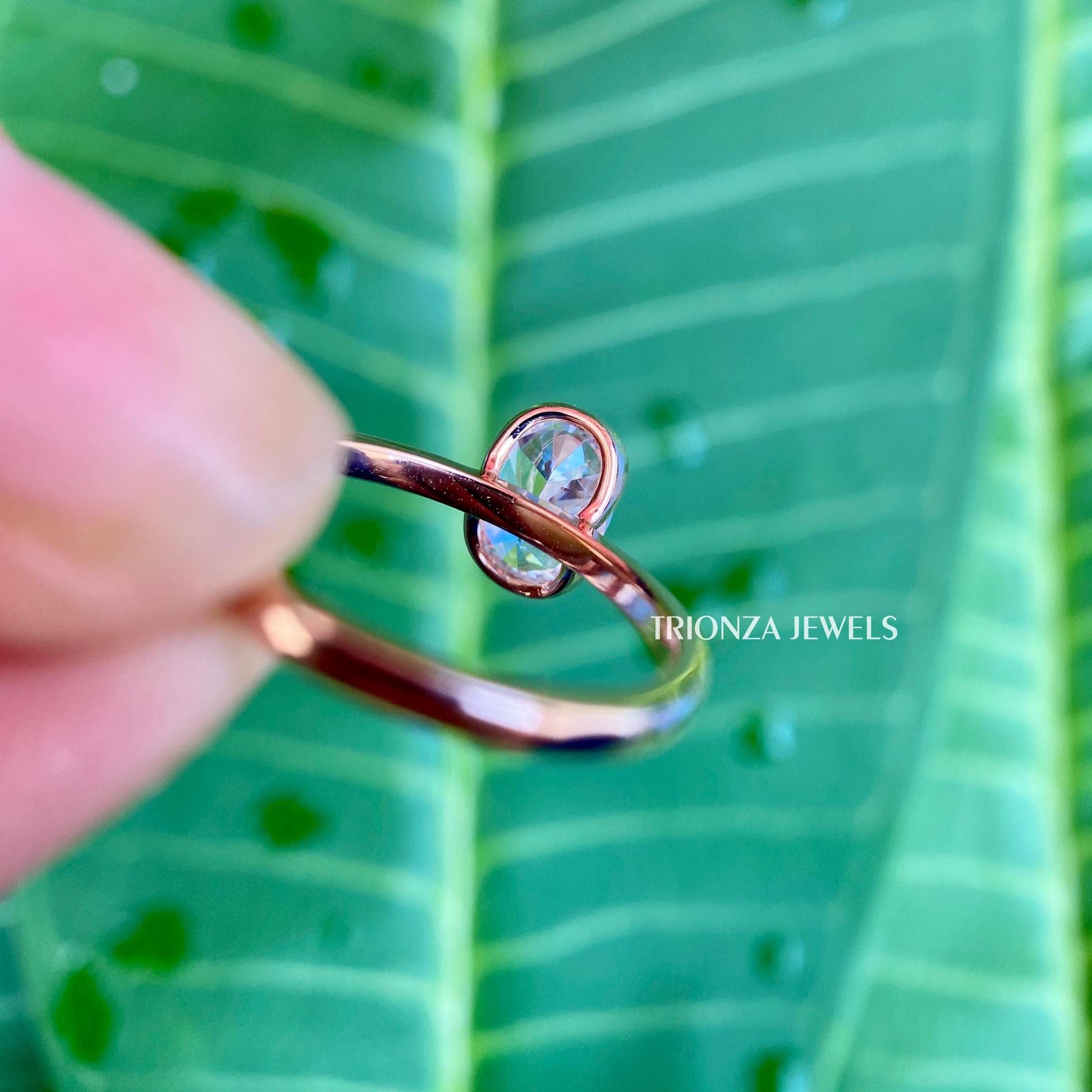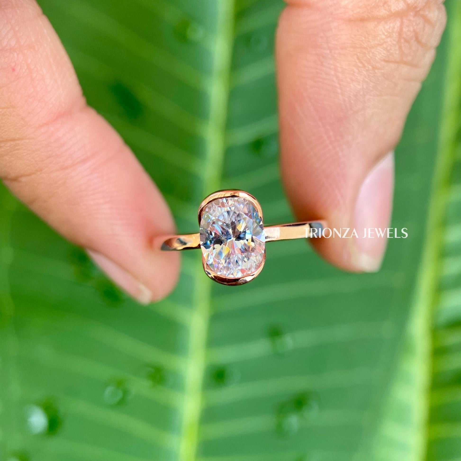 2.00 CT Oval Moissanite Half Bezel Engagement Ring 14K Rose Gold