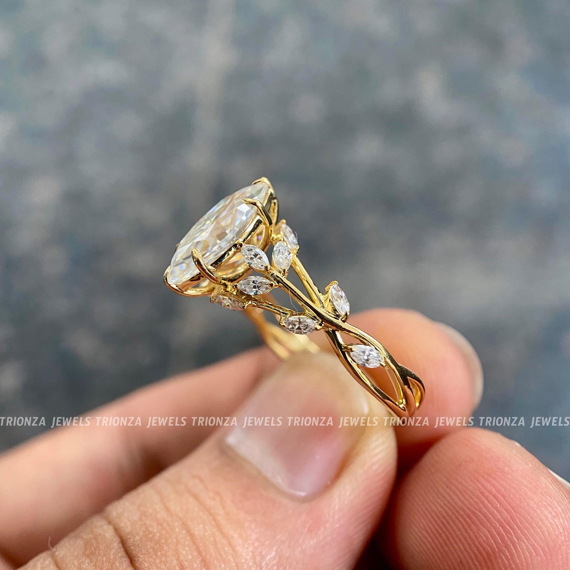 This stunning 2.05 CT Marquise Cut Moissanite Engagement Ring features a brilliant VVS1 solitaire marquise diamond, perfect for a wedding, proposal, or special gift. Handcrafted by Trionza Jewels, this unique ring is available in solid white, yellow, or rose gold.