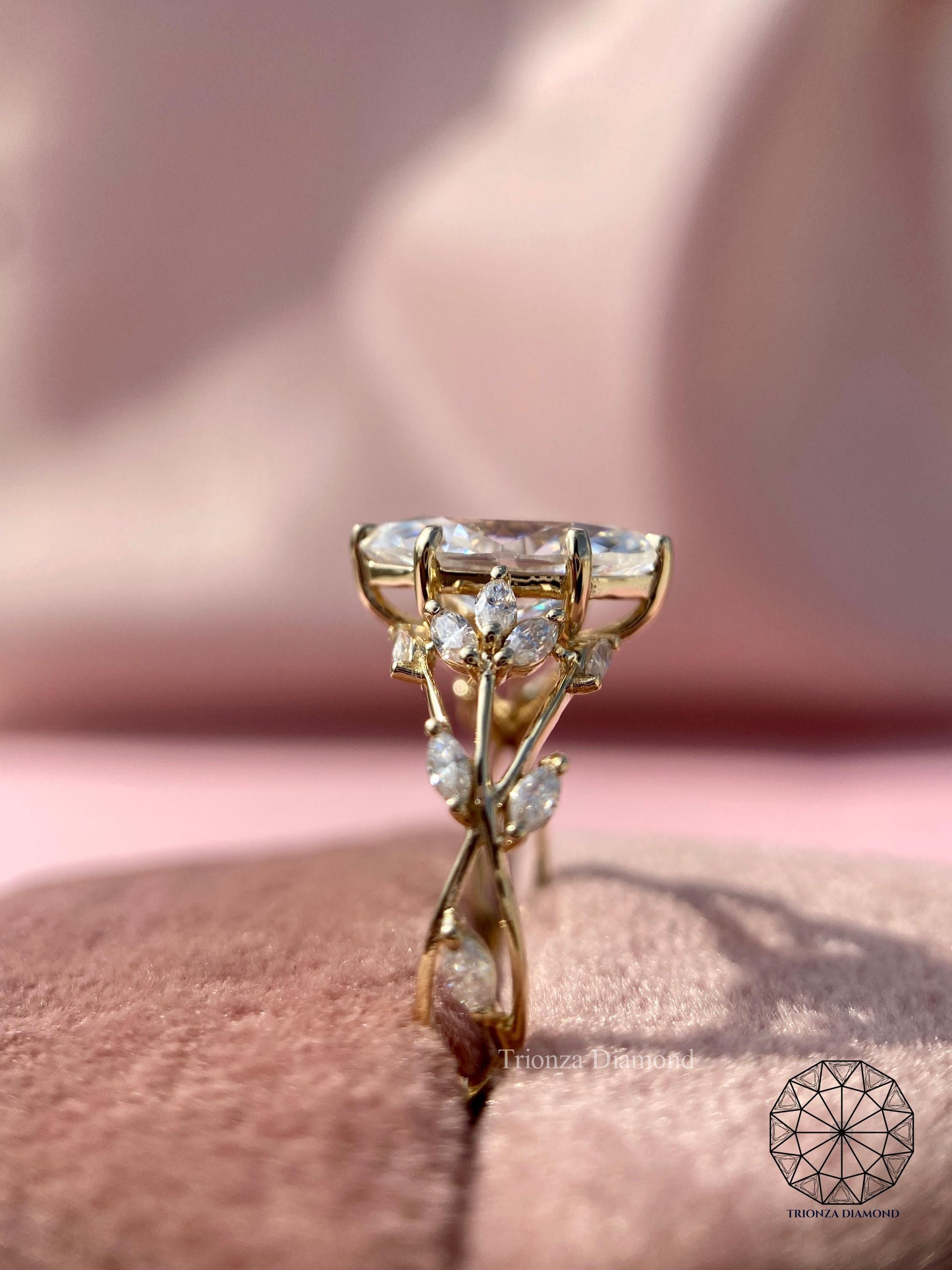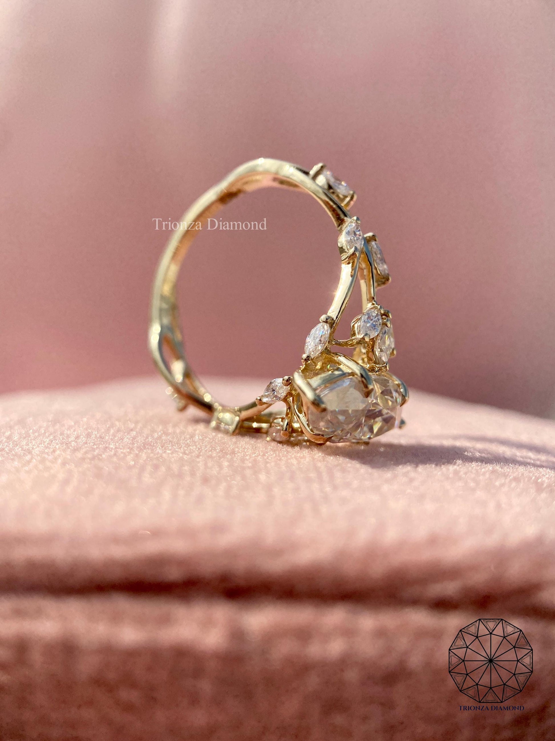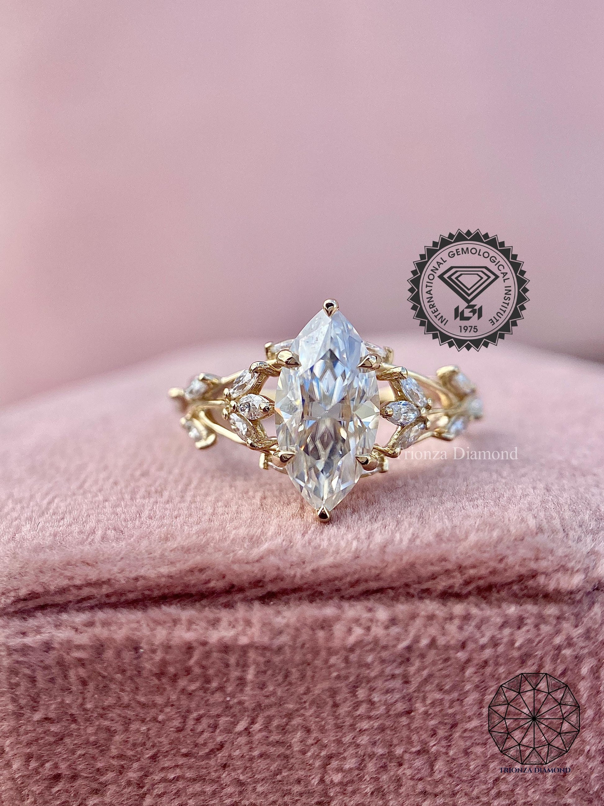 This Nature Inspired 2.07 CT Marquise Cut Lab Grown Diamond Ring, featuring a delicate Floral Branch design, is an IGI Certified CVD Diamond Engagement and Proposal Ring. Designed for nature lovers, it glows with romance and charm. Crafted from eco-conscious materials, it's perfect for conscious yet classy brides.