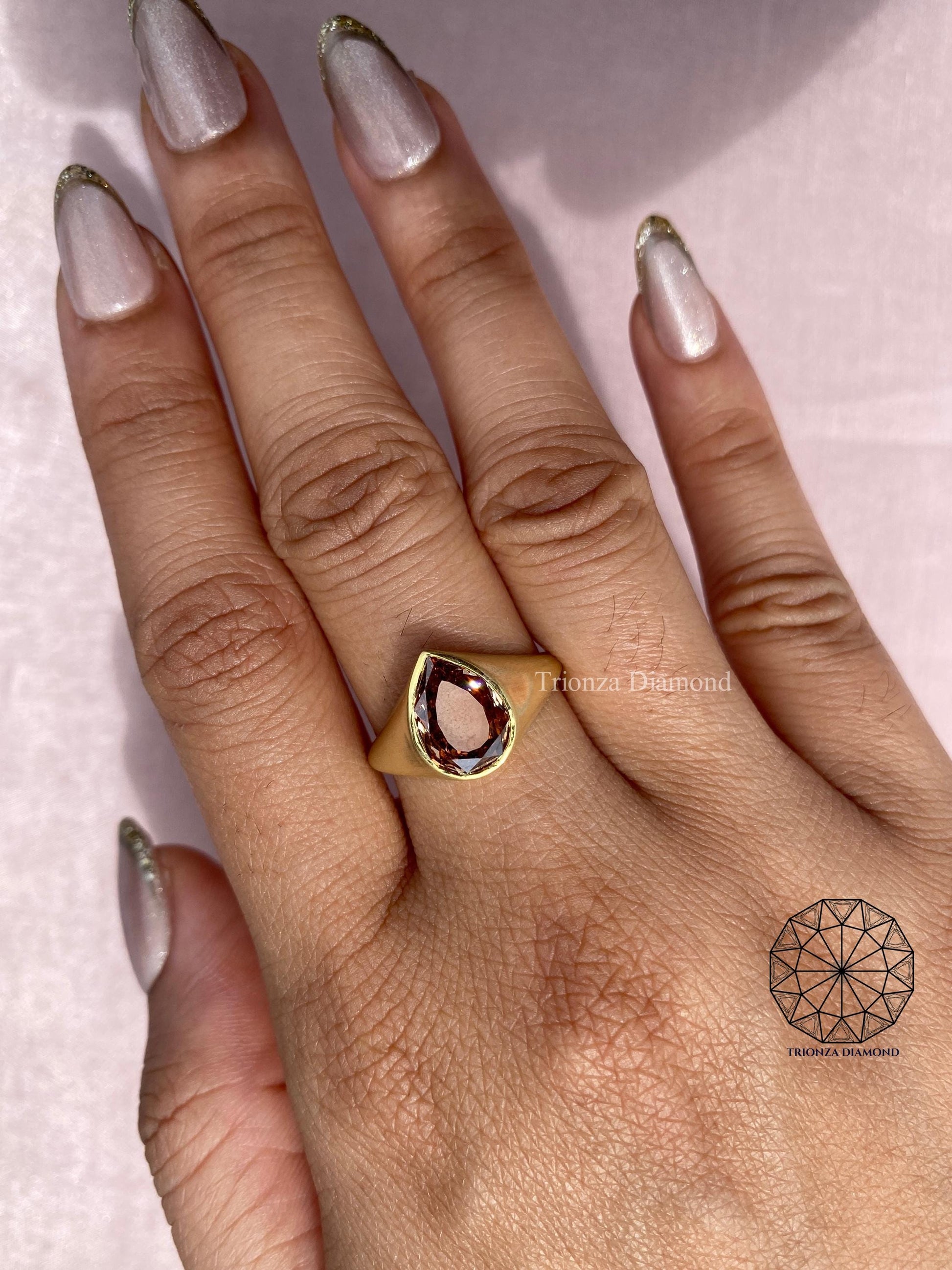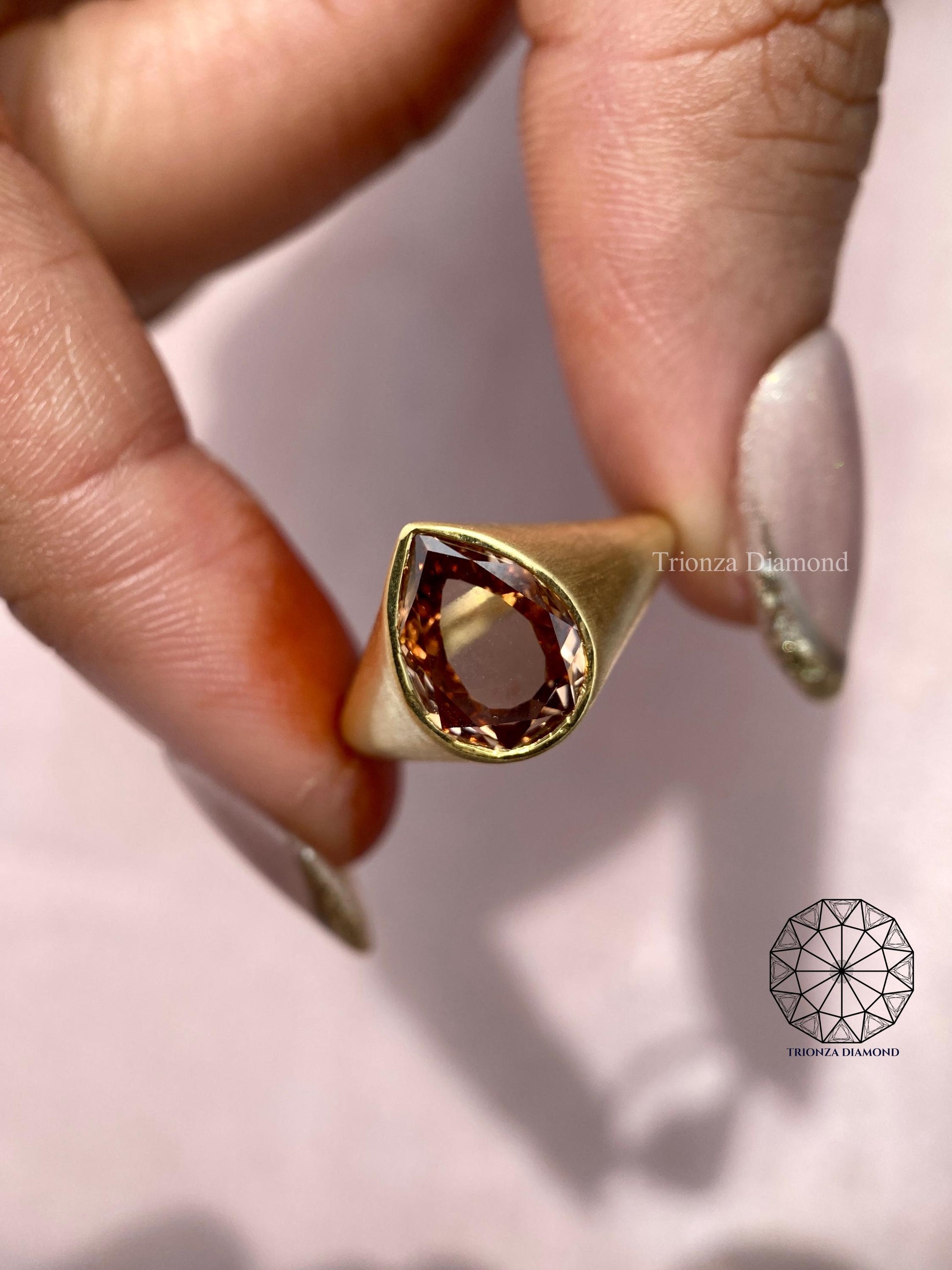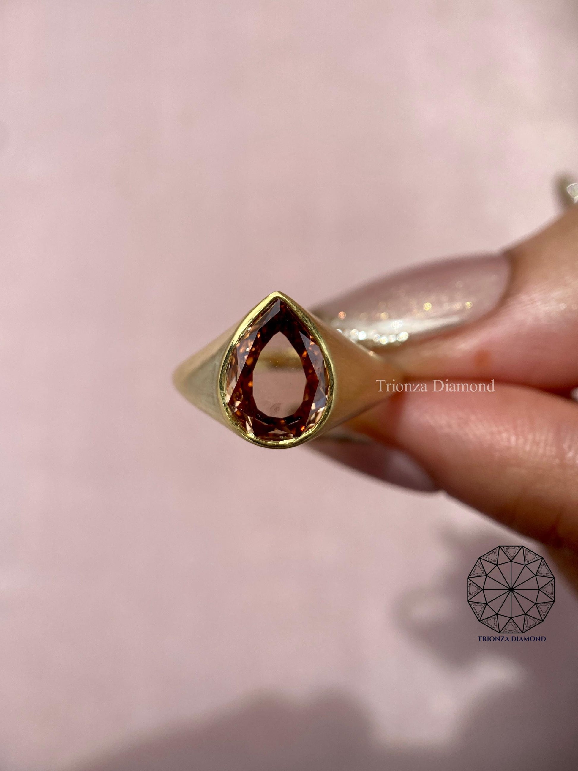 Discover this stunning 2.22 CT Pear Rose Cut Lab Grown Diamond Ring, IGI Certified. Featuring a matte 14K gold bezel setting, this modern, bold engagement ring is also perfect as an elegant bridal ring, gift ring, or wedding ring. It's a unique, conflict-free diamond piece, made with love by Trionza Diamond.