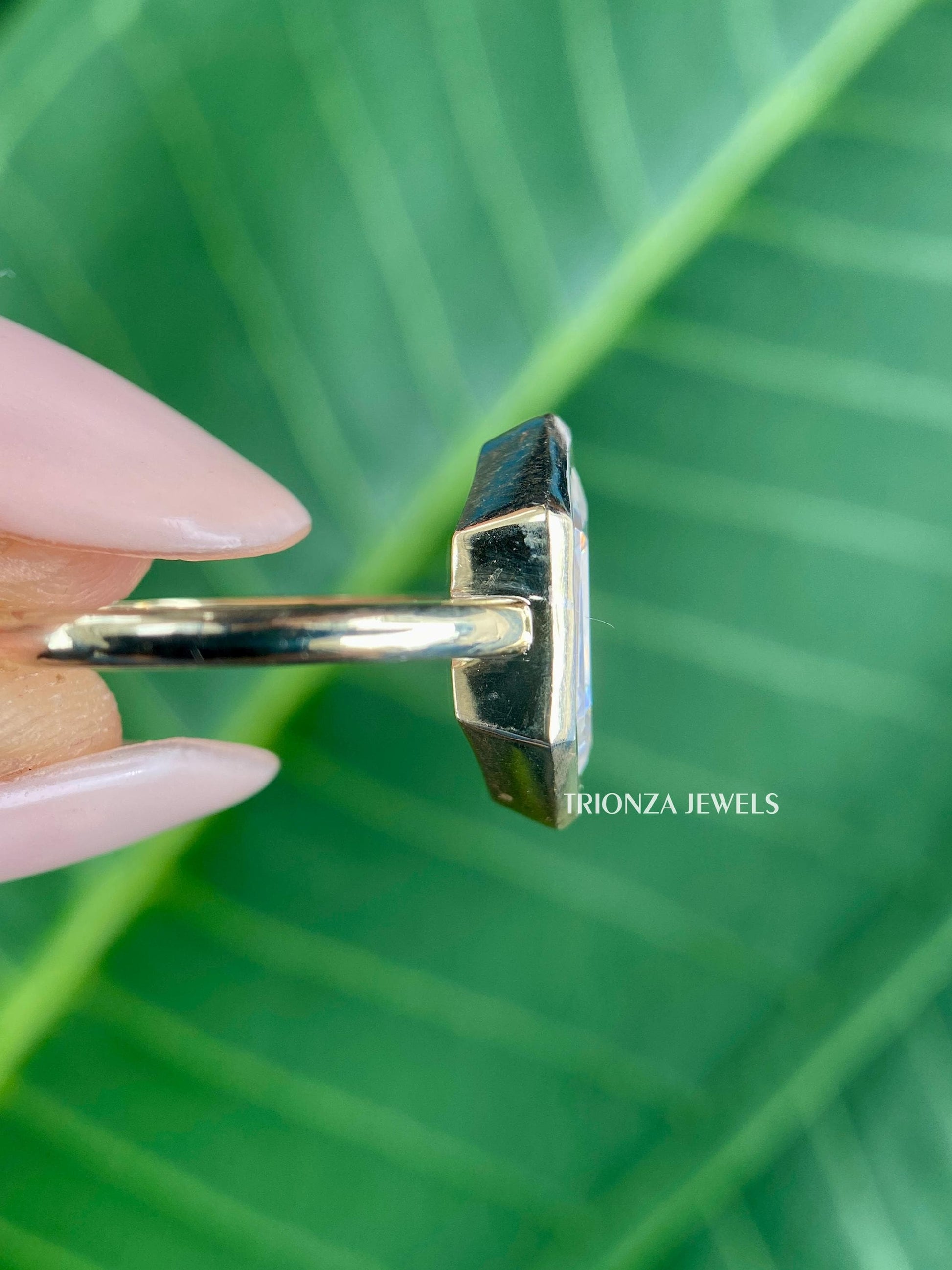 Presenting a stunning 2.40 CT Hexagon Cut Solitaire Moissanite Engagement Ring, beautifully bezel set in 14k Solid Yellow Gold (other metals available). This exquisite ring is a perfect choice for an engagement, wedding, or a special anniversary gift for her.