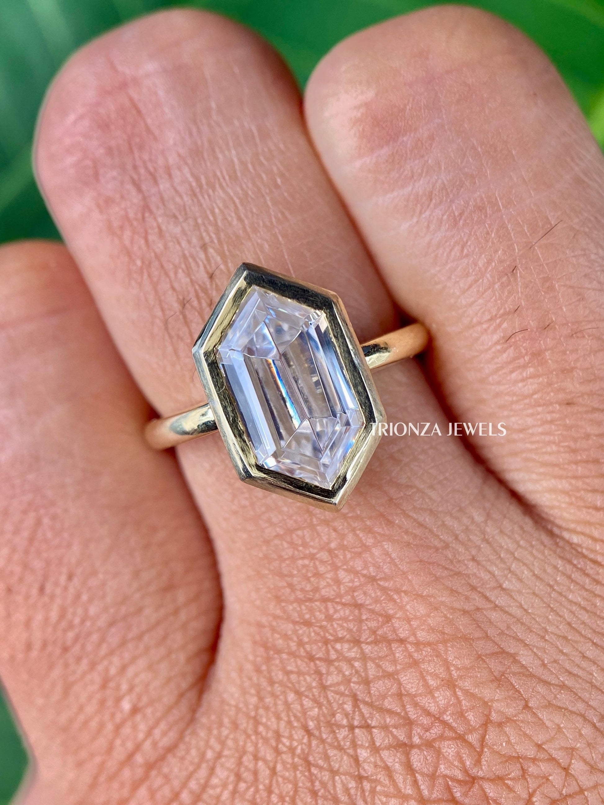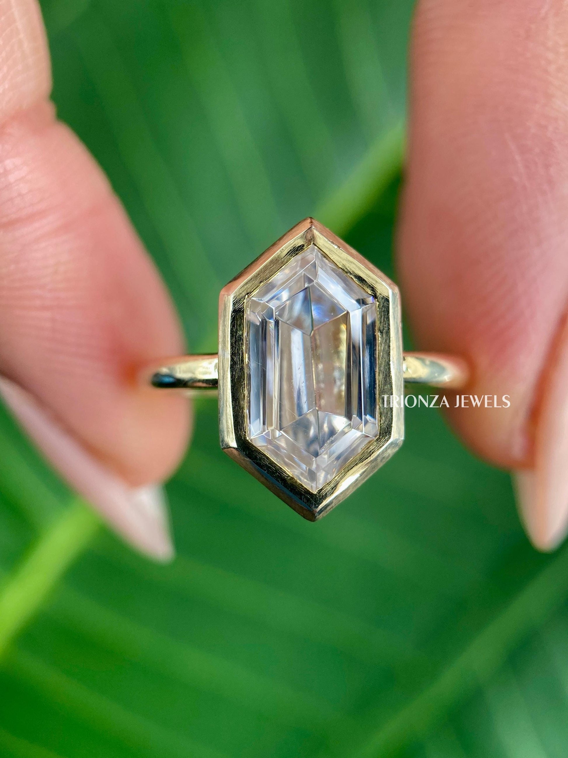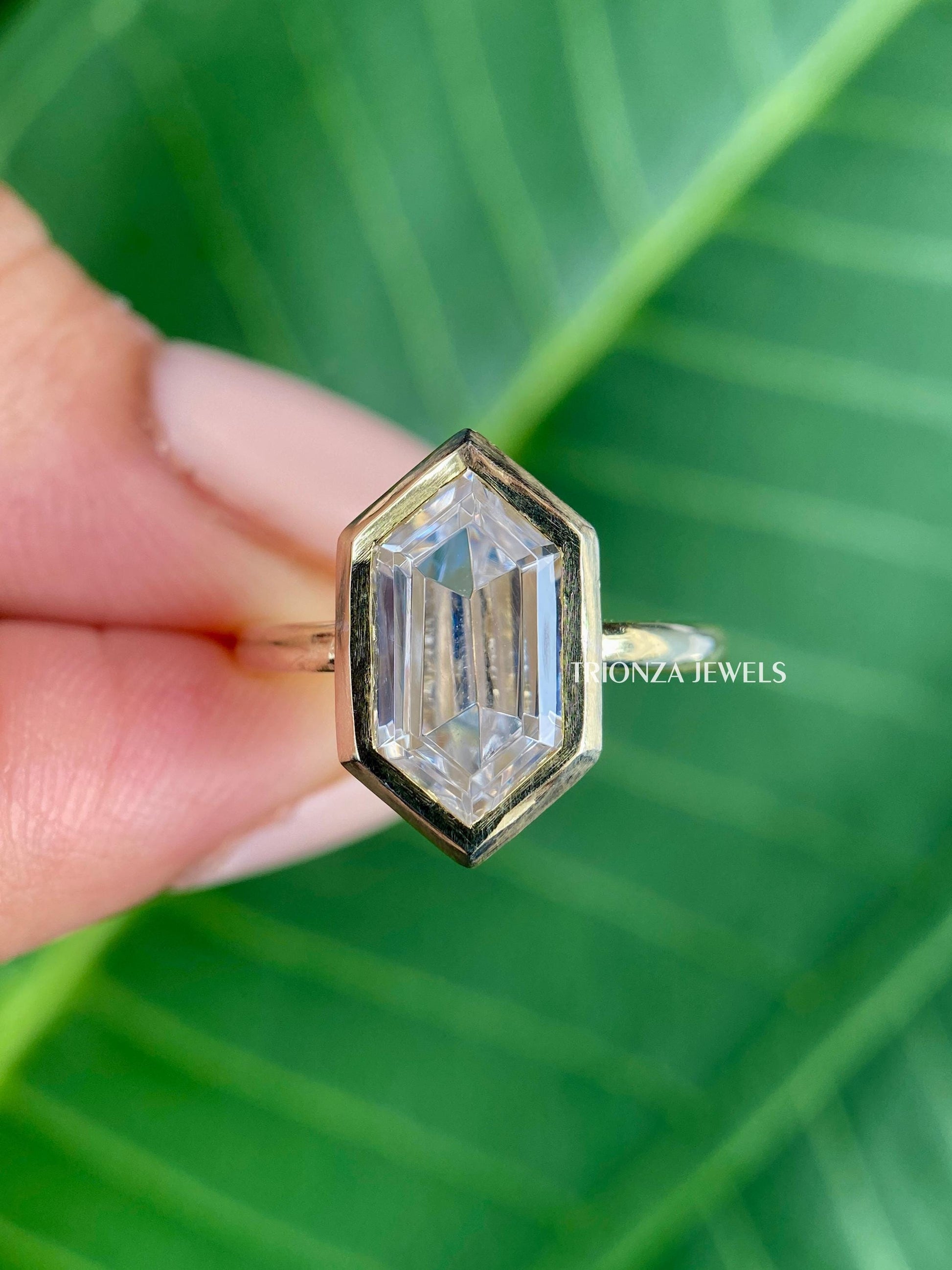 2.40 CT Hexagon Moissanite Solitaire Engagement Ring Bezel Set
