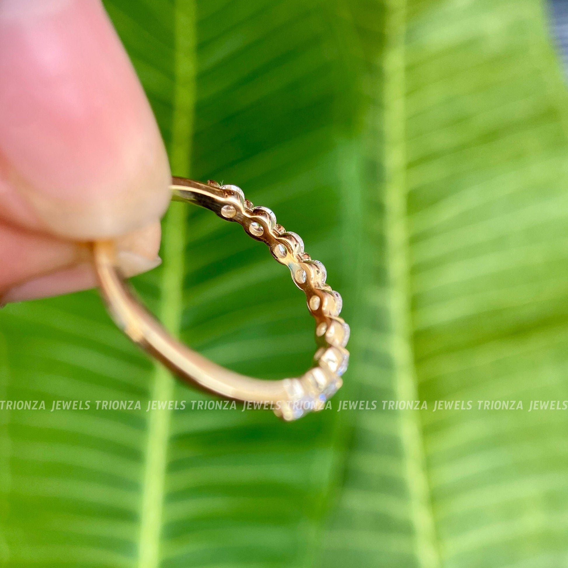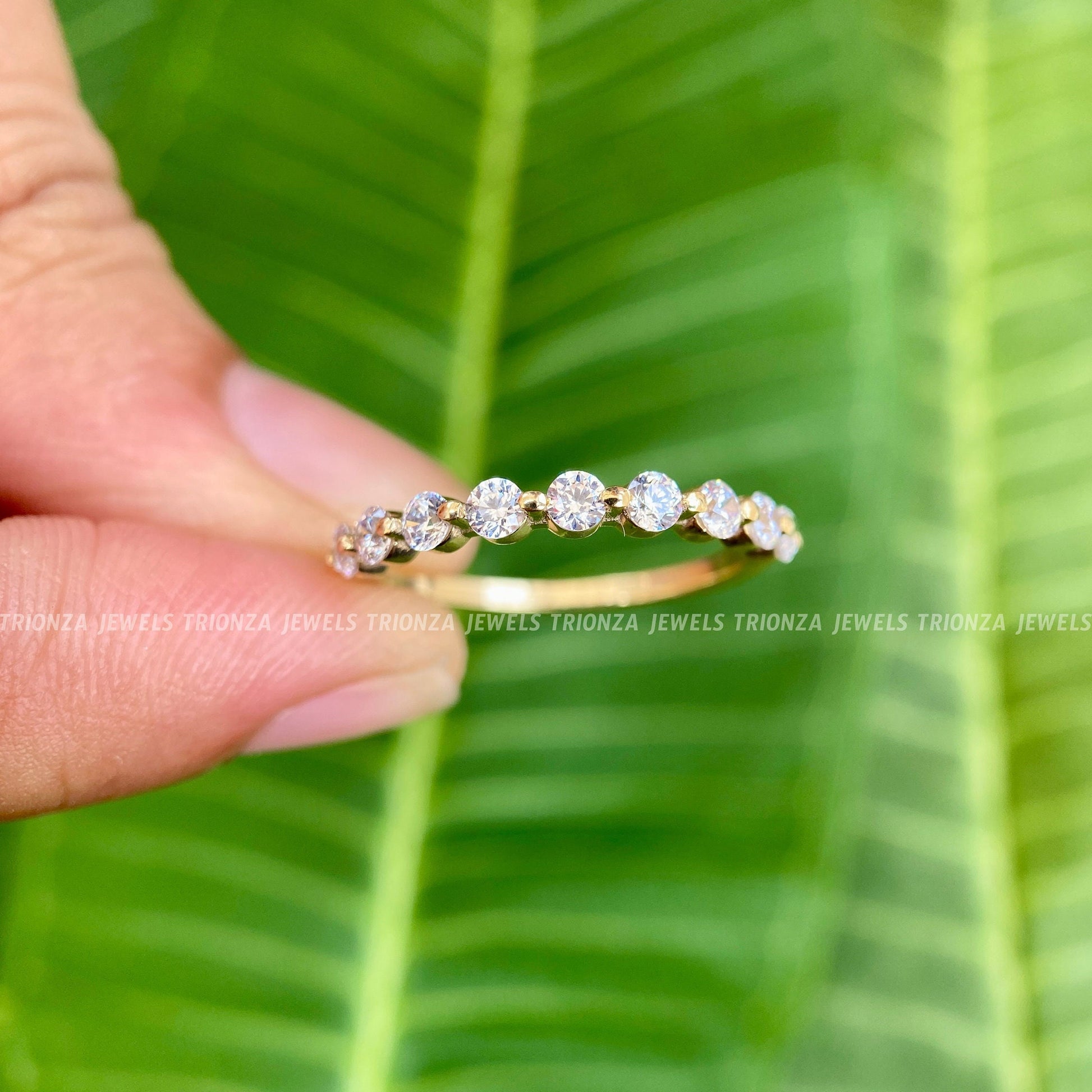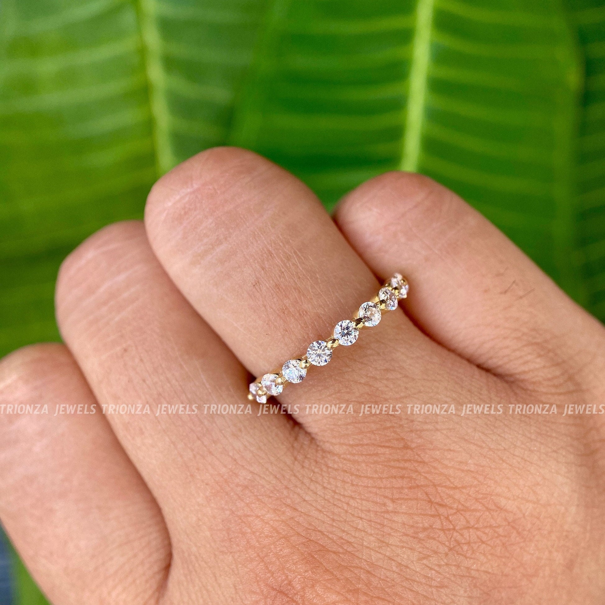 2.5 mm half Floating Diamond Wedding Band 14K Solid Real Gold with Simulated Diamonds For Women Half Eternity Band, Anniversary & Wedding