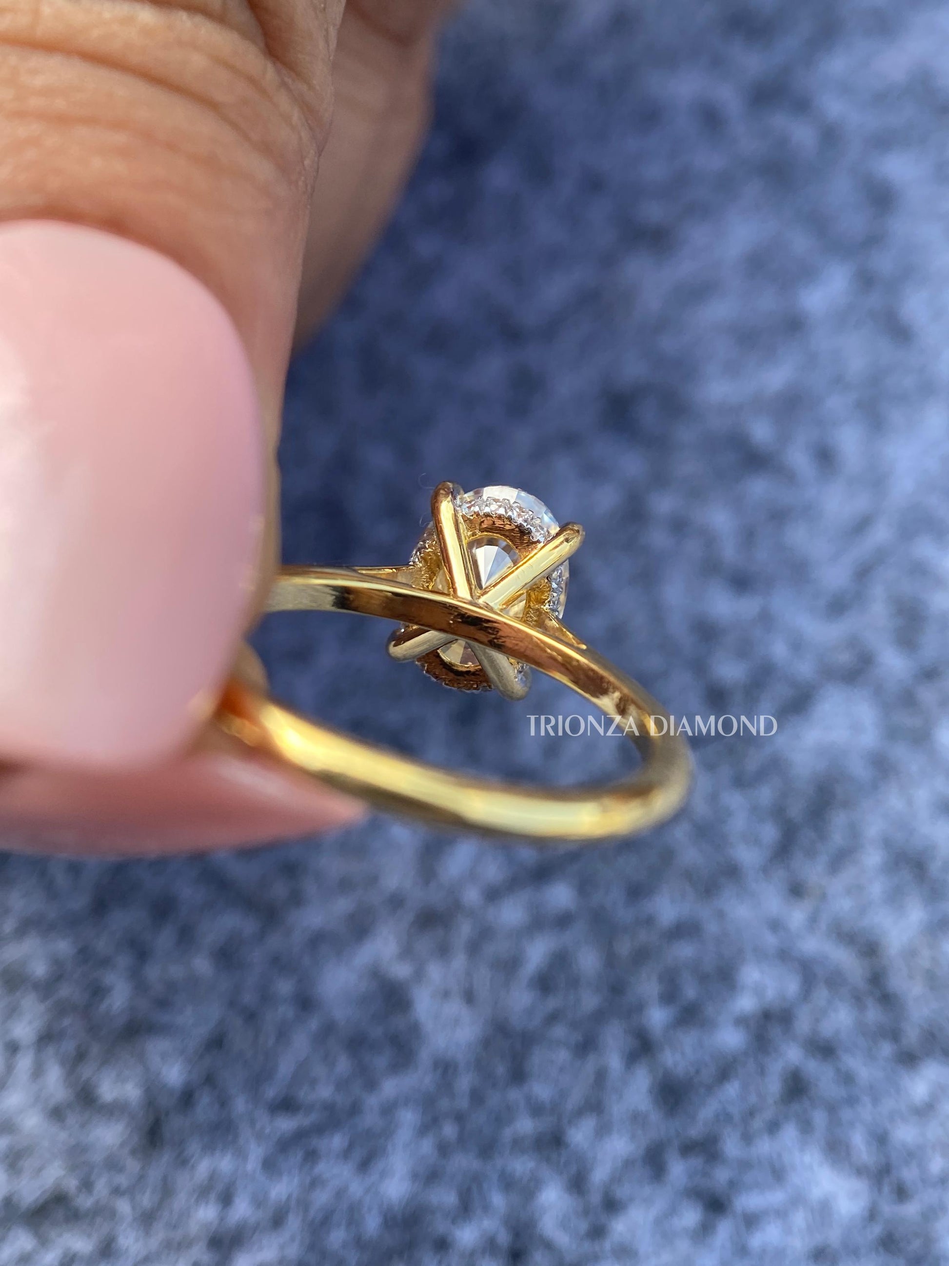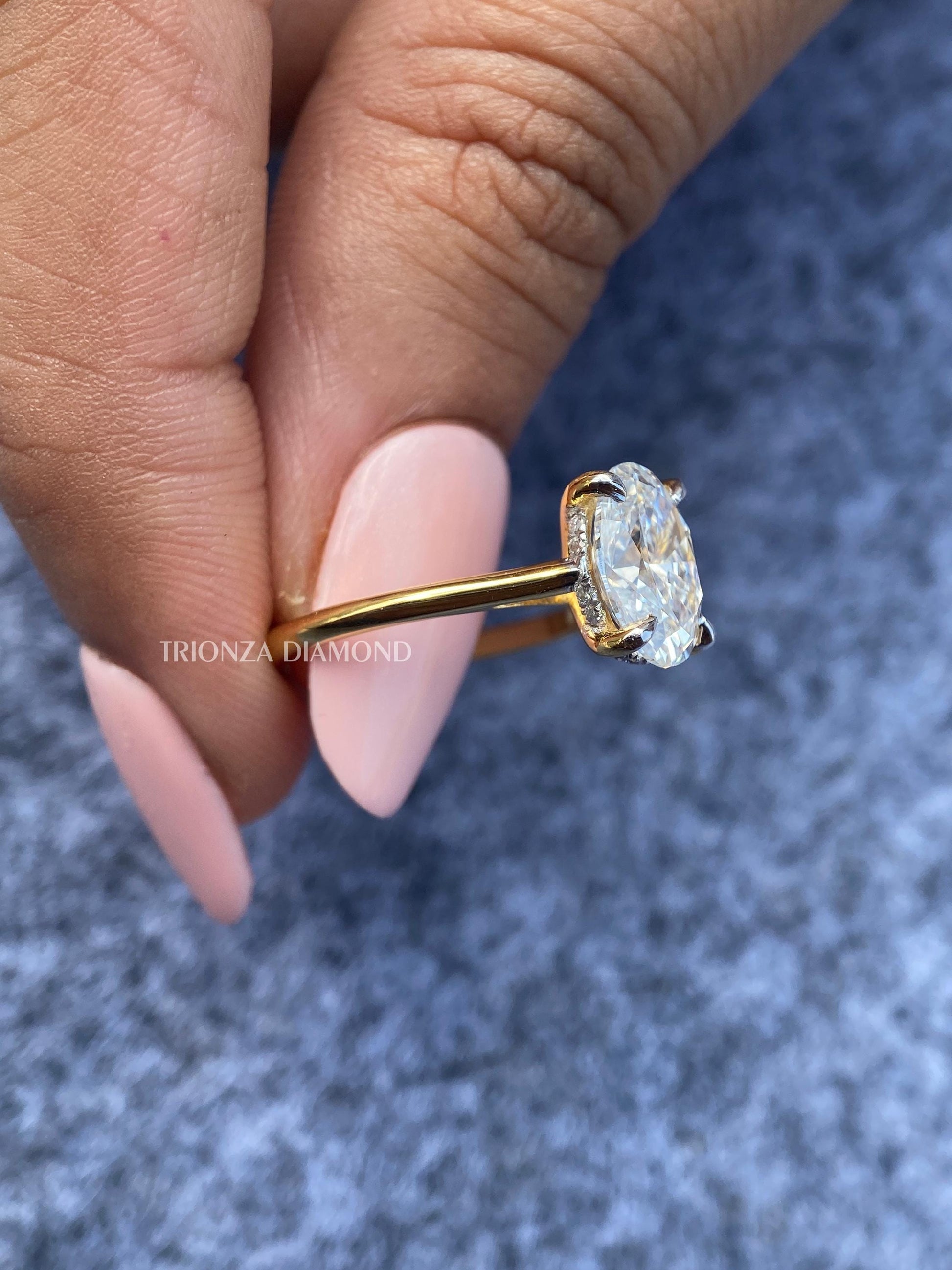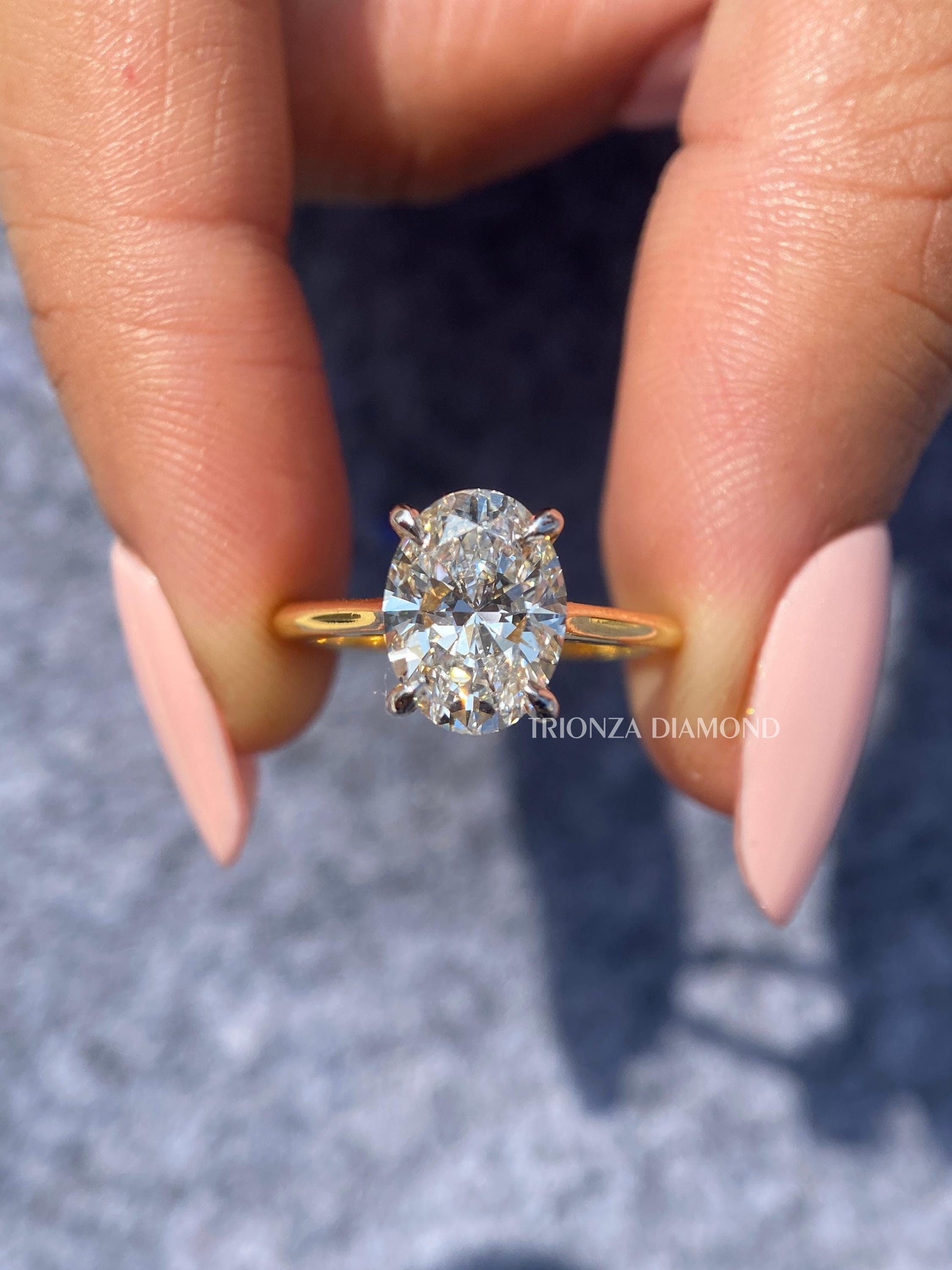 Discover this stunning 2.50 CT Oval Cut Lab Diamond Solitaire Engagement Ring, crafted in 14k Yellow Gold. Featuring a hidden halo design, this ring is perfect for anniversaries, proposals, or as a promise ring. It's an ethical, eco-friendly, and unique handmade piece.