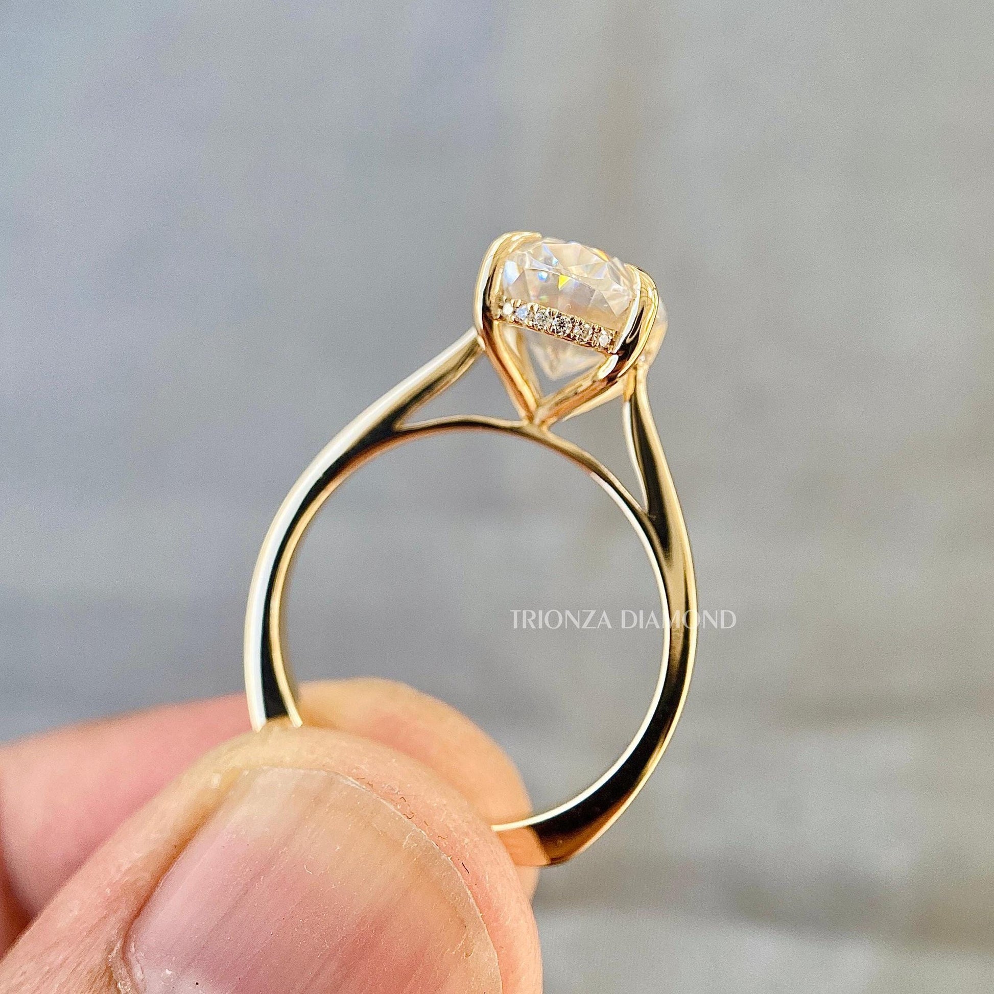 2.50 CT Oval Lab Diamond Engagement Ring - Hidden Halo, 14K Gold