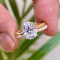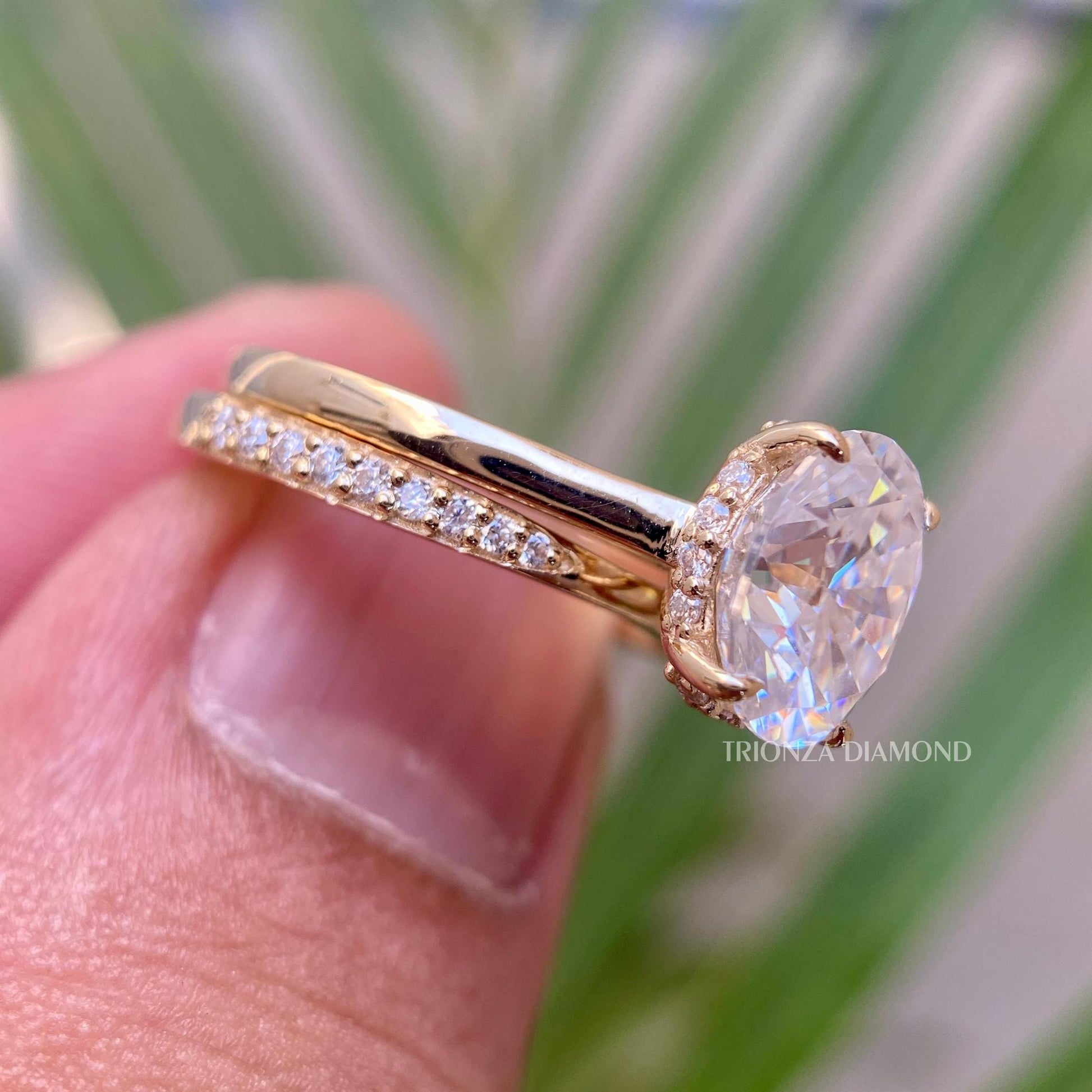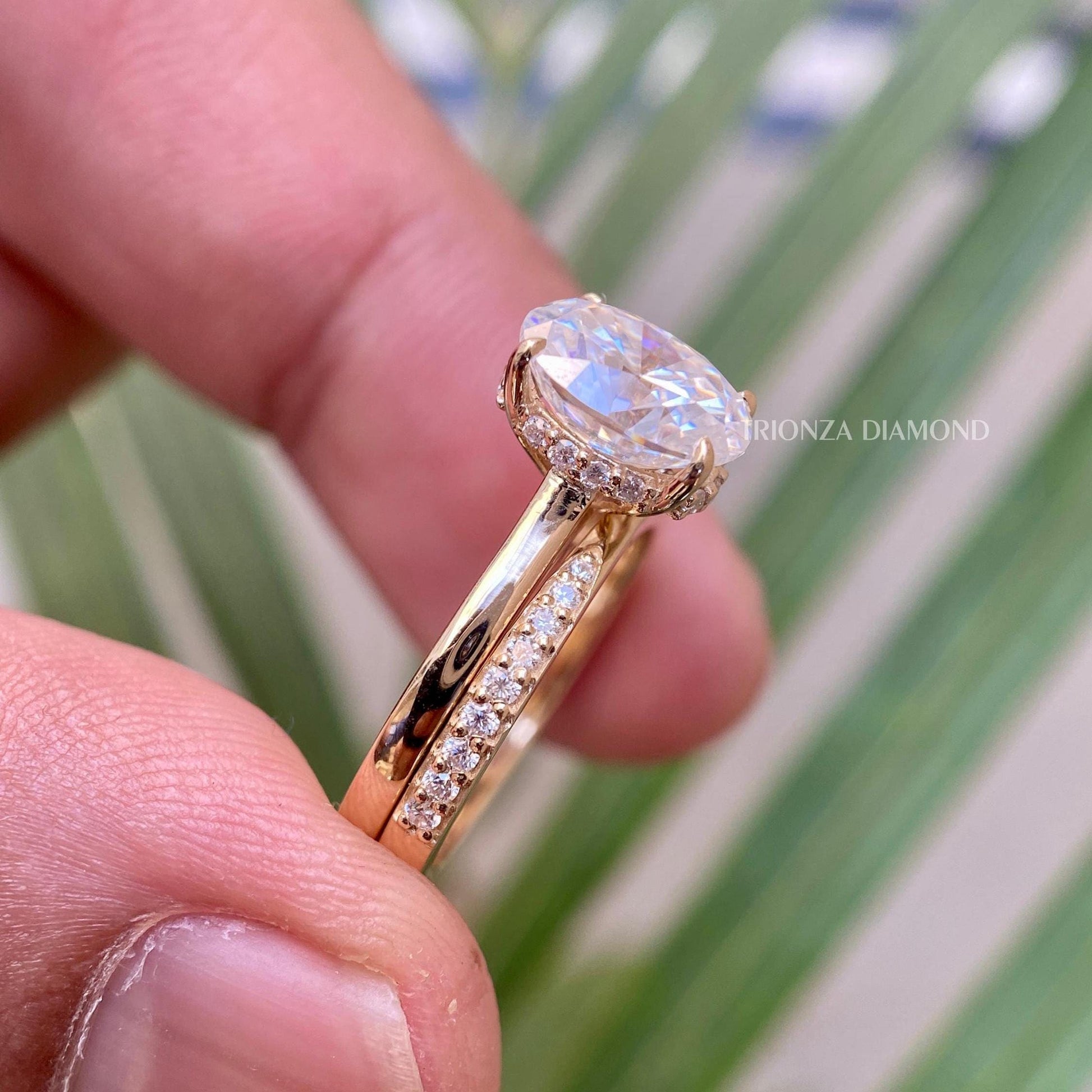 2.50 CT Oval Moissanite Engagement Ring Set 14k Gold Hidden Halo