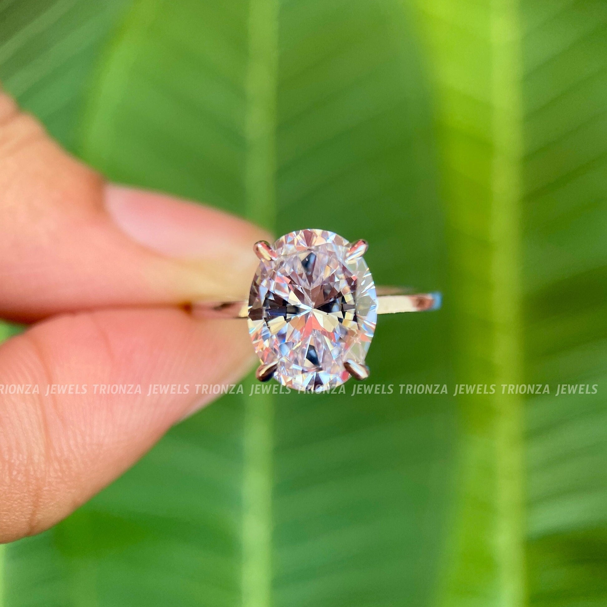 Celebrate your love story with this exquisite 2.50 CT Oval Cut Solitaire Moissanite Ring, a perfect choice for an engagement, wedding, or anniversary gift. This stunning ring from TRIONZA JEWELS combines elegance with ethical sourcing, featuring a brilliant Moissanite diamond known for its eco-friendly and sustainable qualities.