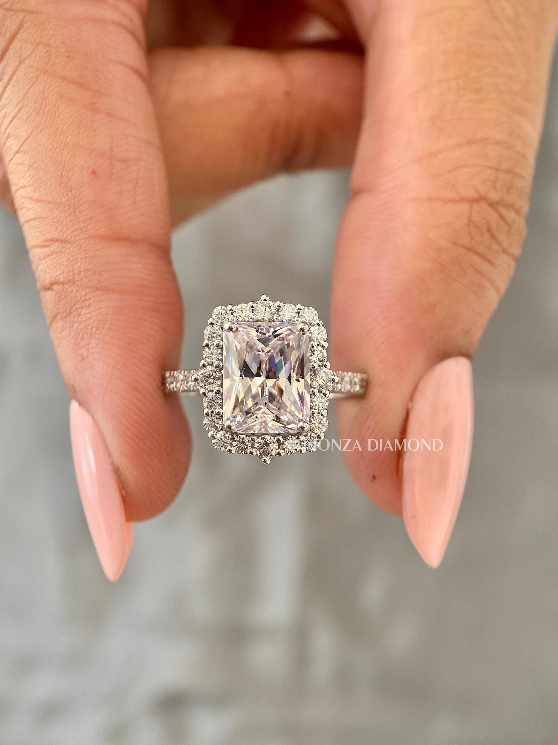 2.50CT Radiant Lab Diamond Engagement Ring E/VS1 Certified Halo