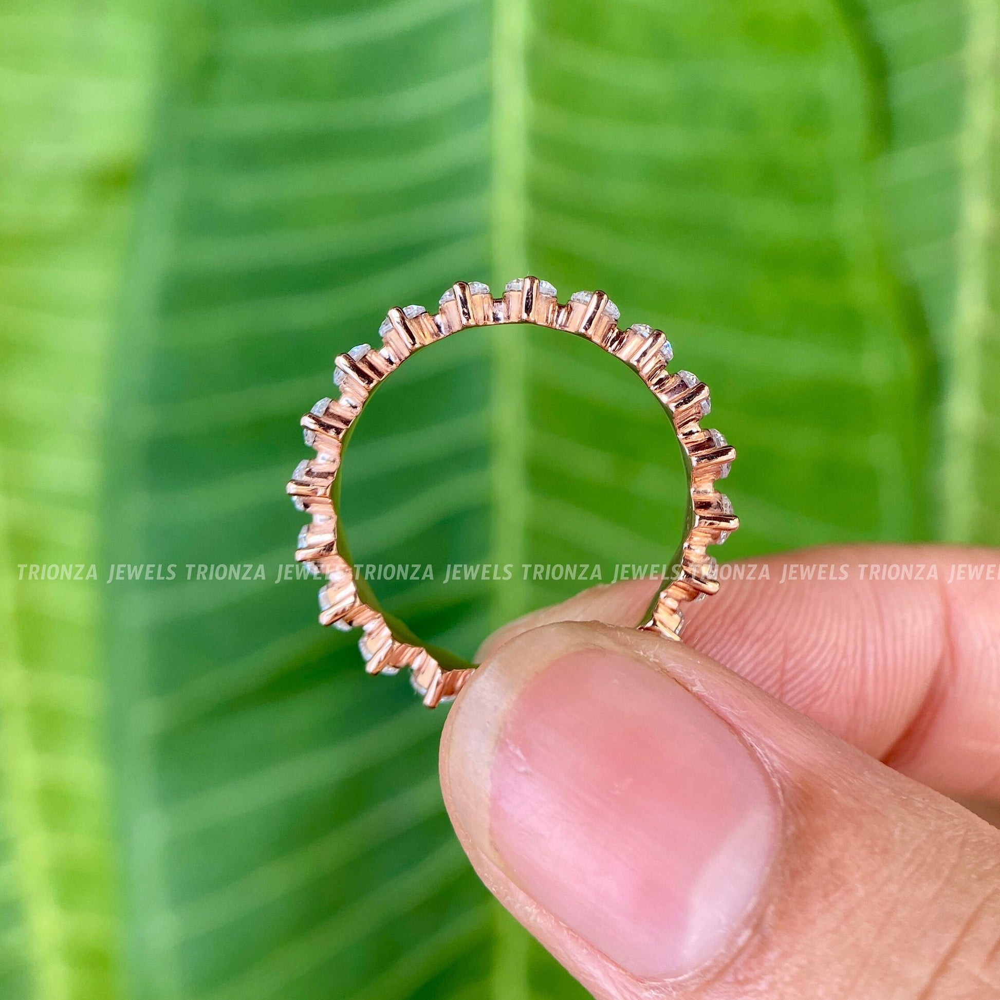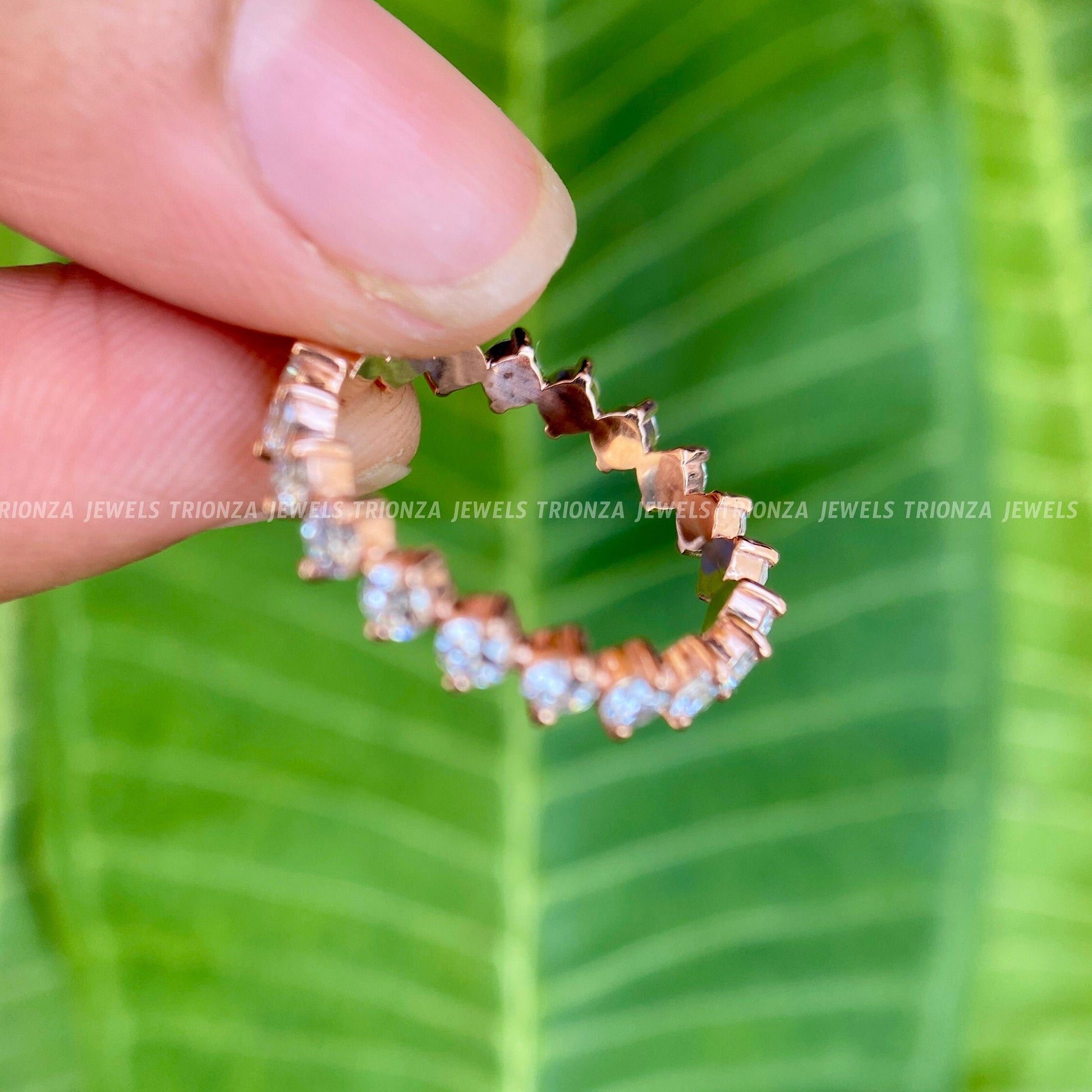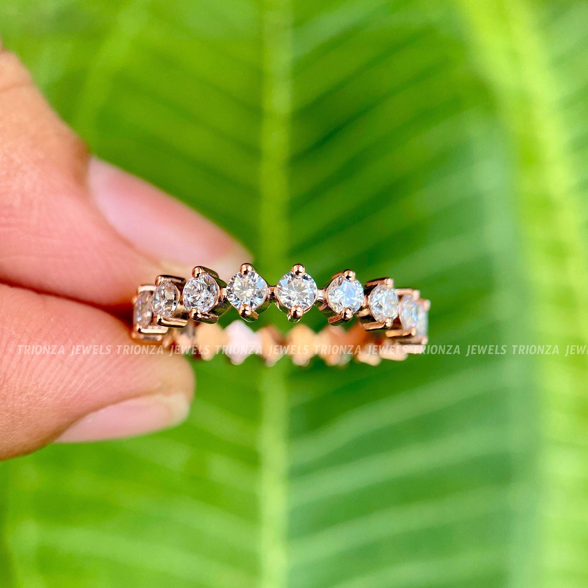 This exquisite full eternity band features 2.50 MM round moissanite stones in a unique compass setting, creating a minimalist yet captivating design. Perfect as a wedding band, anniversary gift, or a stylish stackable ring, this pure handmade piece offers brilliance and elegance.