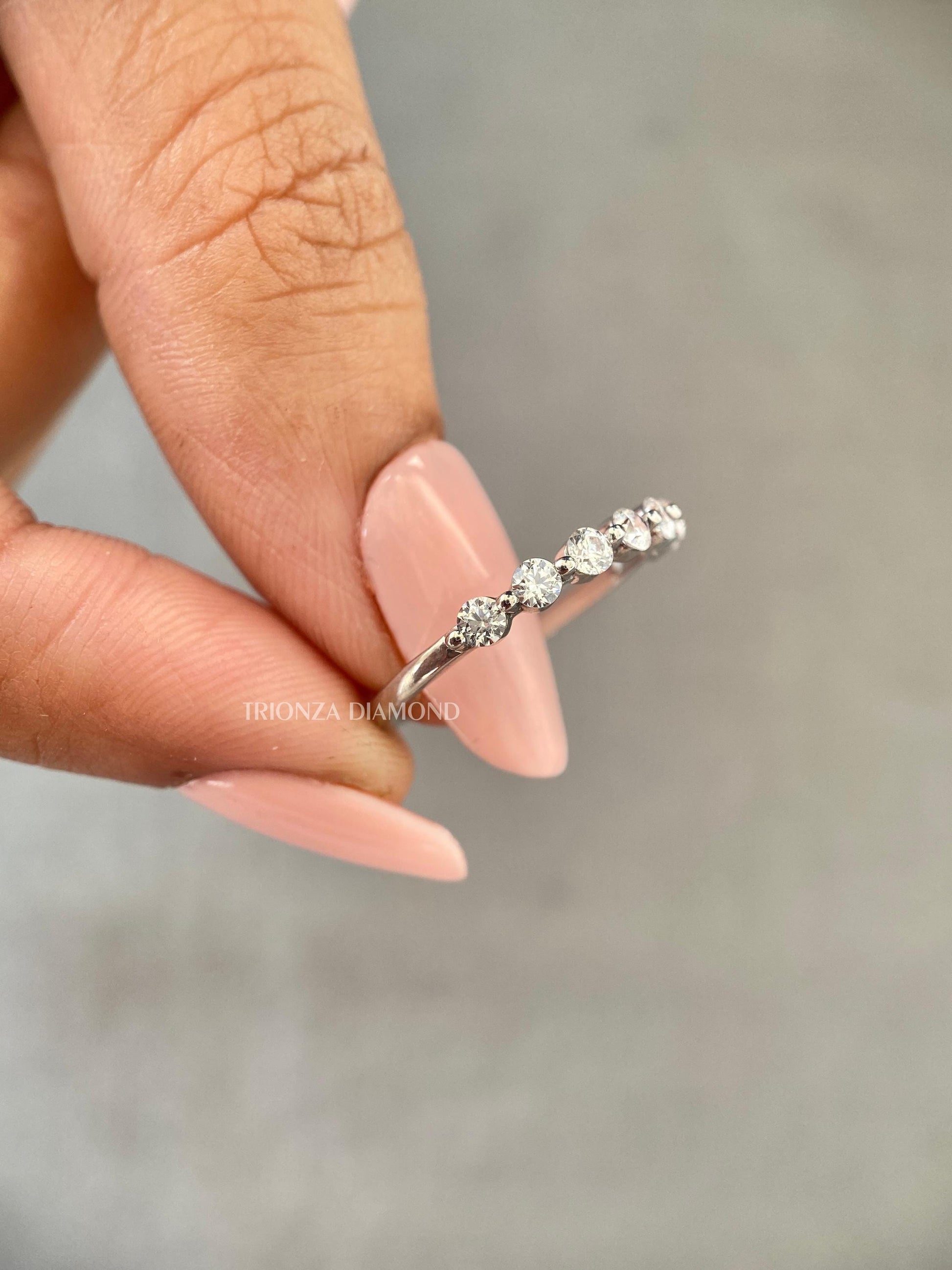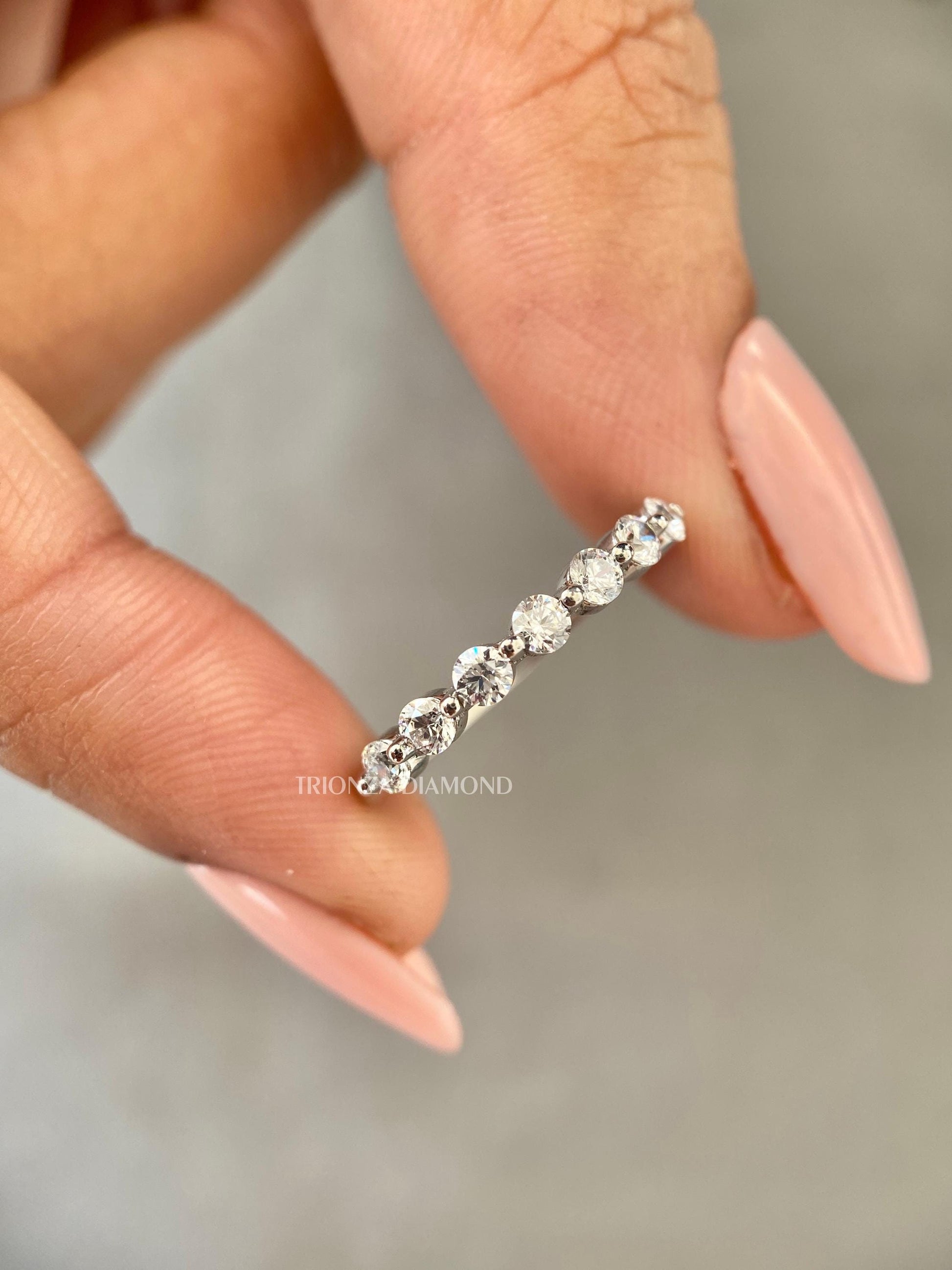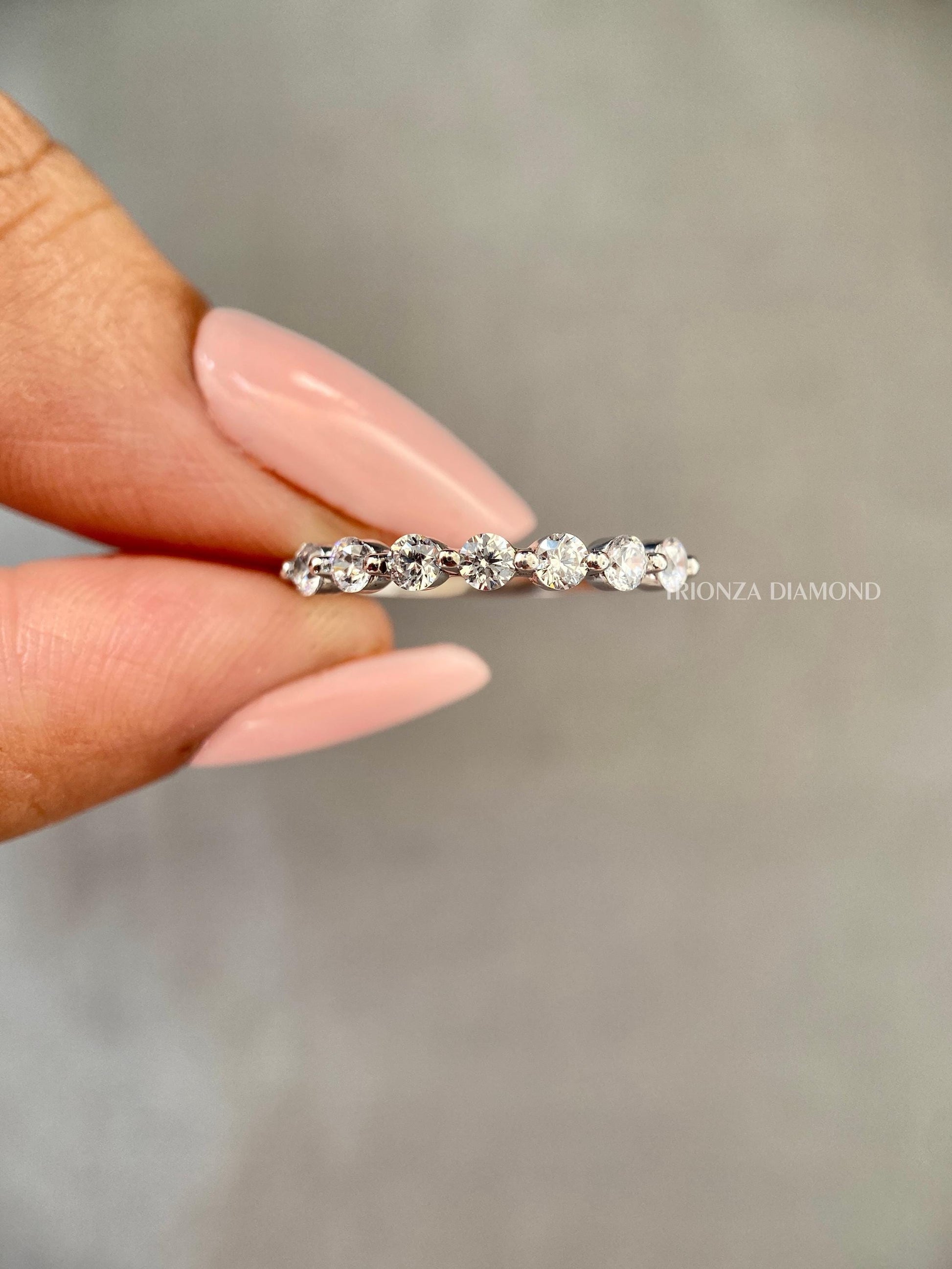 Celebrate your love with our stunning 2.5MM 7-Stone Eternity Round Lab Grown Diamond Band. Crafted in luxurious 950 Platinum, this stackable band is perfect as a wedding ring, anniversary gift, or a special proposal ring for her. Featuring DE/VVS-VS lab-created diamonds, it's an eco-friendly and conflict-free choice.
