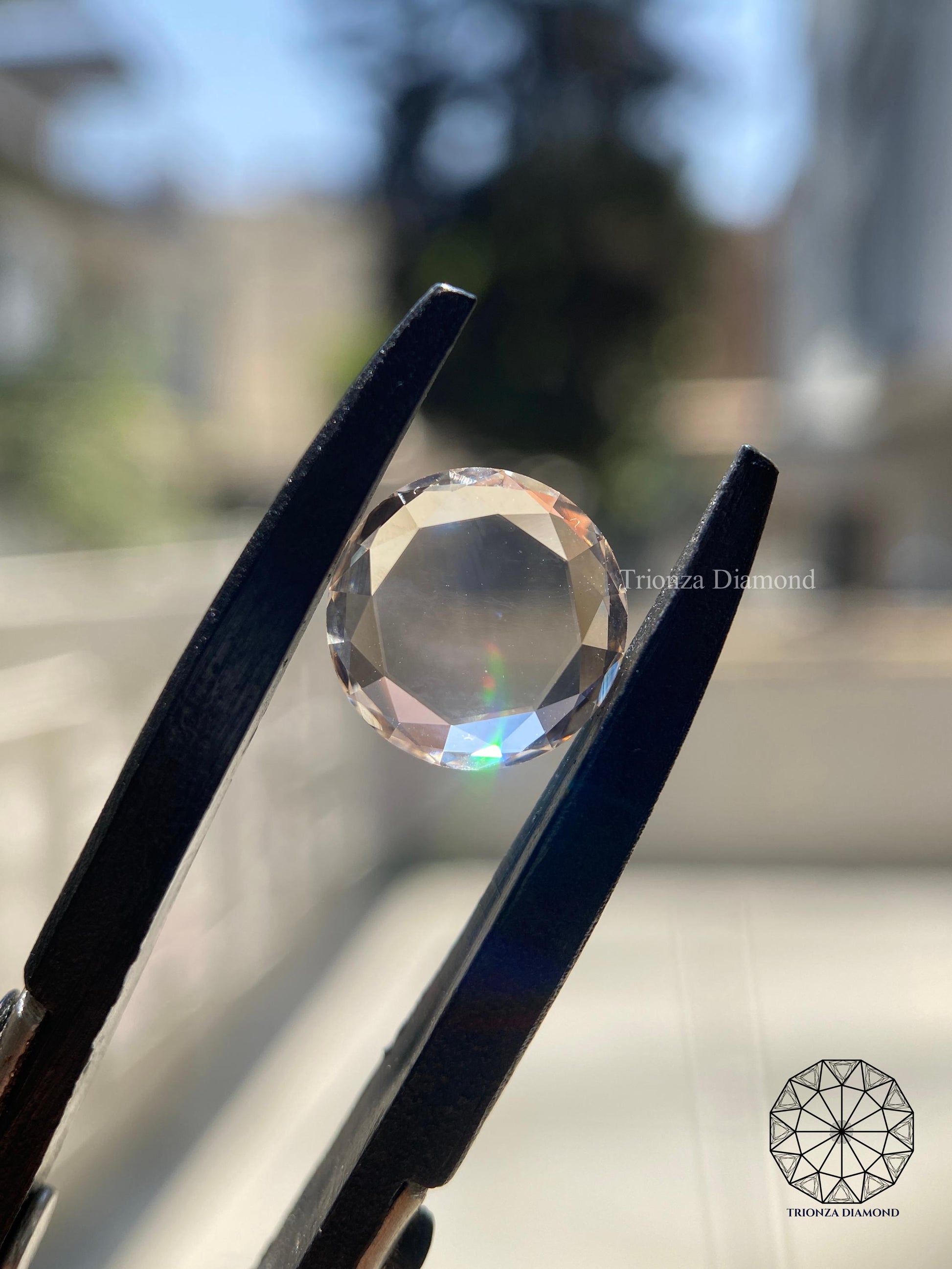 This stunning 2.93 CT Round Rose Cut Champagne Lab Grown Diamond is perfect as a loose diamond for your custom ring or necklace. IGI certified and ethically sourced, its vintage style and warm champagne color beautifully complement rose, yellow, or white gold. Ideal for vintage, bohemian, and contemporary fine jewelry designs.