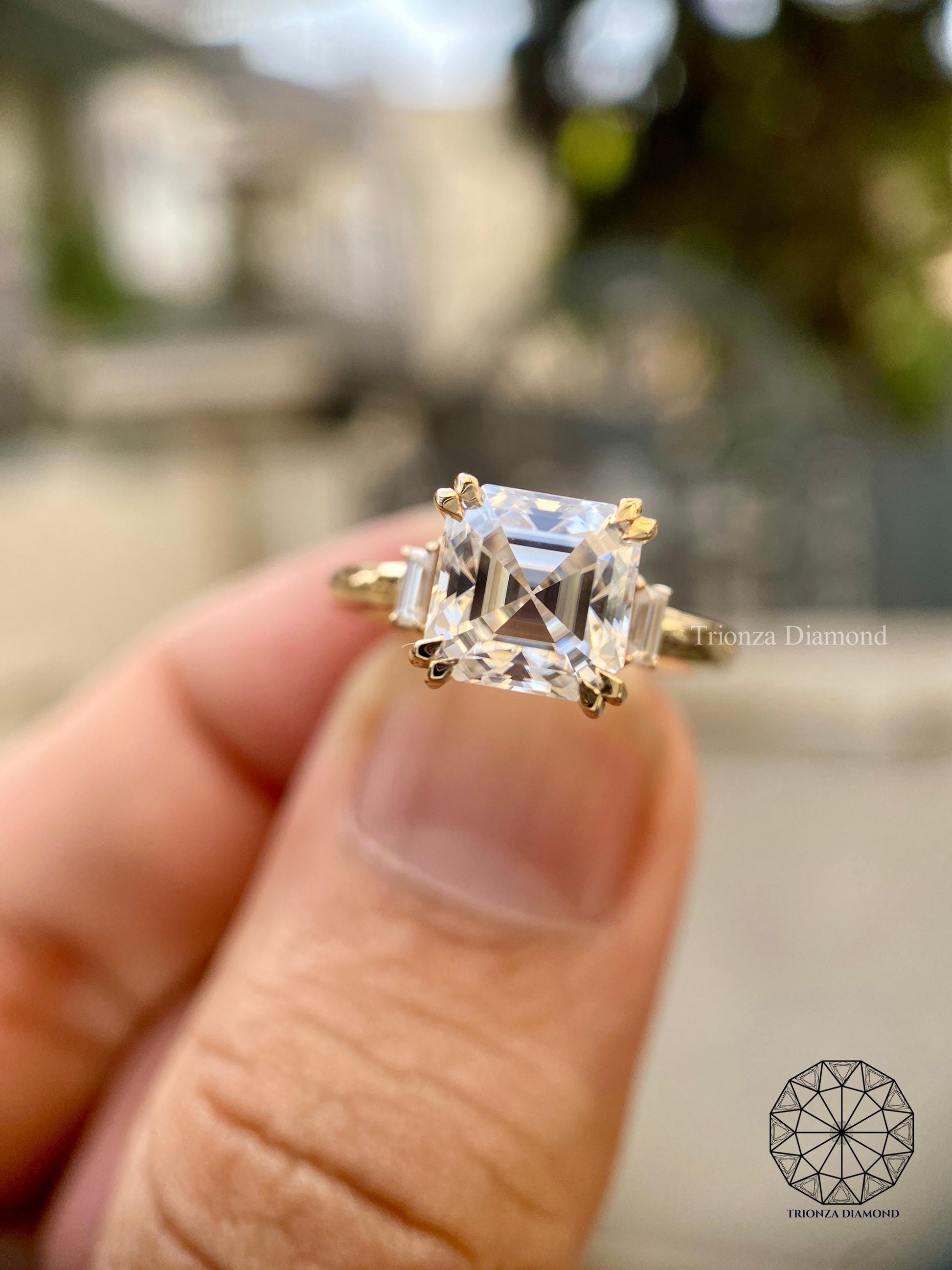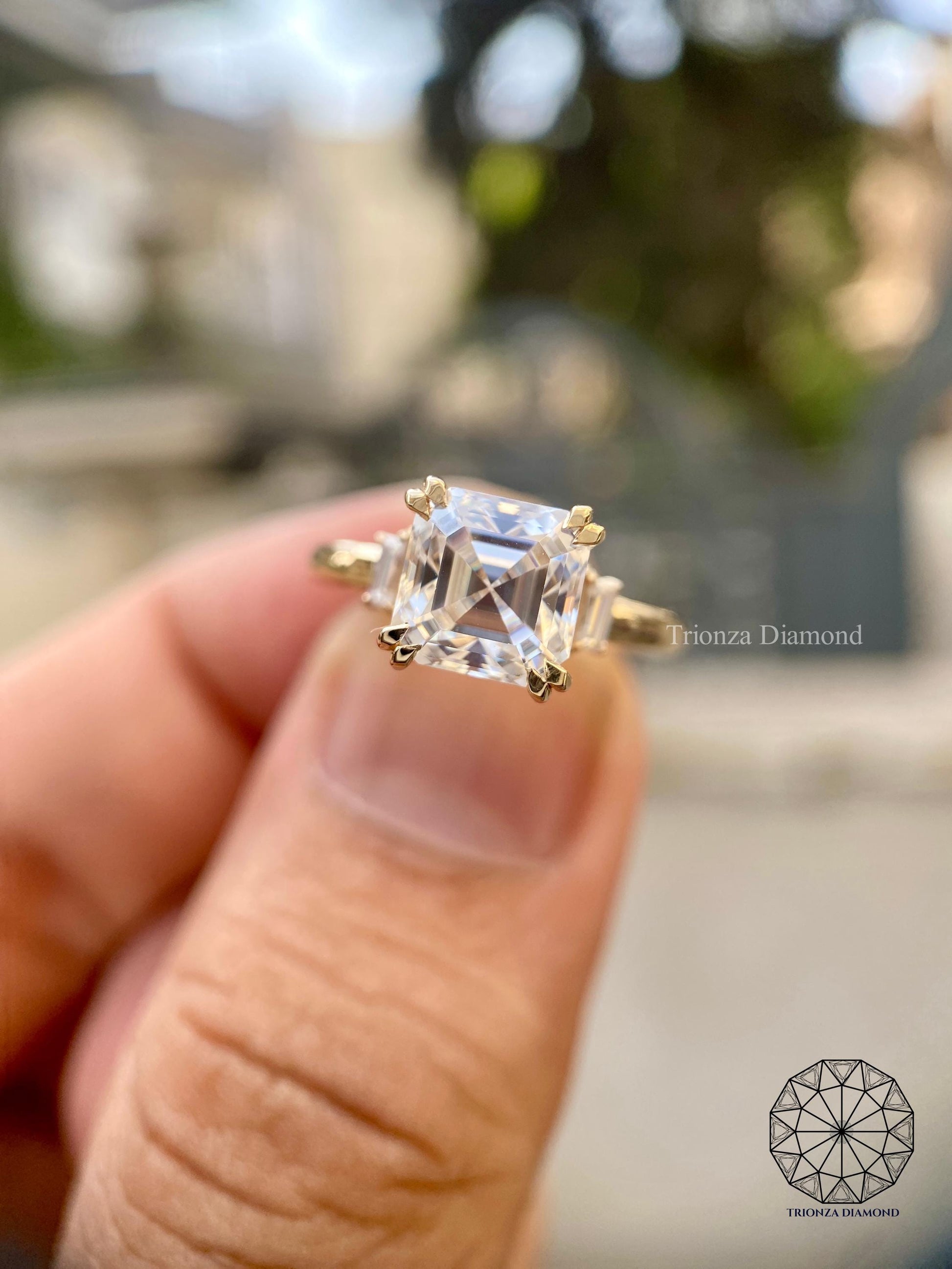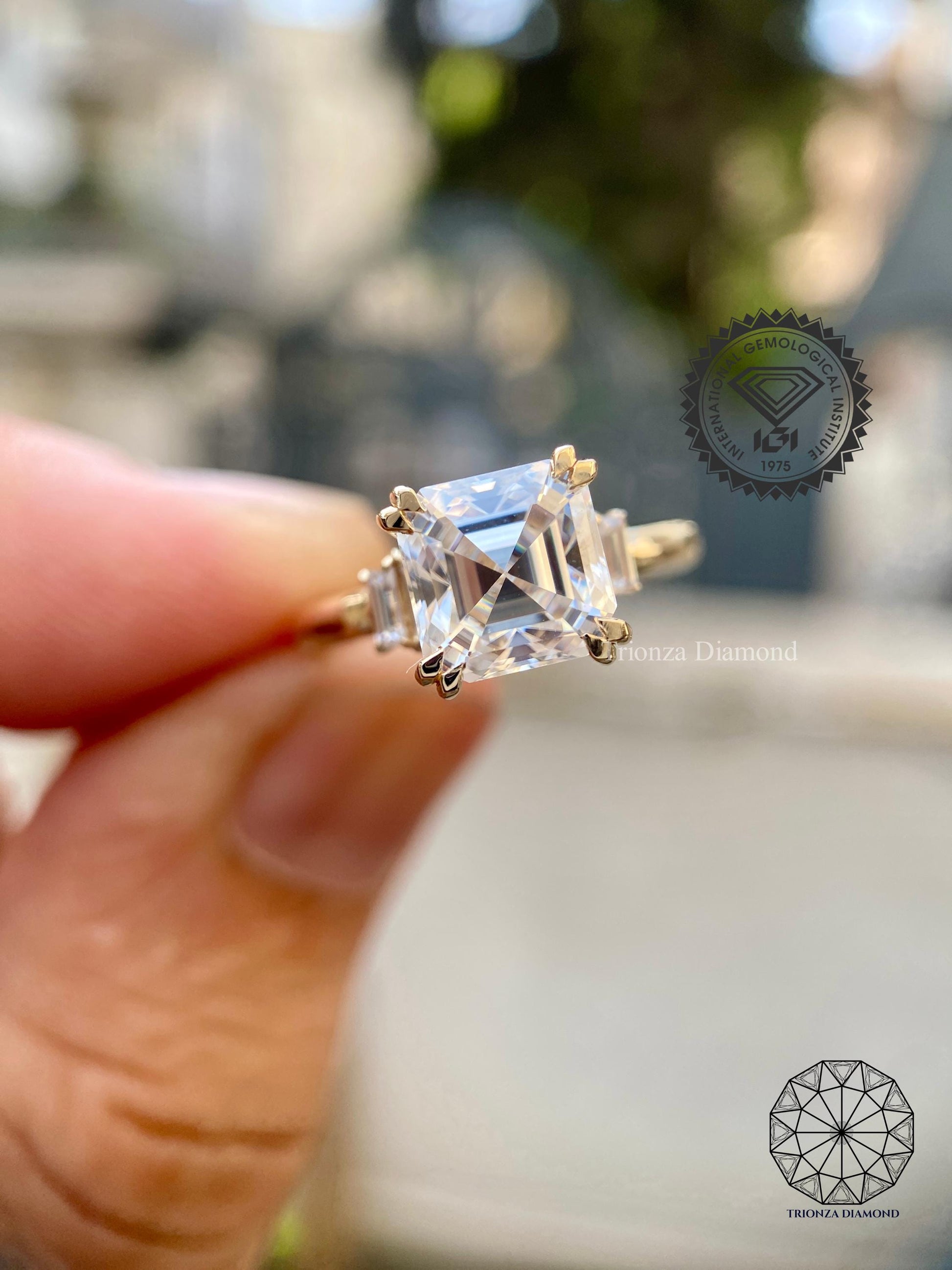 2 CT Asscher Lab Diamond Engagement Ring D/VVS2 IGI 14K Gold