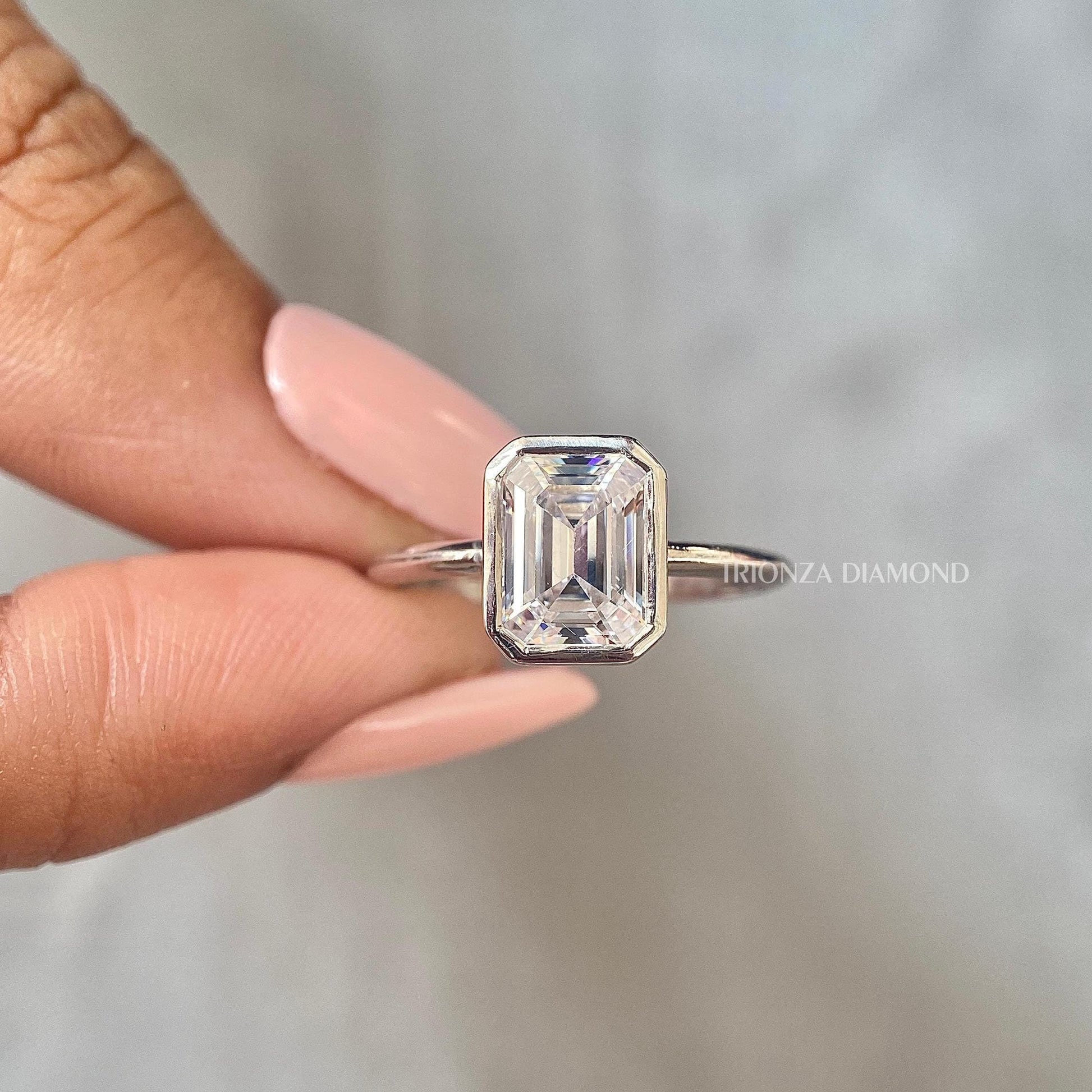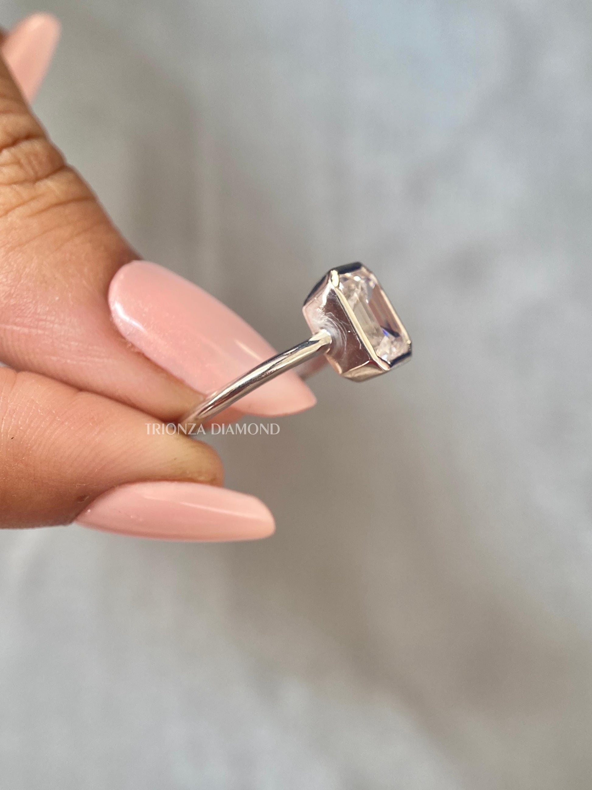 2 CT Emerald Cut Lab Diamond Ring | IGI D/VVS2 Bezel Solitaire