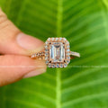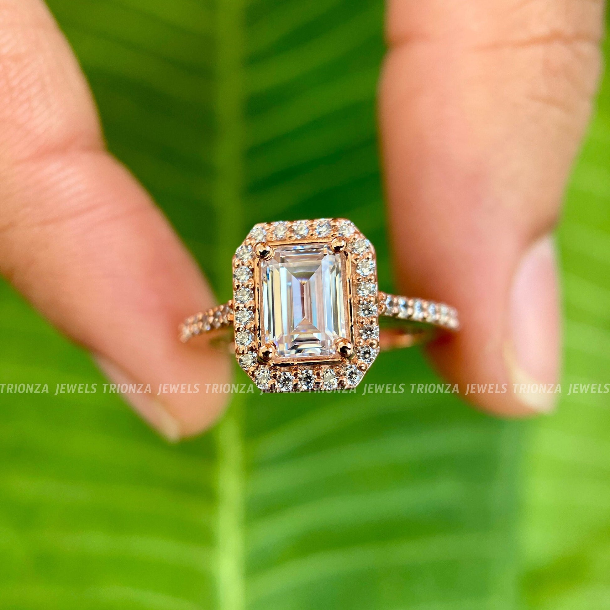 2 Ct Emerald Cut Moissanite Engagement Ring 14k Rose Gold Halo