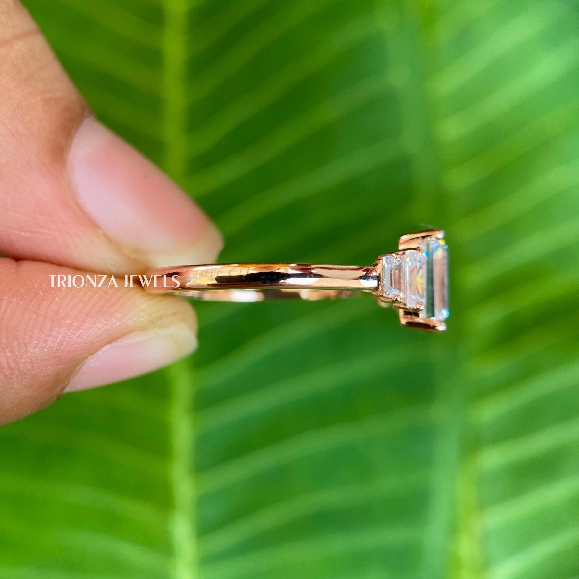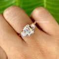 This exquisite 2 CT Emerald Cut Moissanite Wedding Ring features a vintage five-stone design, perfect as a promise ring, anniversary gift, or a unique radiant gift for her. It showcases a stunning emerald cut center stone complemented by side round and baguette cut moissanite diamonds, making it a truly handmade women's ring.