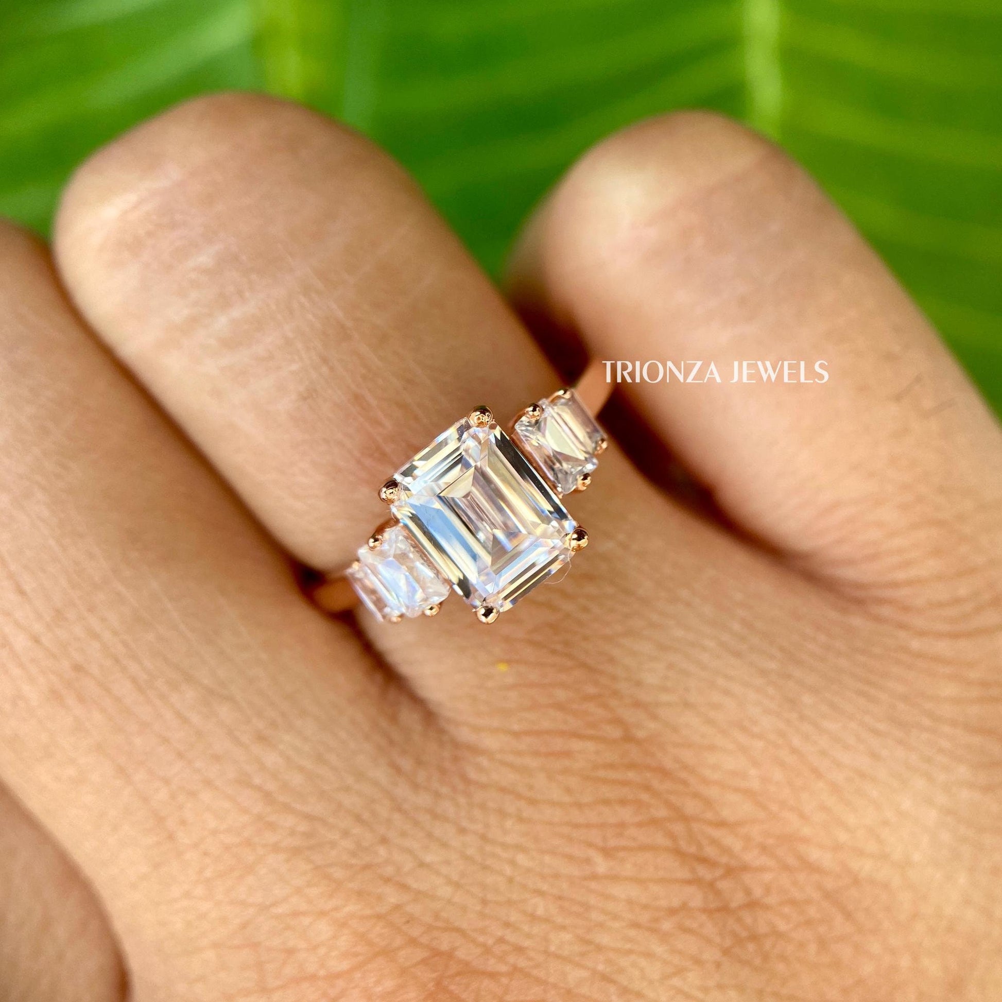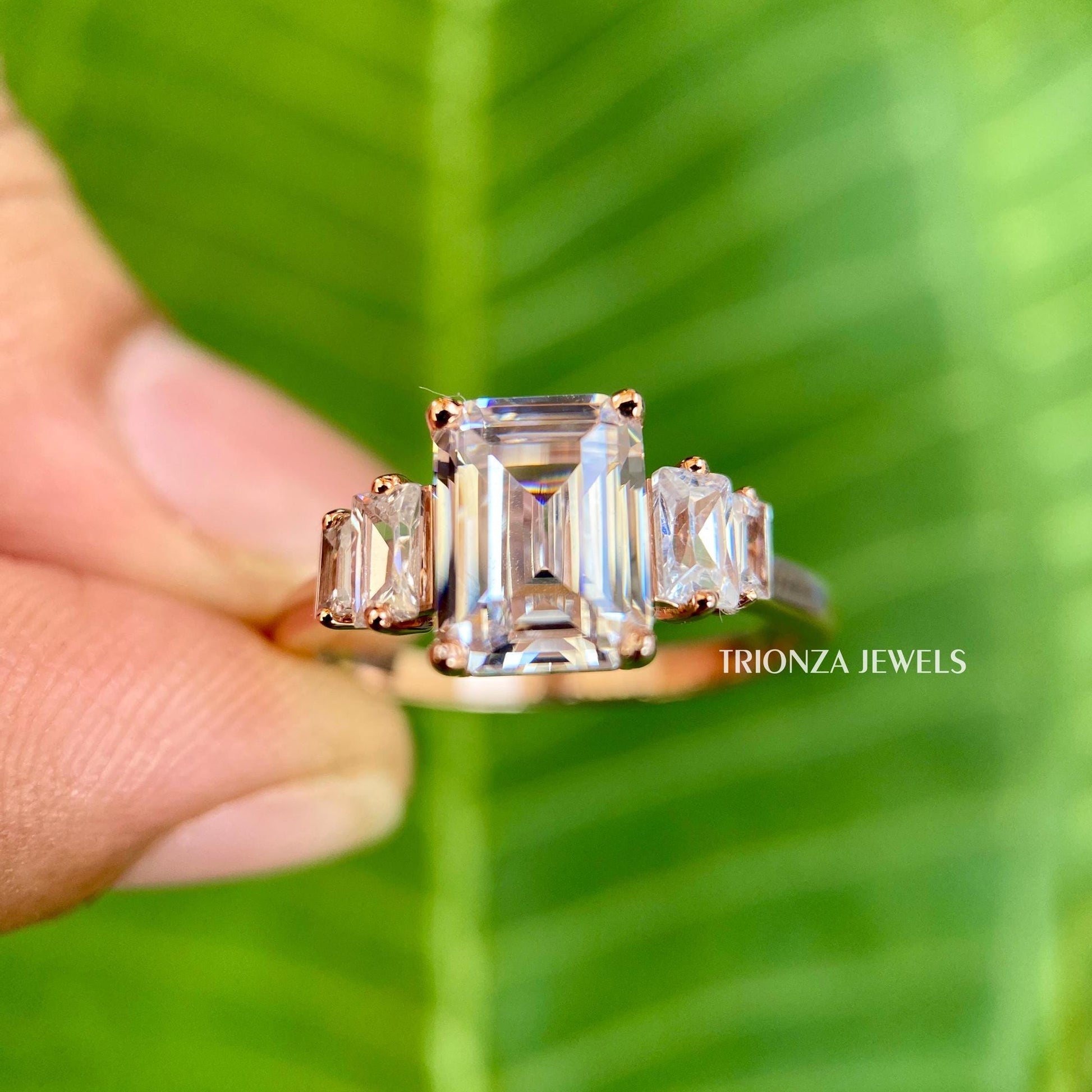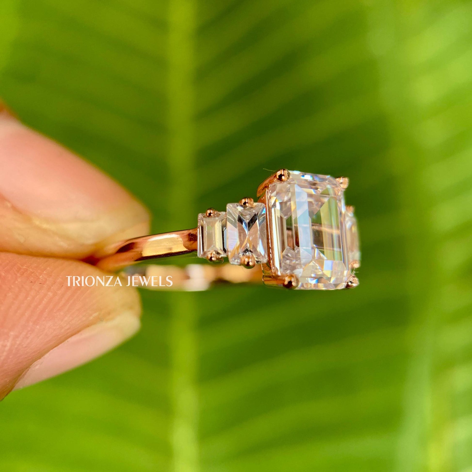 2 CT Emerald Cut Moissanite Wedding Ring - Vintage 5 Stone Promise