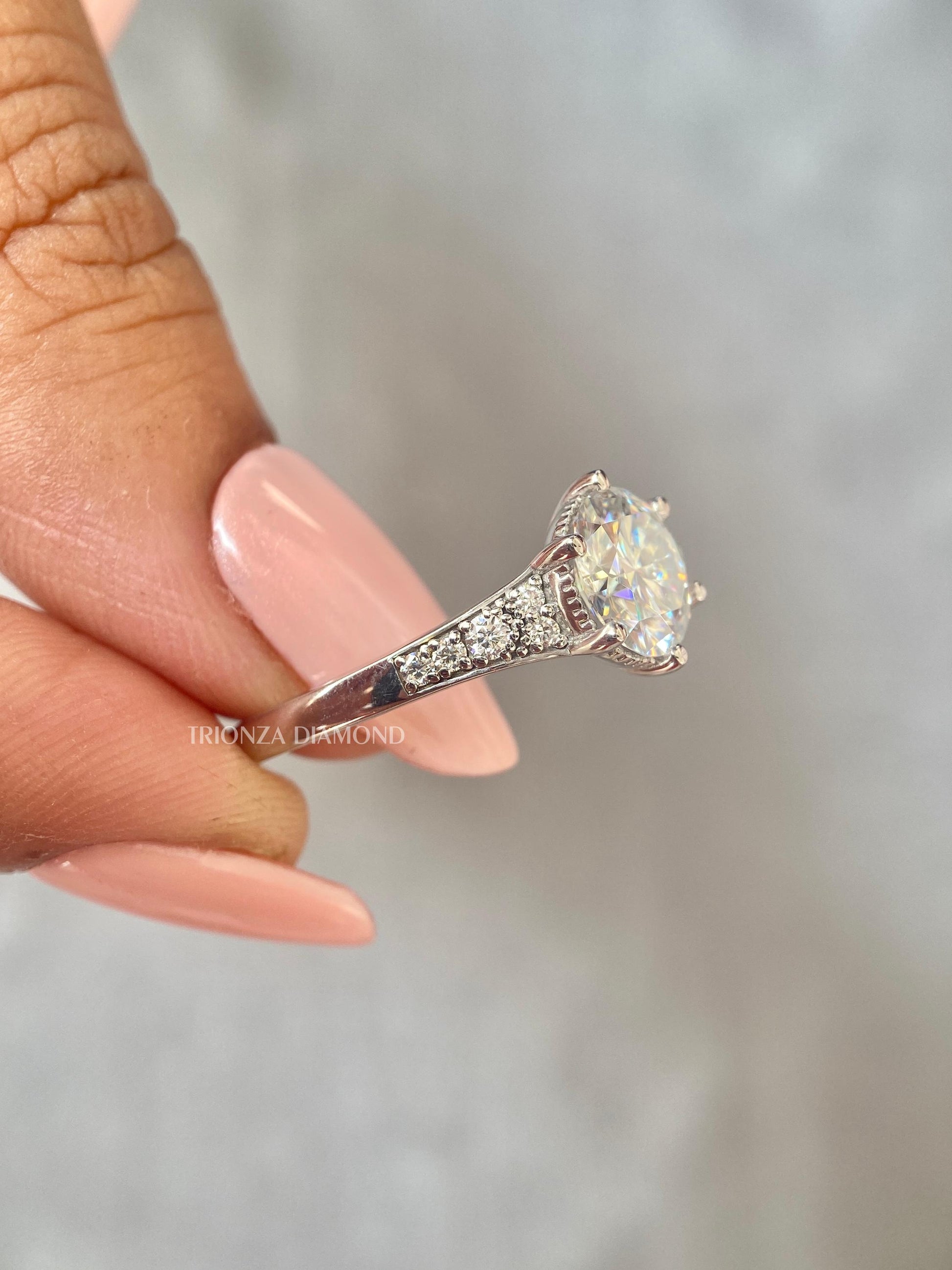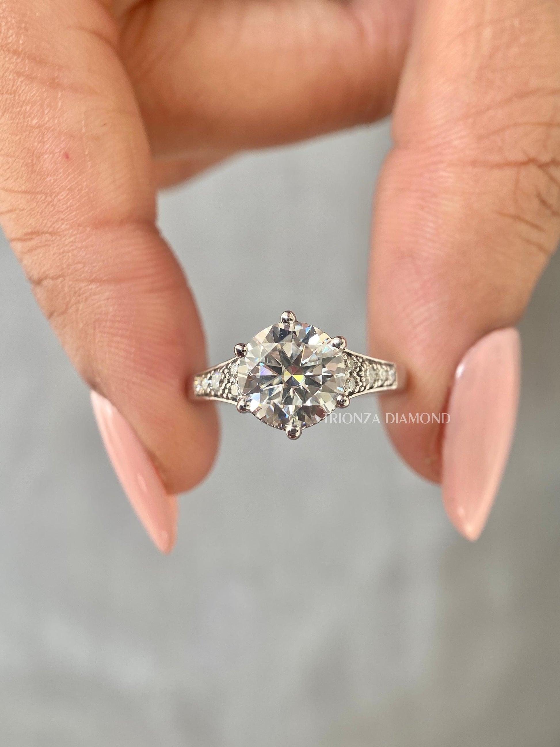 This stunning 2 CT Round Brilliant Cut Ring features an E/VVS2 Lab-Grown Solitaire Accent Diamond set in 10K Solid Gold. An eco-friendly and conflict-free choice, perfect as an anniversary ring or a beautiful gift for women.