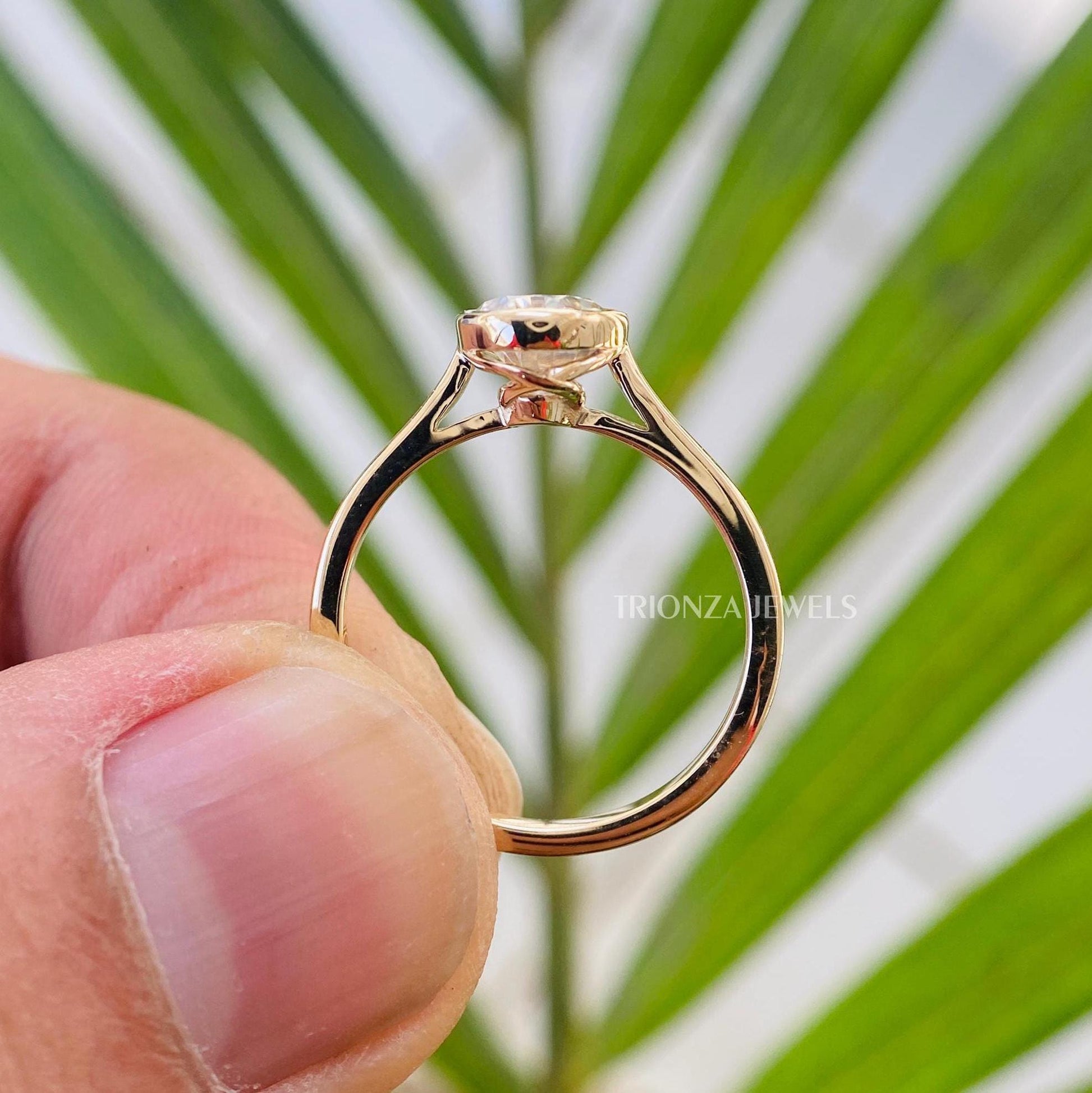 2 CT Oval Moissanite Bezel Solitaire Engagement Ring 14K Gold