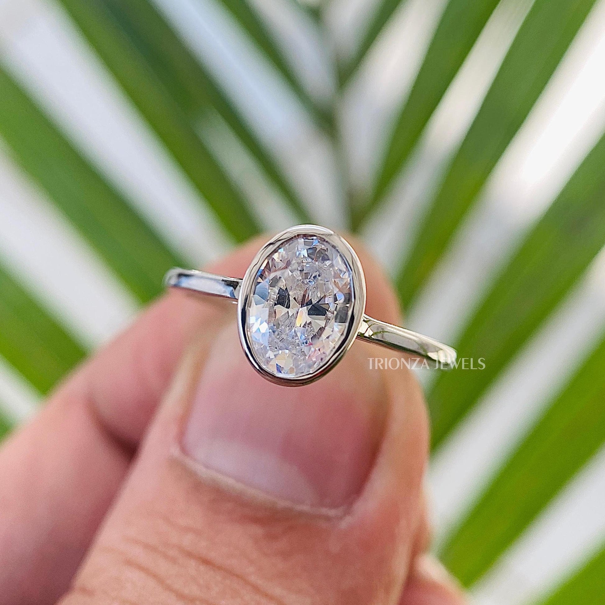 2 CT Oval Moissanite Engagement Ring - 14K Gold Bezel Solitaire