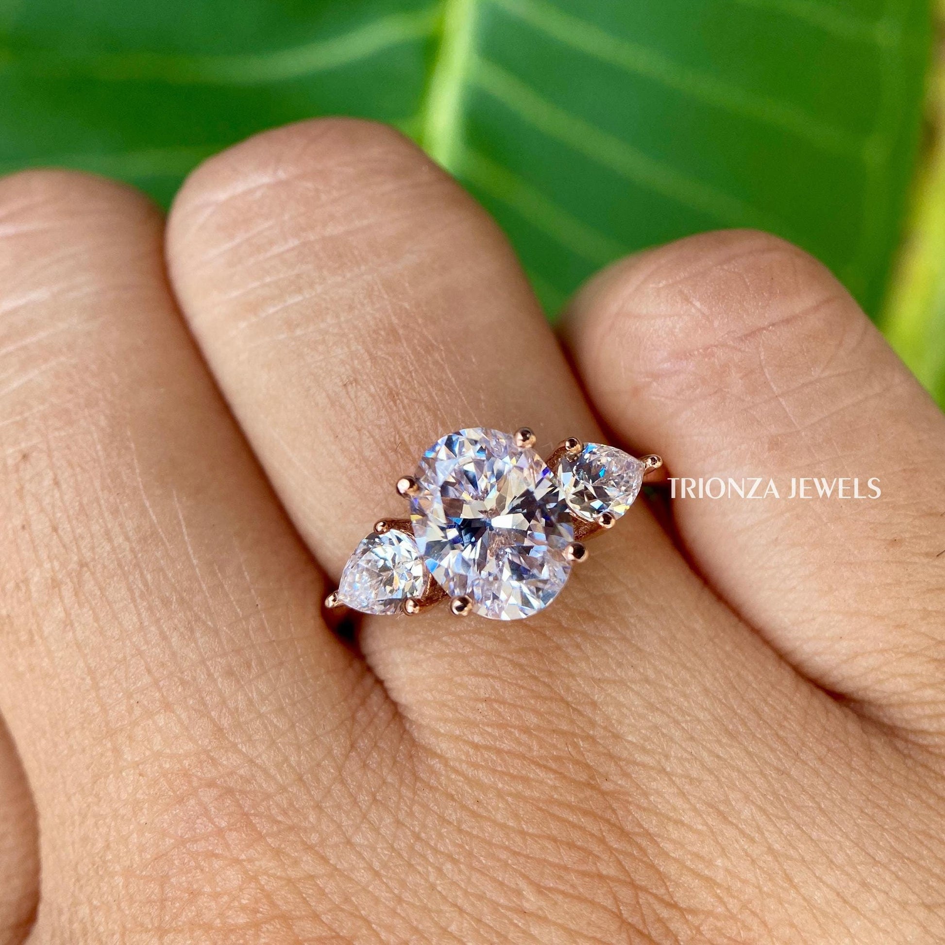 Celebrate your love with this stunning 2 CT Oval Cut Moissanite Three Stone Engagement Ring. Featuring a dazzling oval-cut center stone flanked by elegant pear-cut moissanites, this ring is a timeless symbol of your commitment. Perfect as an engagement ring, wedding band, anniversary gift, or a special present for her.