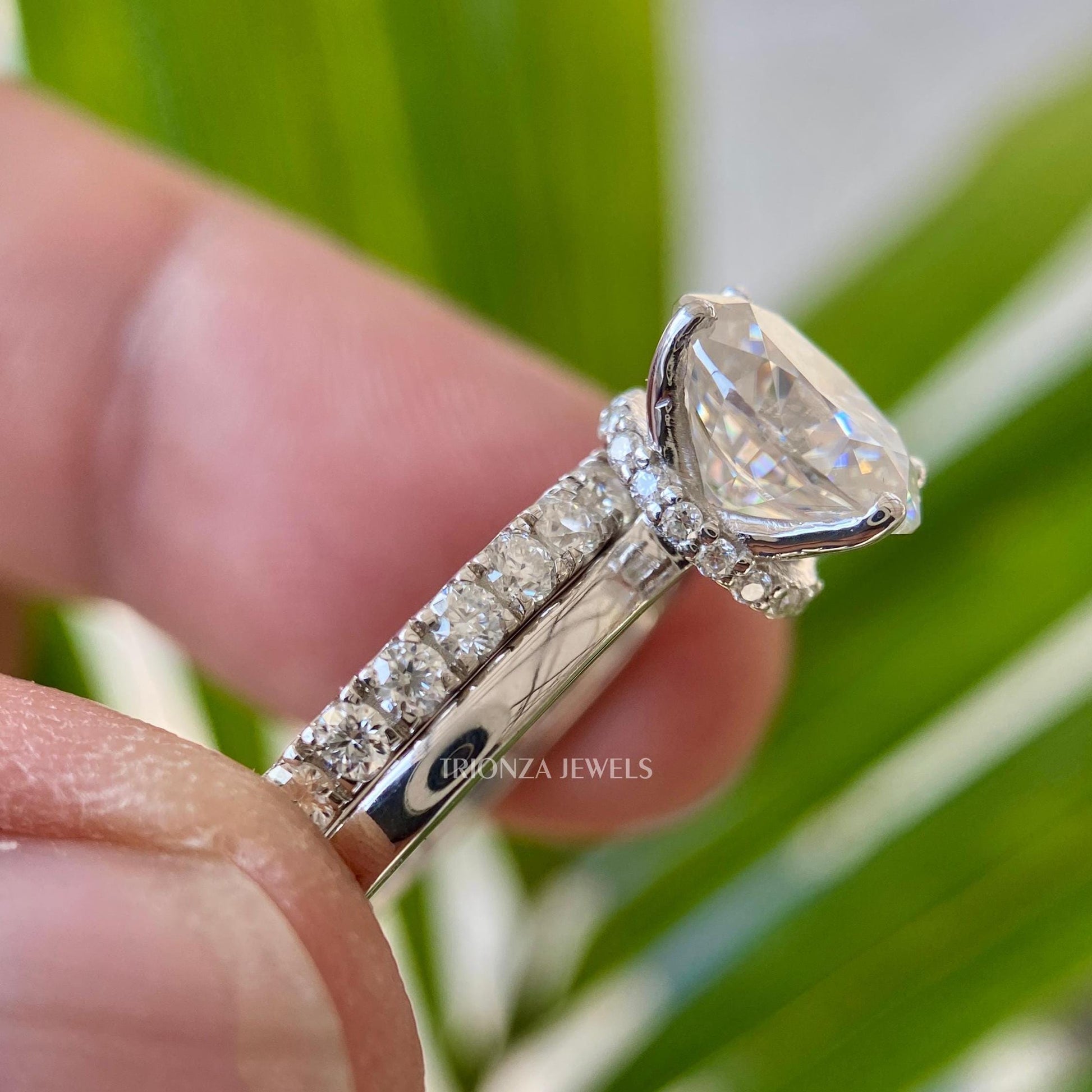 2 CT Oval Moissanite Wedding Ring Set | 14K Gold Engagement & Bridal