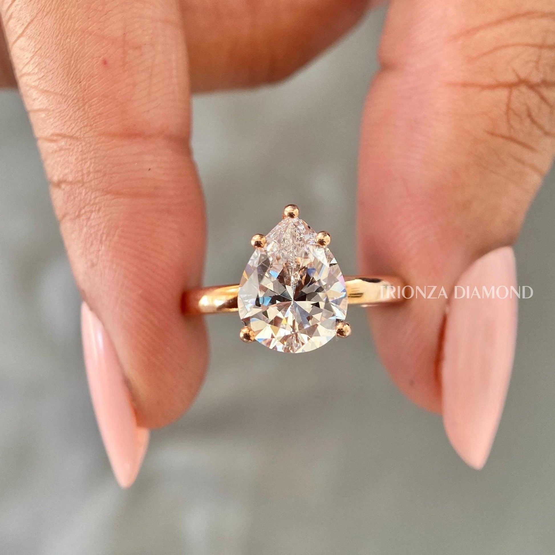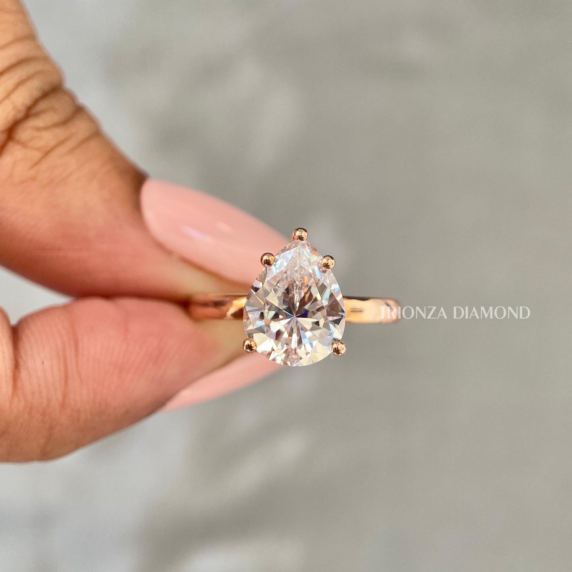 Discover the elegance of our 2 CT Pear Lab Grown Diamond Solitaire Ring, crafted in warm 14K Rose Gold. This exquisite tear-drop engagement ring is a certified lab diamond bridal gift, perfect for her.