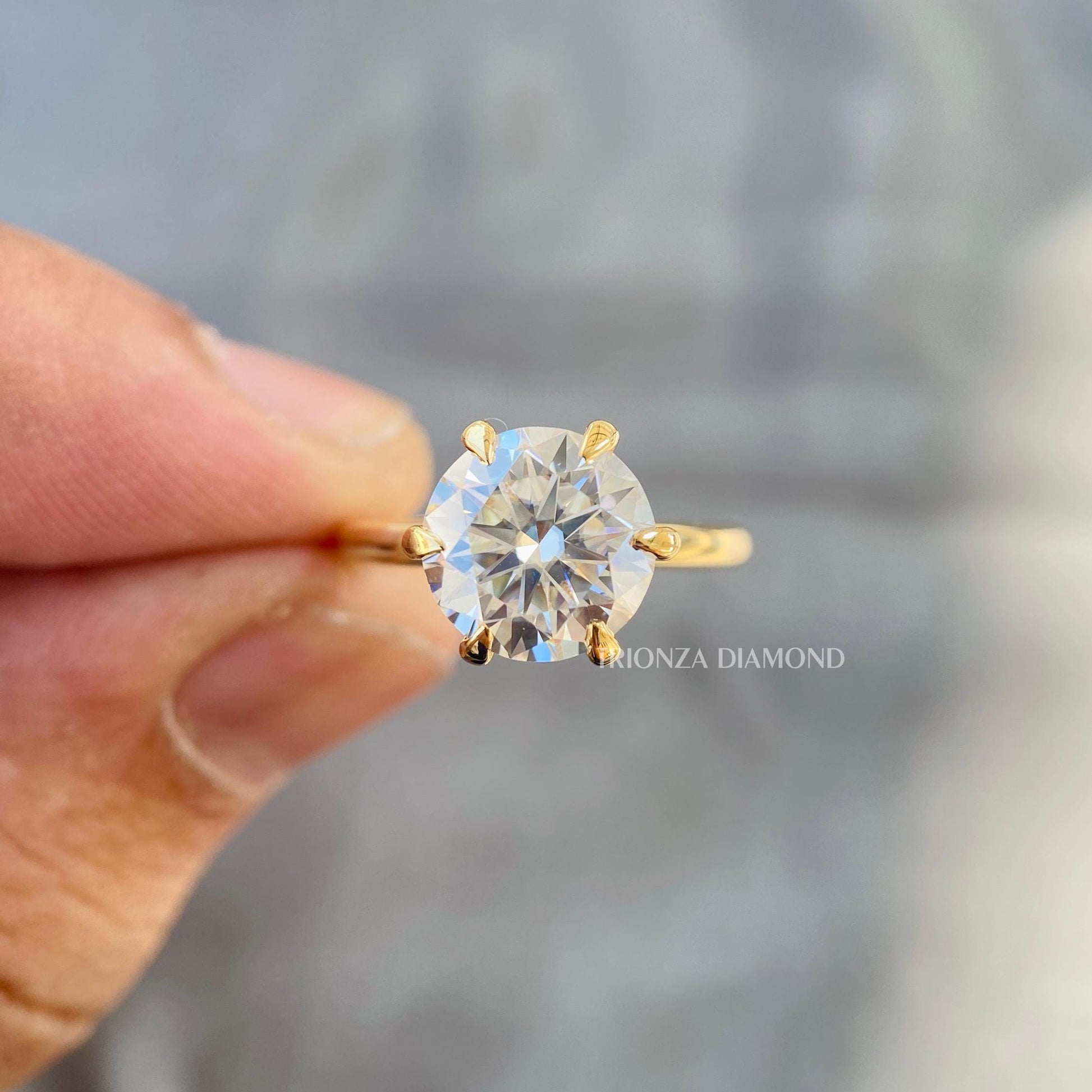 Elevate her style with this stunning 2 CT Round Lab Diamond Engagement Ring. Featuring a D/VVS2 IGI Certified solitaire in a classic 6-prong setting, crafted from radiant 14K Yellow Gold. Its timeless design pairs beautifully with eternity or curved bands, making it a versatile choice for modern brides.