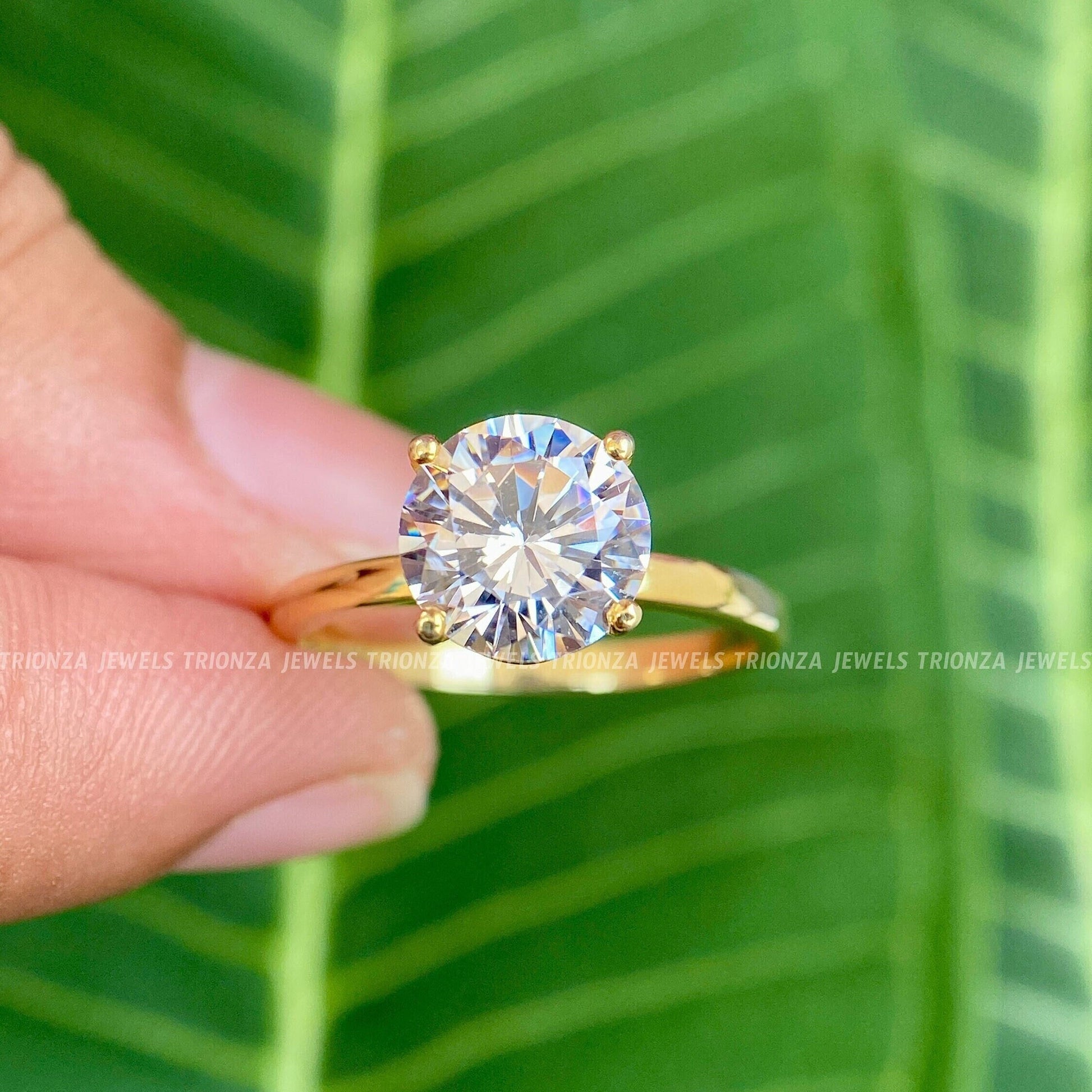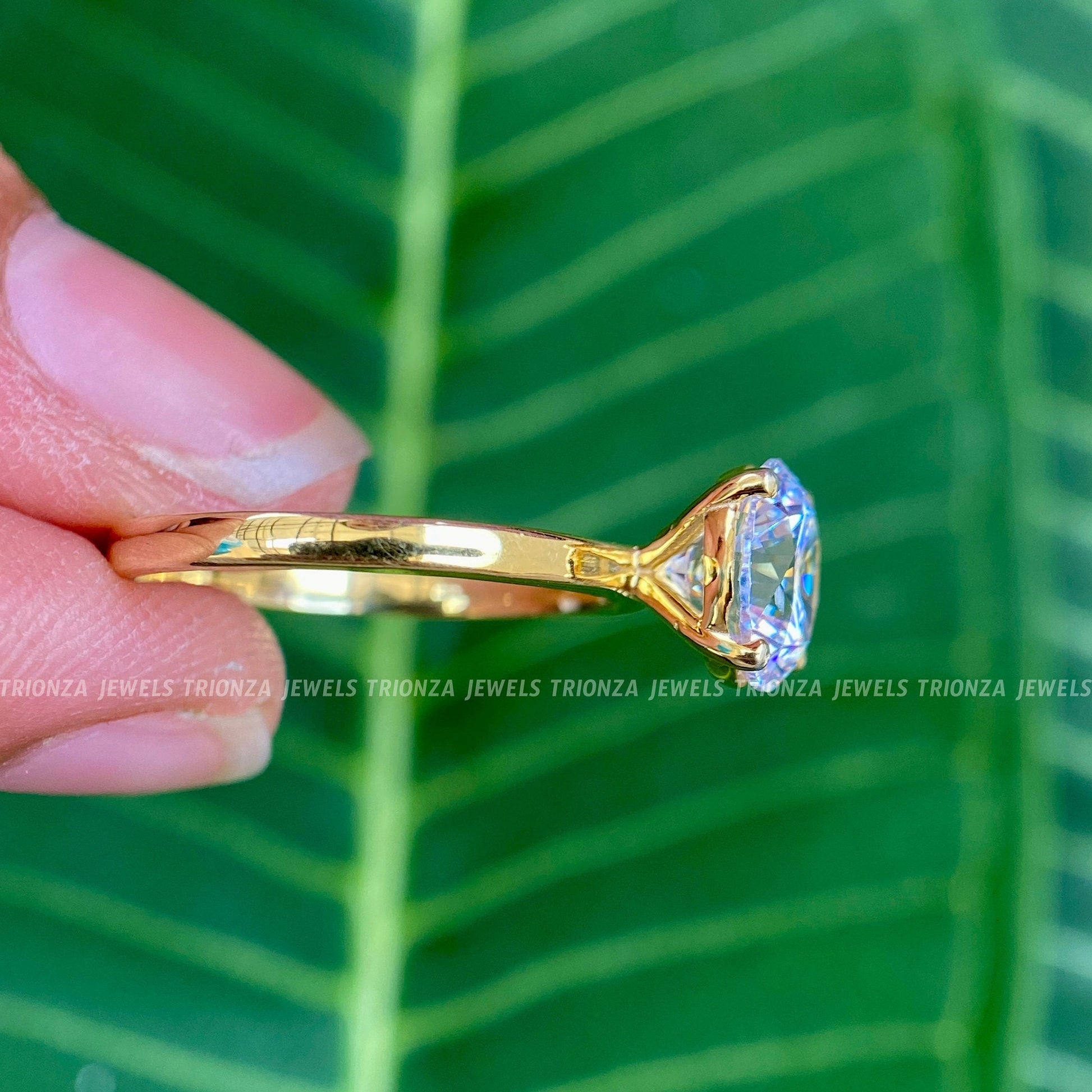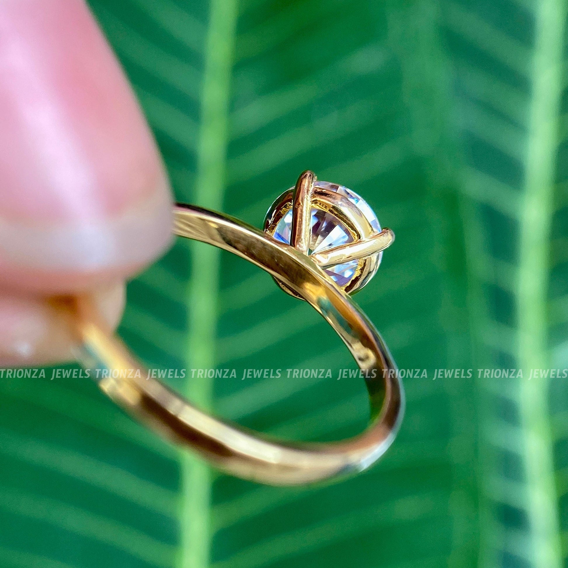 This stunning 2 carat round moissanite engagement ring features a classic 4-prong solitaire setting in lustrous 14k solid gold. A perfect promise ring for her, combining timeless elegance with ethical sourcing.