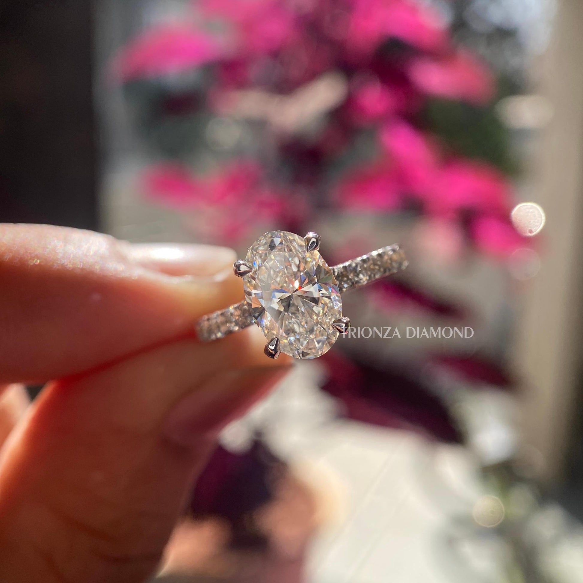 2Ct Oval Lab Grown Diamond Hidden Halo Engagement Ring, IGI Cert.