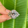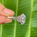 Discover our exquisite 2CT Oval Moissanite Halo Ring, a stunning vintage-style engagement ring crafted in solid 14K white gold. This bridal ring features elegant antique milgrain accents, enhancing the brilliance and fire of the elongated oval moissanite.