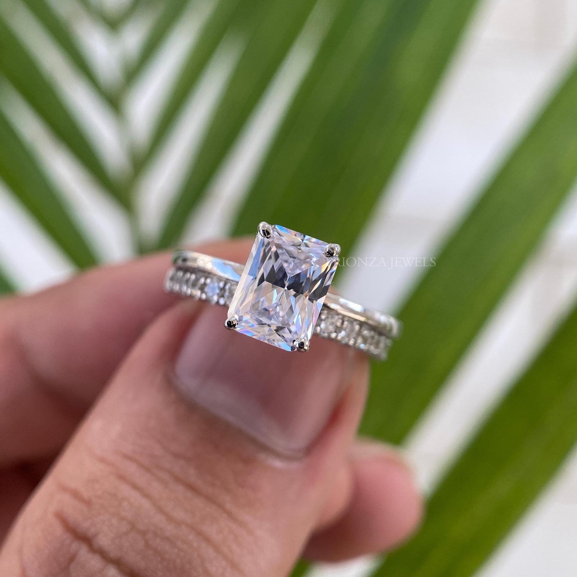 2CT Radiant Moissanite Solitaire Bridal Set Engagement Ring