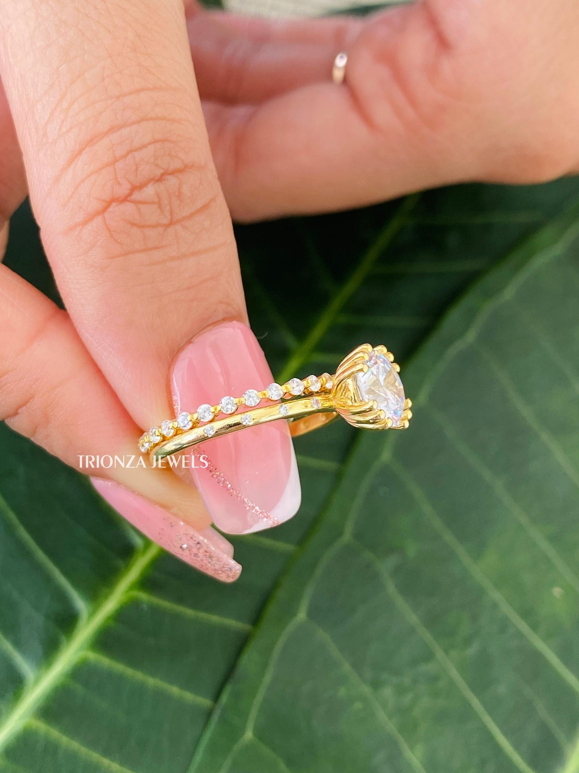 2CT Round Moissanite Bridal Set, 14K Gold Engagement Wedding Ring
