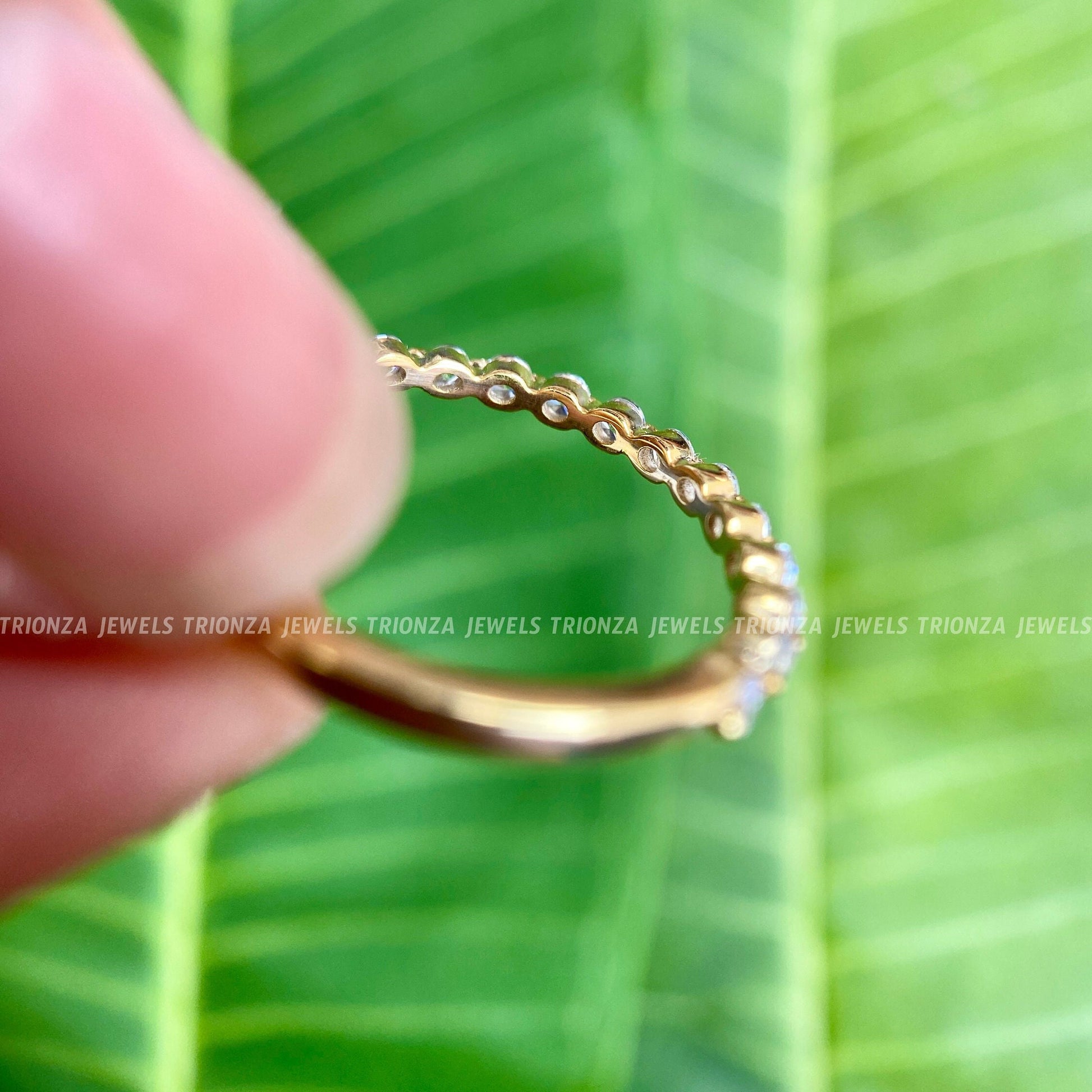 Discover the elegant 2mm Half Floating Bubble Wedding Band from TRIONZA JEWELS. Crafted in 14K Solid Gold with brilliant Moissanite diamonds, this stunning half eternity band is perfect as a wedding, anniversary, or special occasion gift for her.