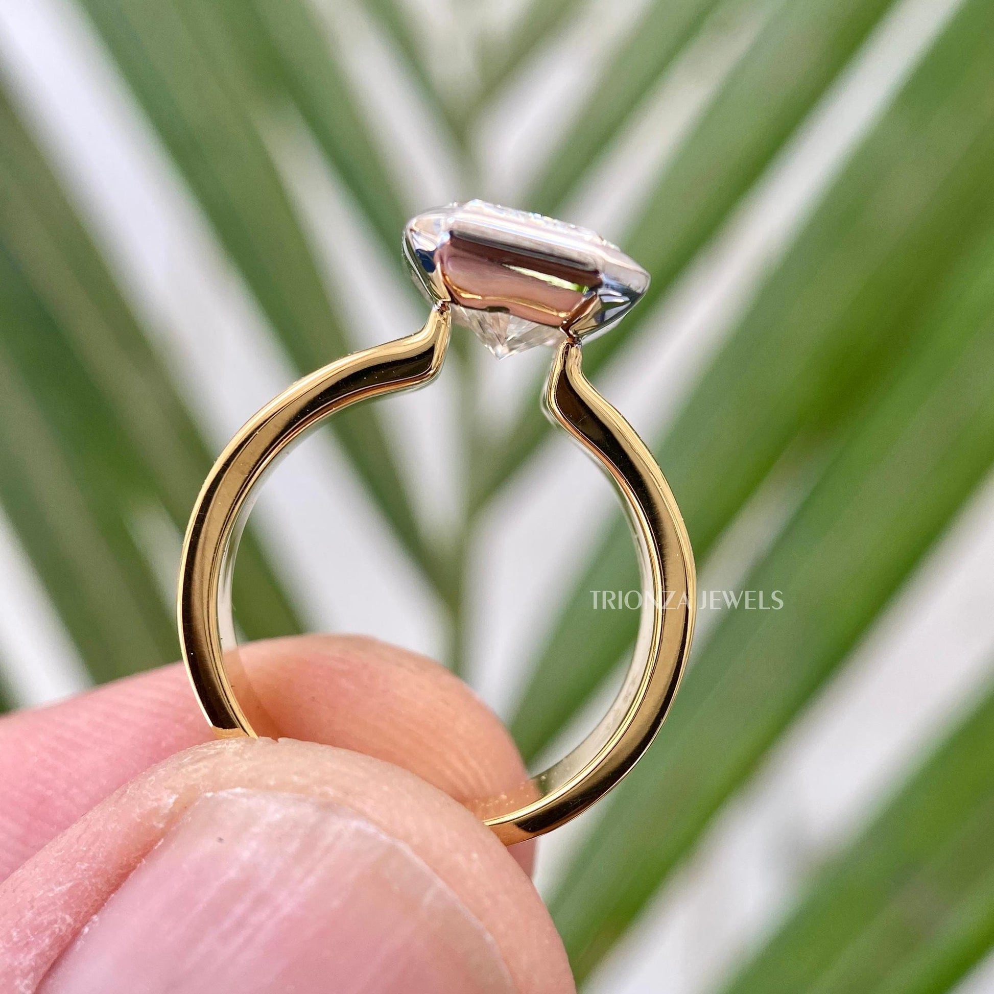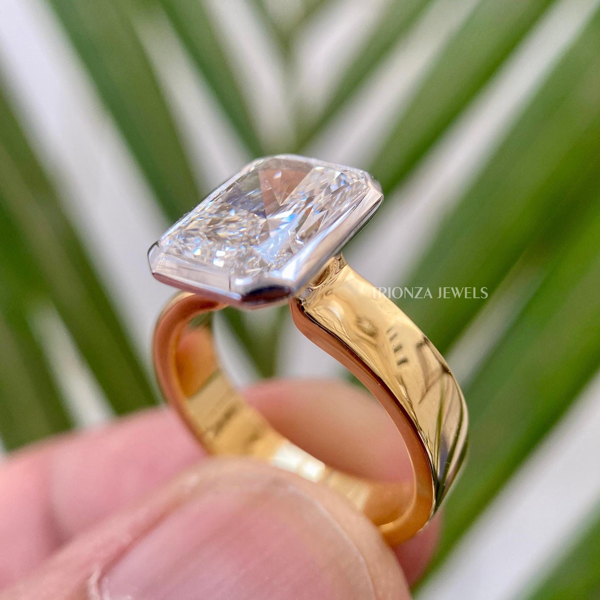 3.0 CT Radiant Moissanite Bezel Set Engagement Ring 14K Two Tone Gold