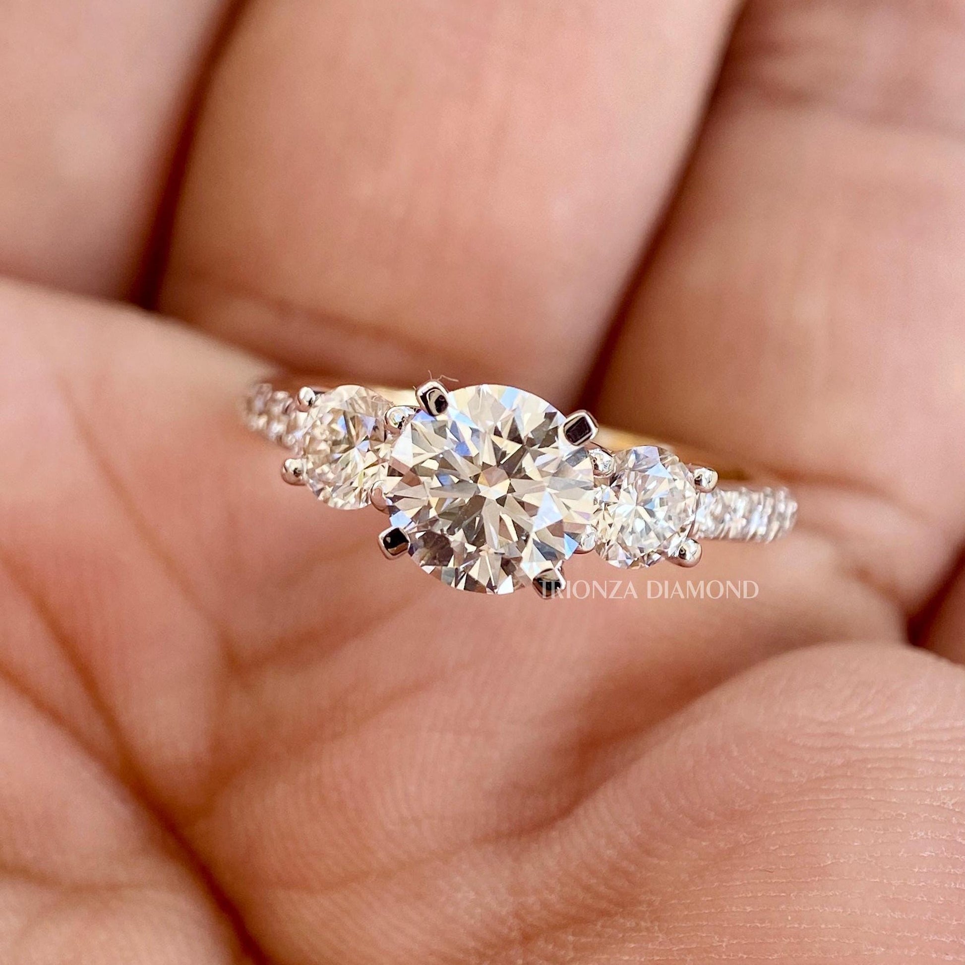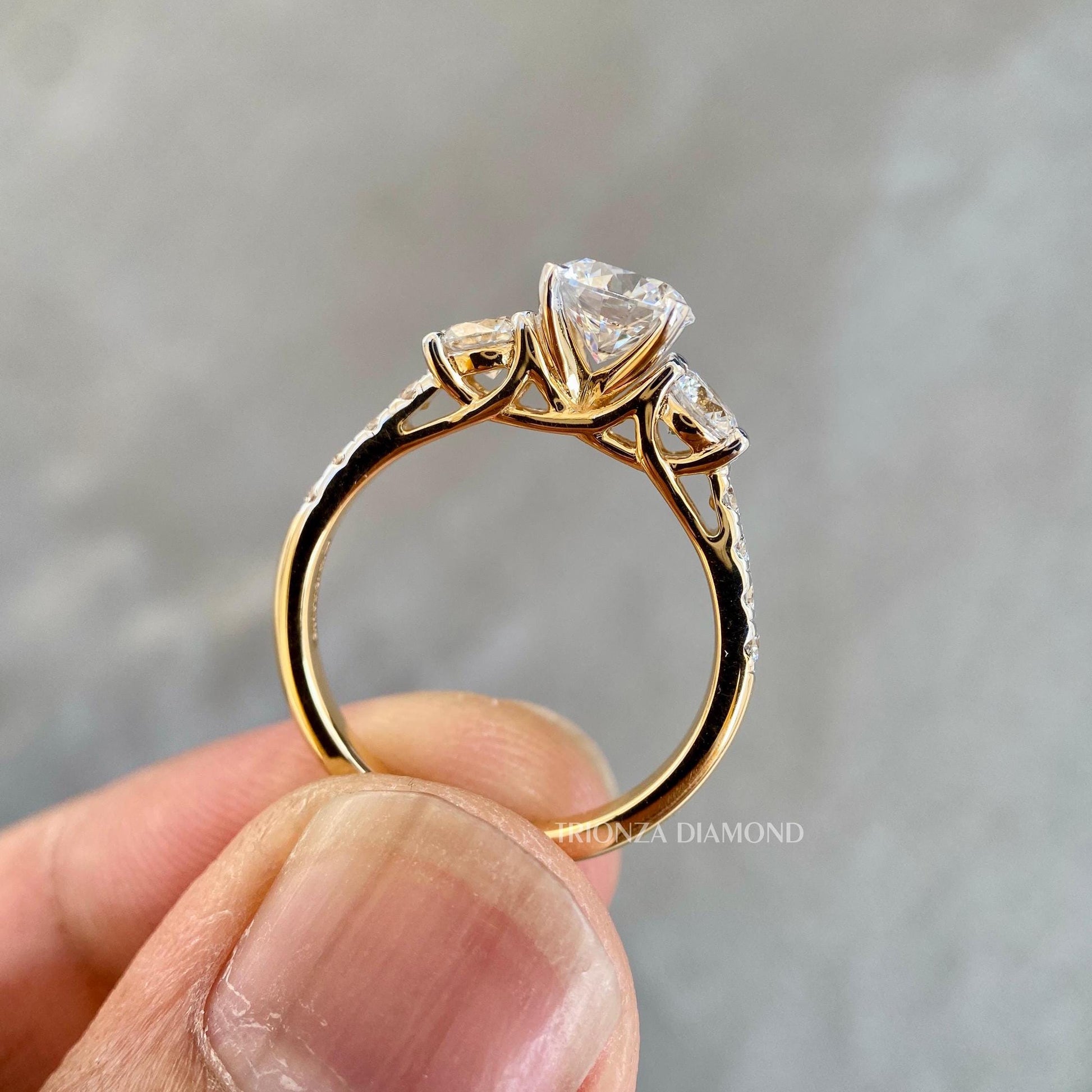 Celebrate your love with this stunning 3.0 TCW 3-Stone Round Lab Diamond Anniversary Band. This exquisite ring features three brilliant round lab-grown diamonds set in a beautiful yellow gold band, perfect as a wedding ring, engagement ring, or a special anniversary gift. Each diamond is conflict-free and meticulously crafted by TRIONZA DIAMOND, ensuring exceptional quality and unique design.