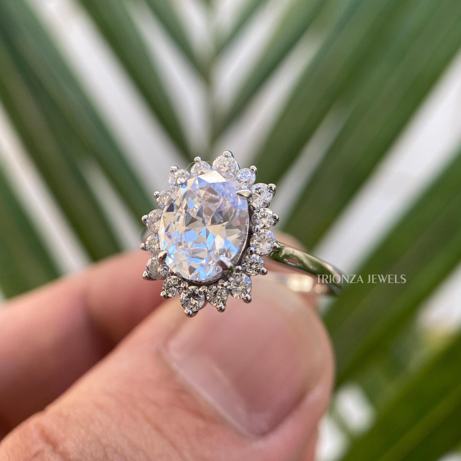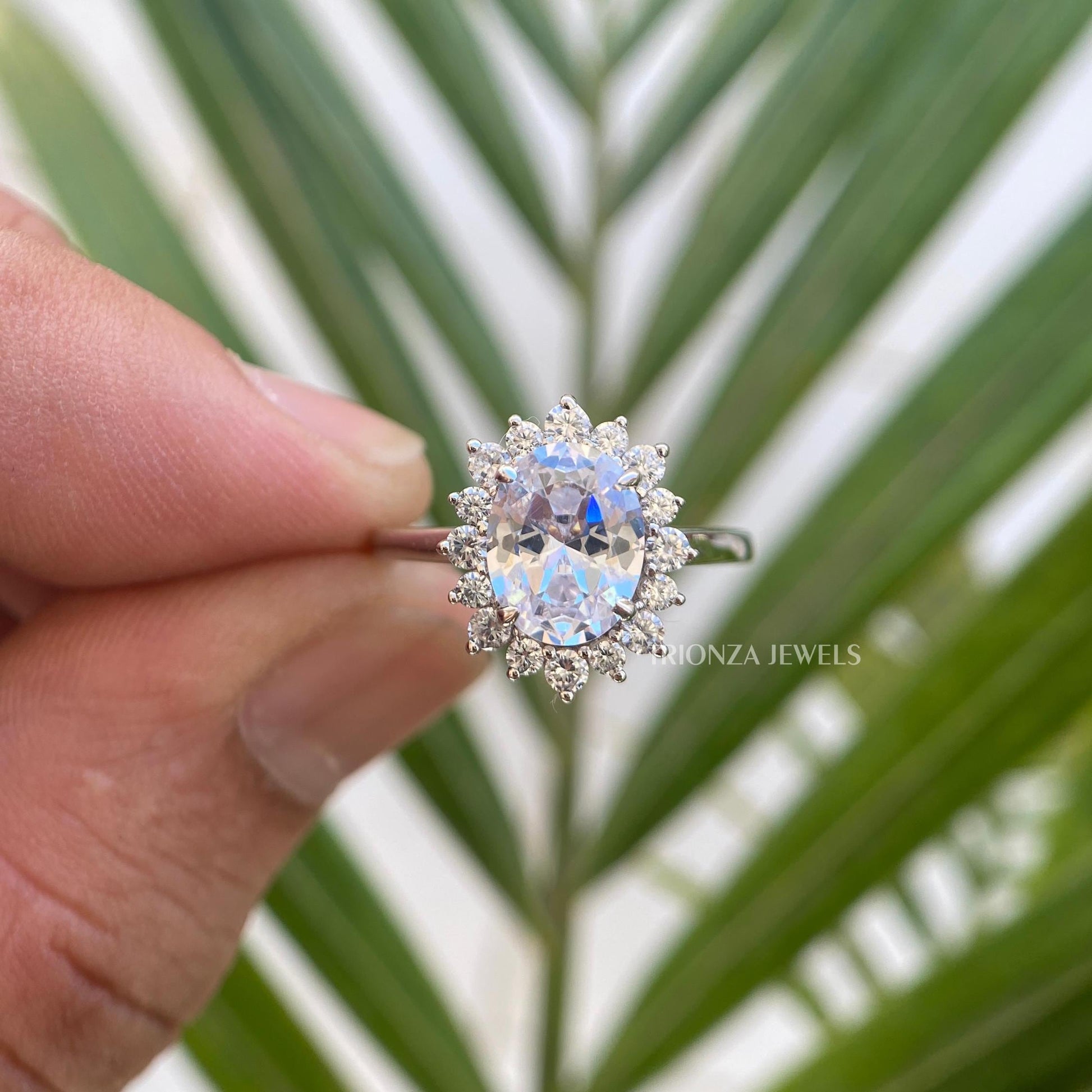 3.00 CT Oval Moissanite Halo Engagement Wedding Ring for Women