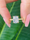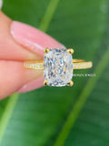 3.09 TW Cushion Ice Crushed Colorless Moissanite Engagement Ring | Hidden Halo Ring | Claw Prongs | Solid White Gold Ring | Wedding Ring Set, Anniversary Gift for Her, 14k Solid Yellow Gold Ring, Statement Ring, Gift For Bride, Anniversary Band, moissanite, moissanite band, wedding band, engagement ring, Colorless Moissanite
