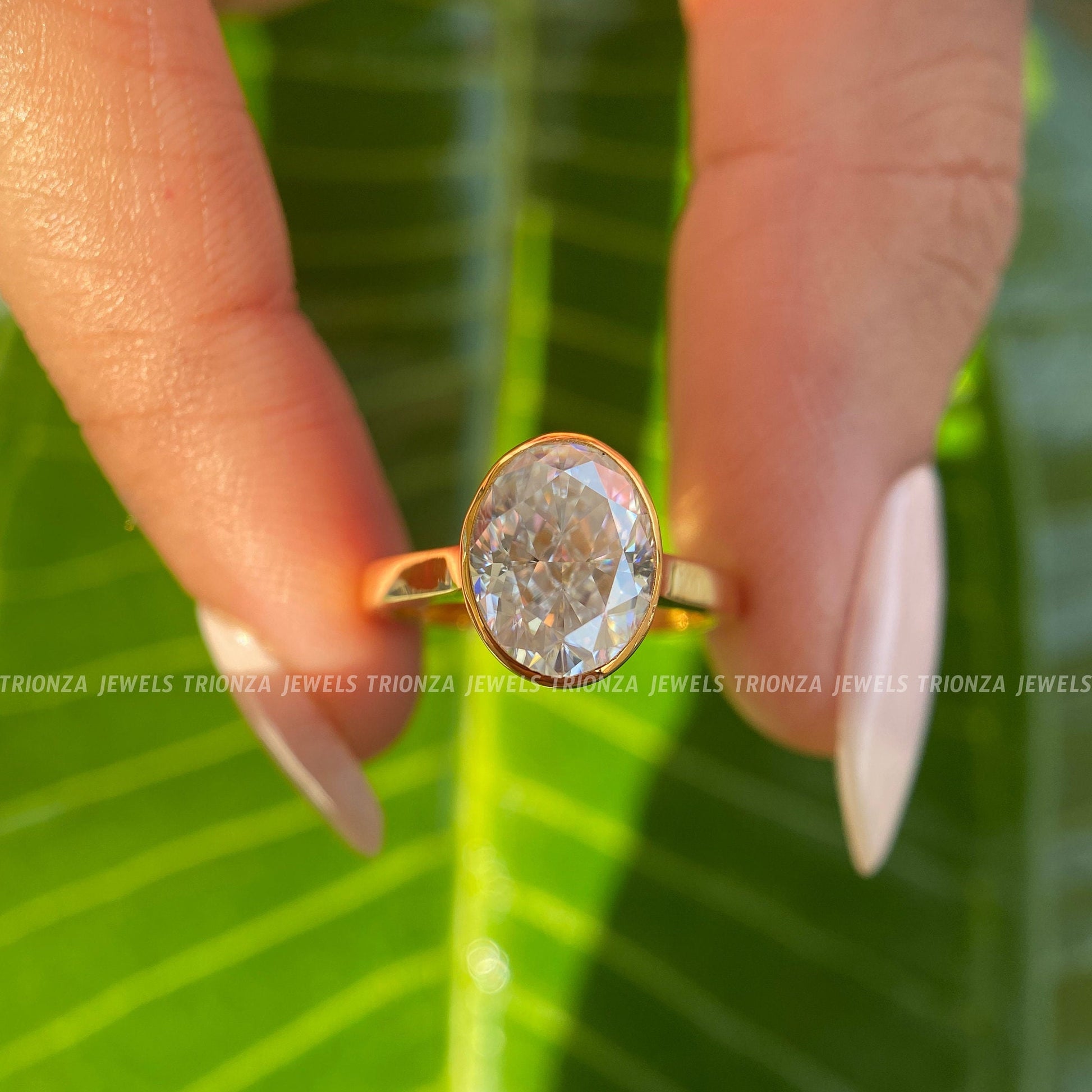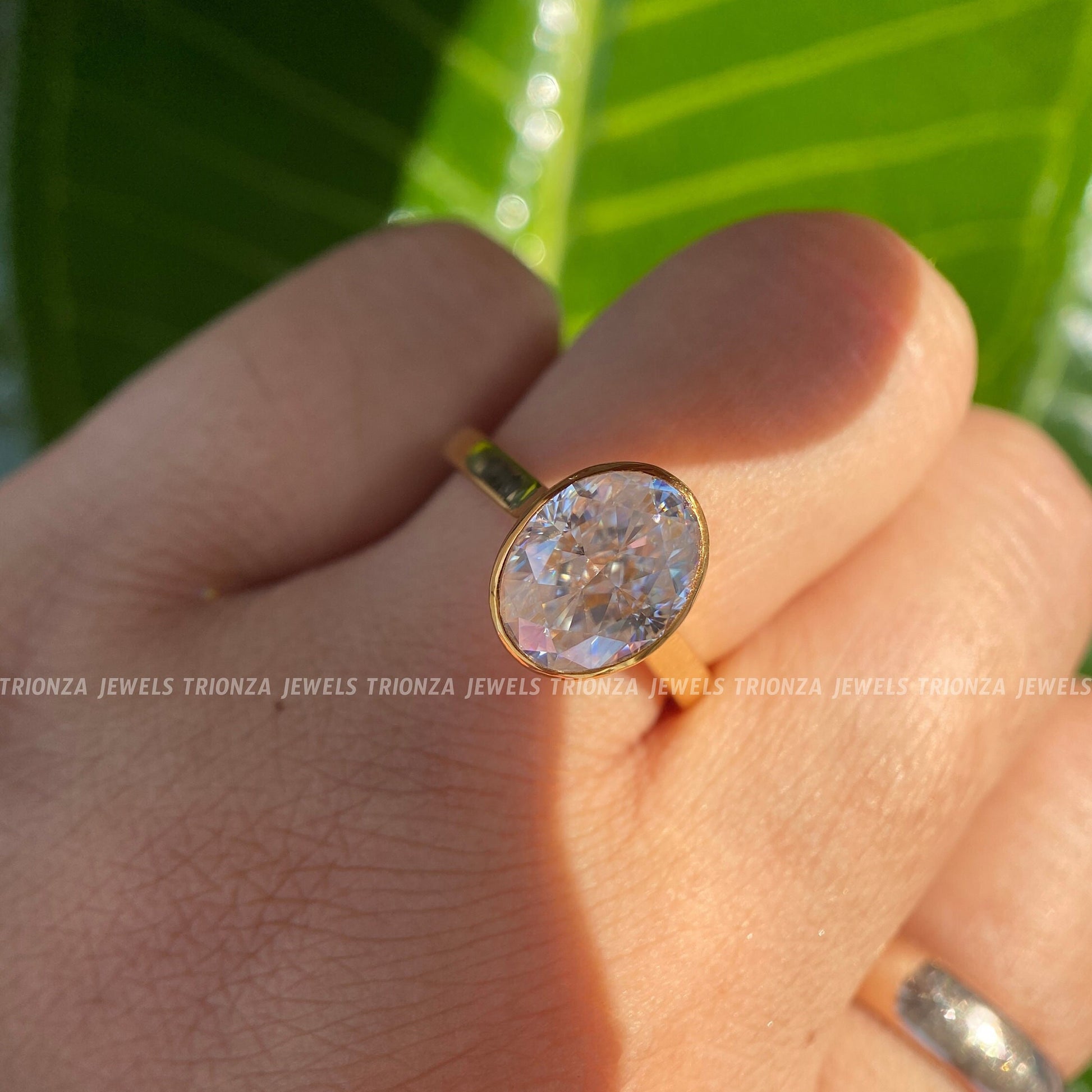 3.10 CT Oval Moissanite Engagement Ring | 14K Yellow Gold Bezel