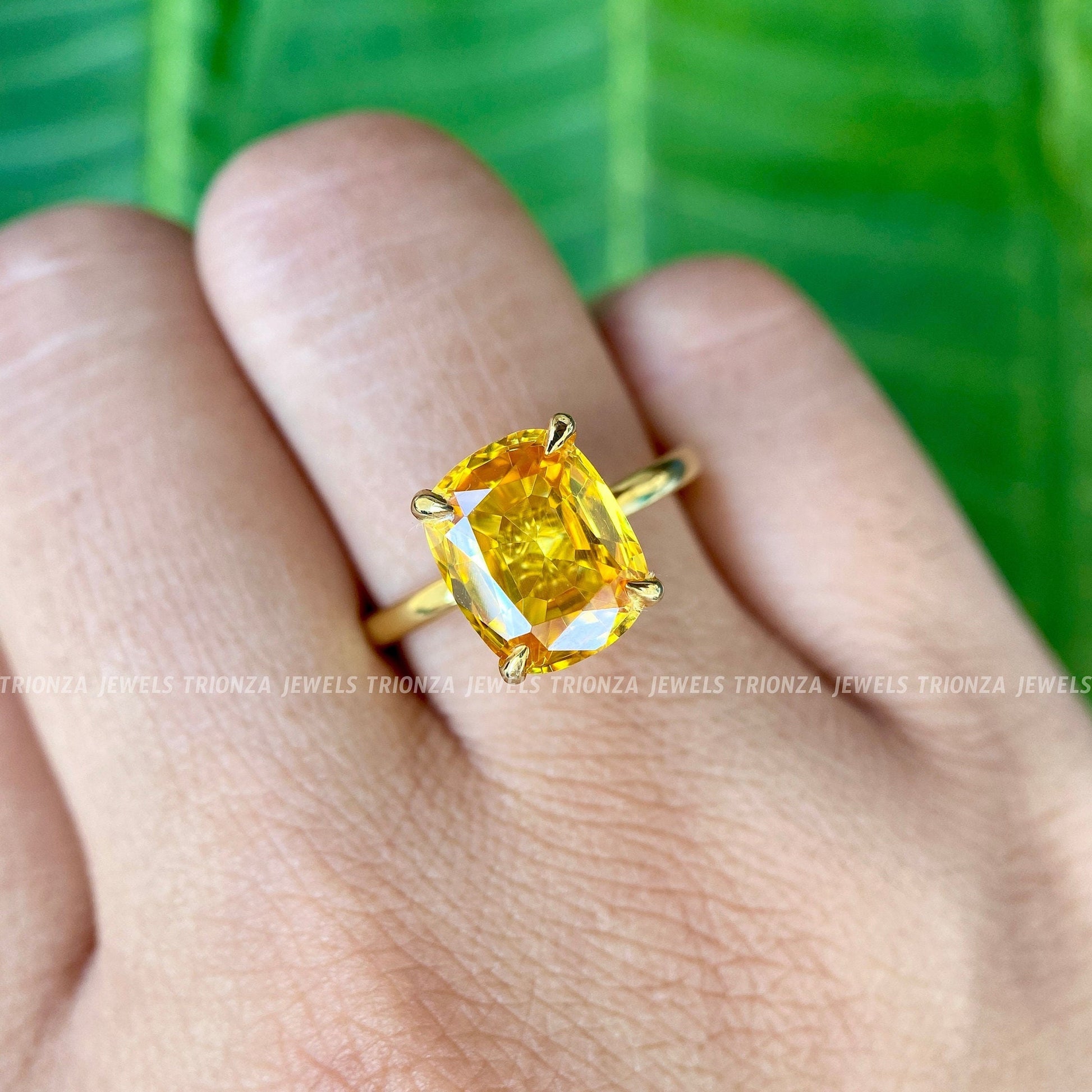 3.50 CT Canary Yellow Cushion Moissanite Engagement Ring Solitaire