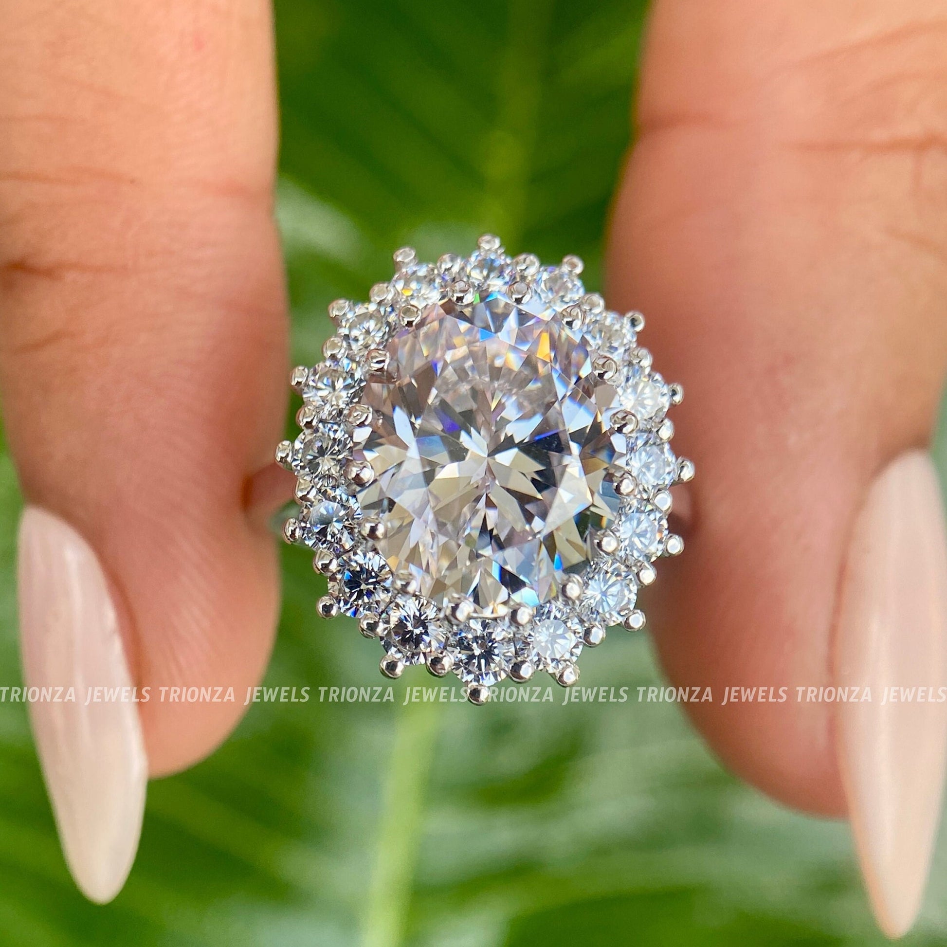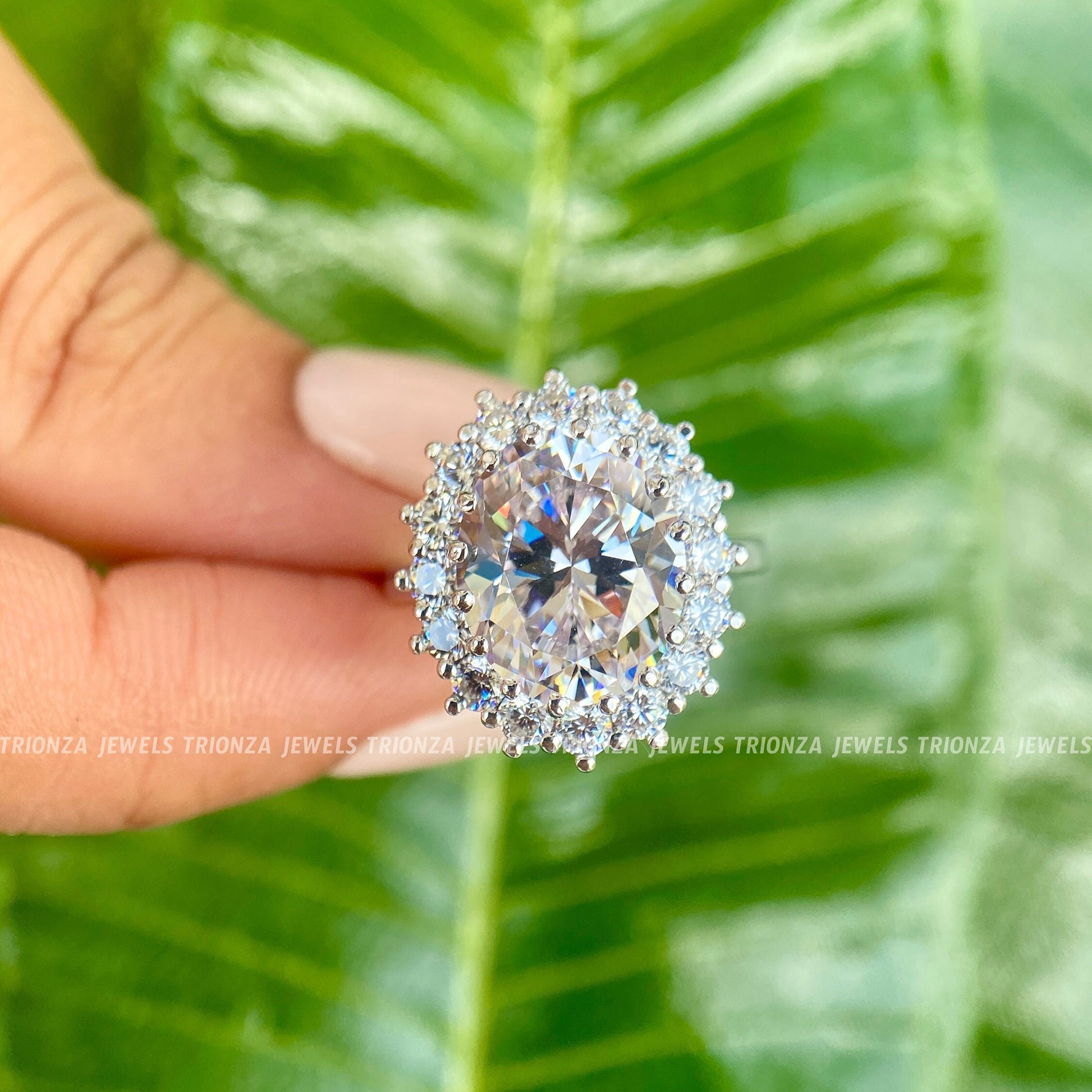 3.50 TCW Oval Moissanite Halo Engagement Wedding Ring - Colorless