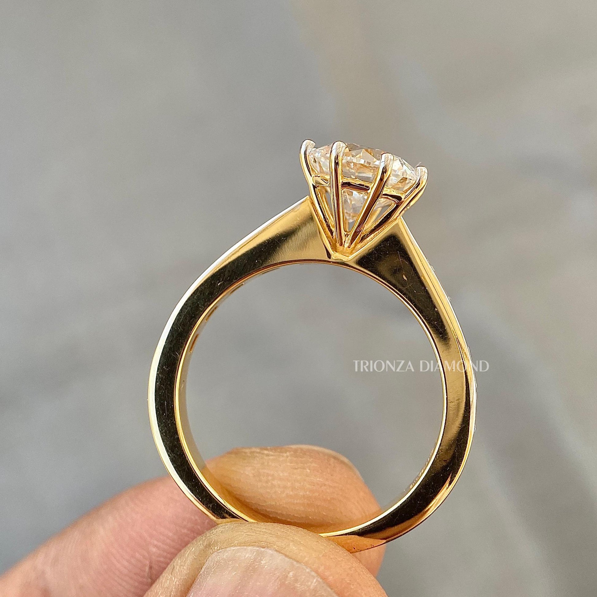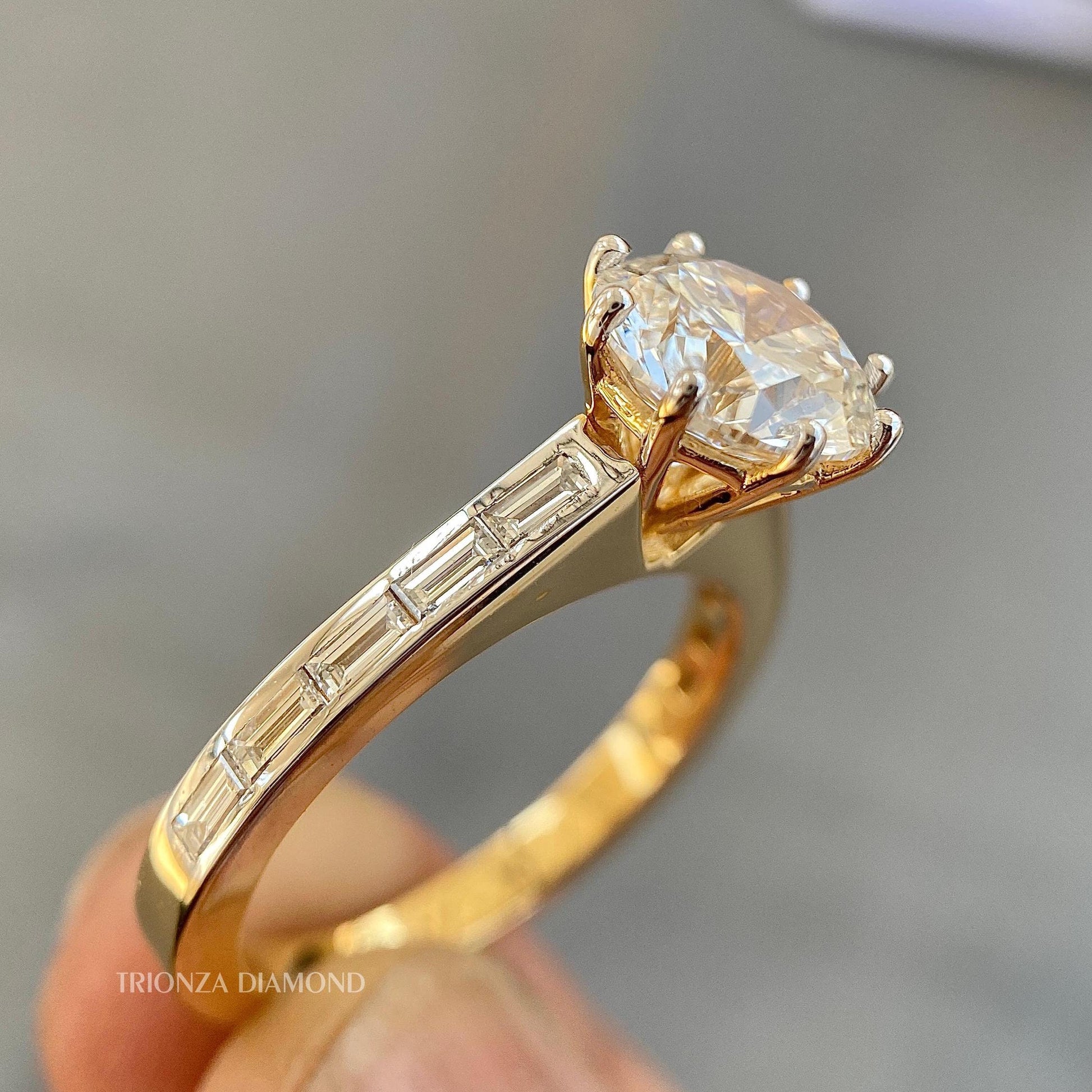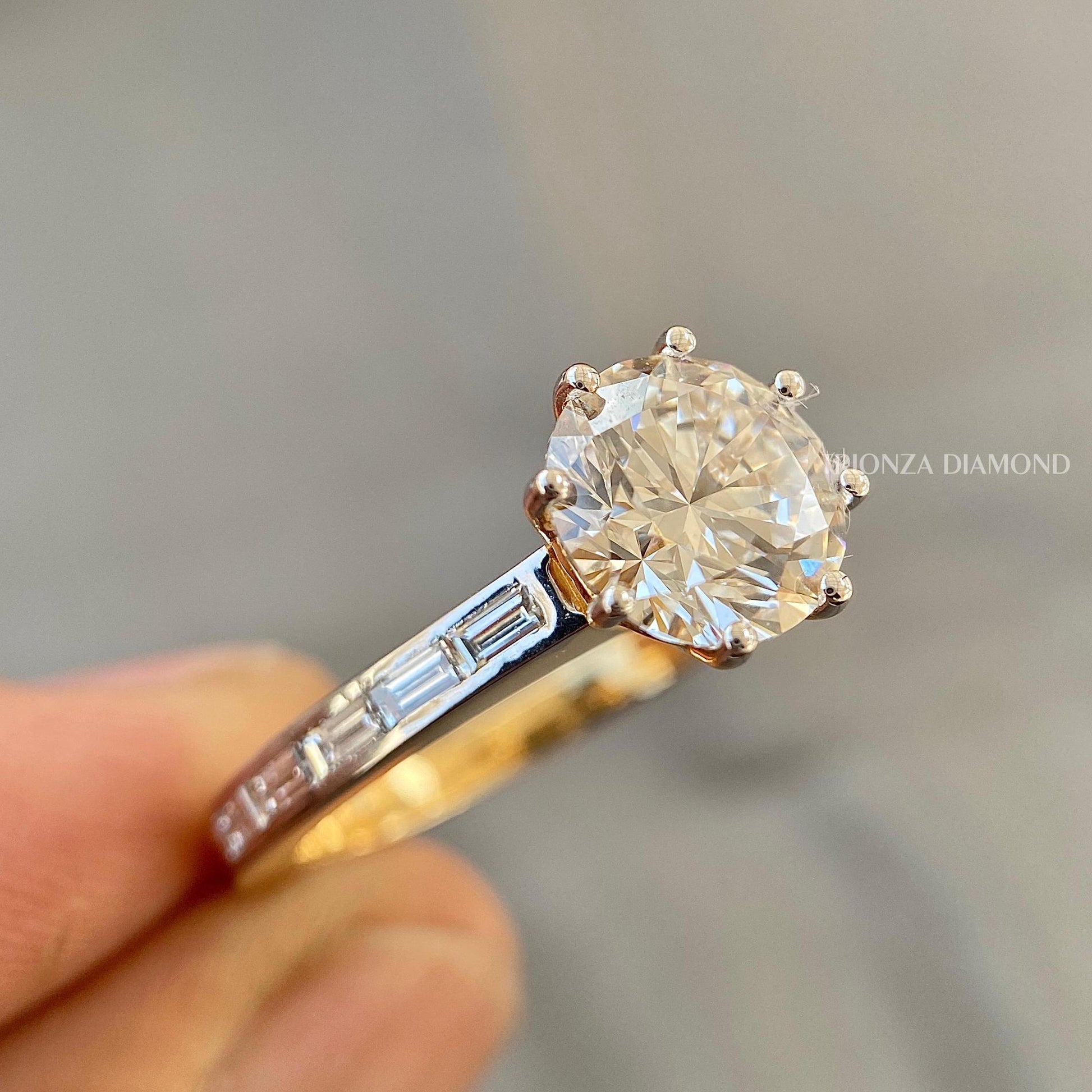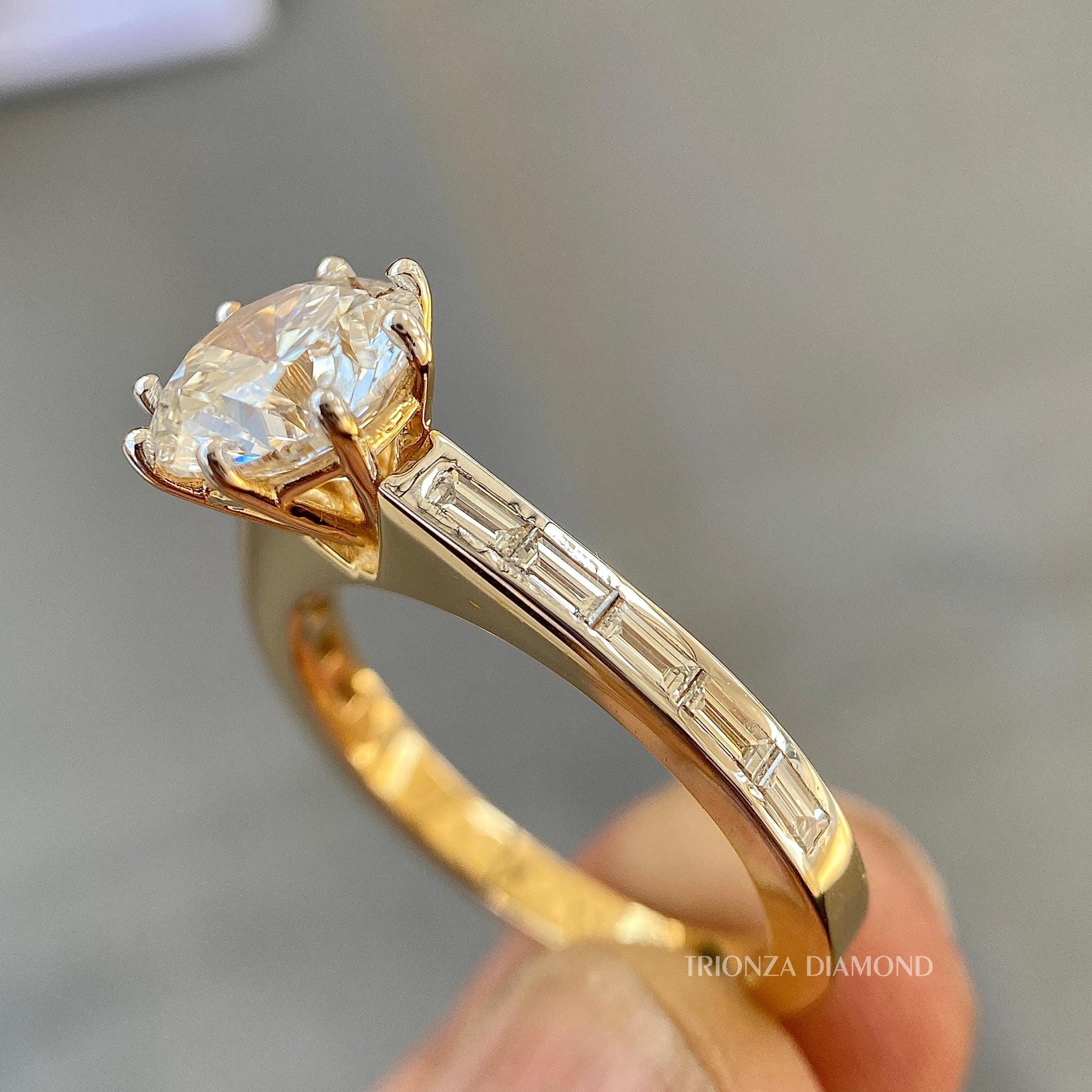 Discover our stunning 3 Carat IGI Certified Lab Created Diamond Wedding Ring, featuring a D Color, VVS1 Clarity round brilliant diamond with elegant baguette pave setting. Perfect as an engagement ring or a unique diamond ring, it's conflict-free and handcrafted by TRIONZA DIAMOND.