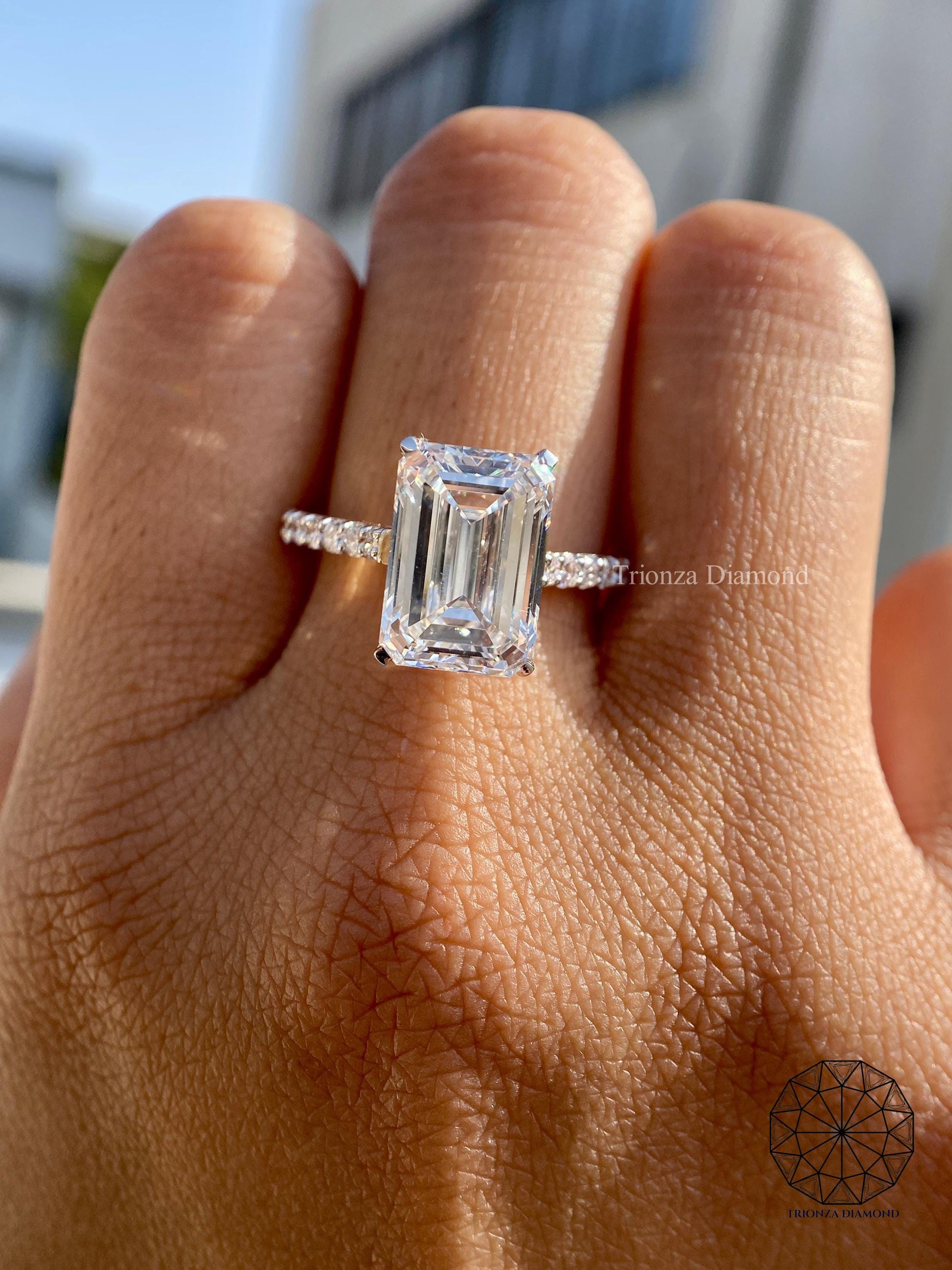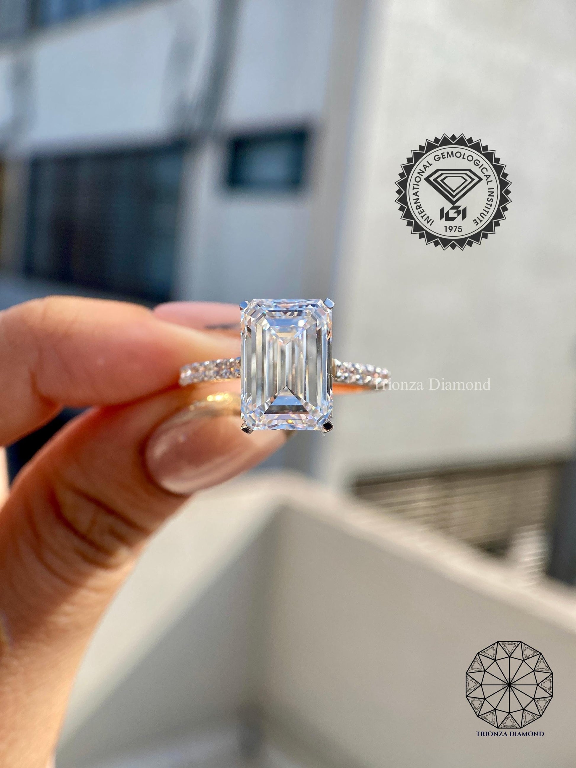 3 CT Emerald Cut Lab Grown Diamond Engagement Ring IGI Certified