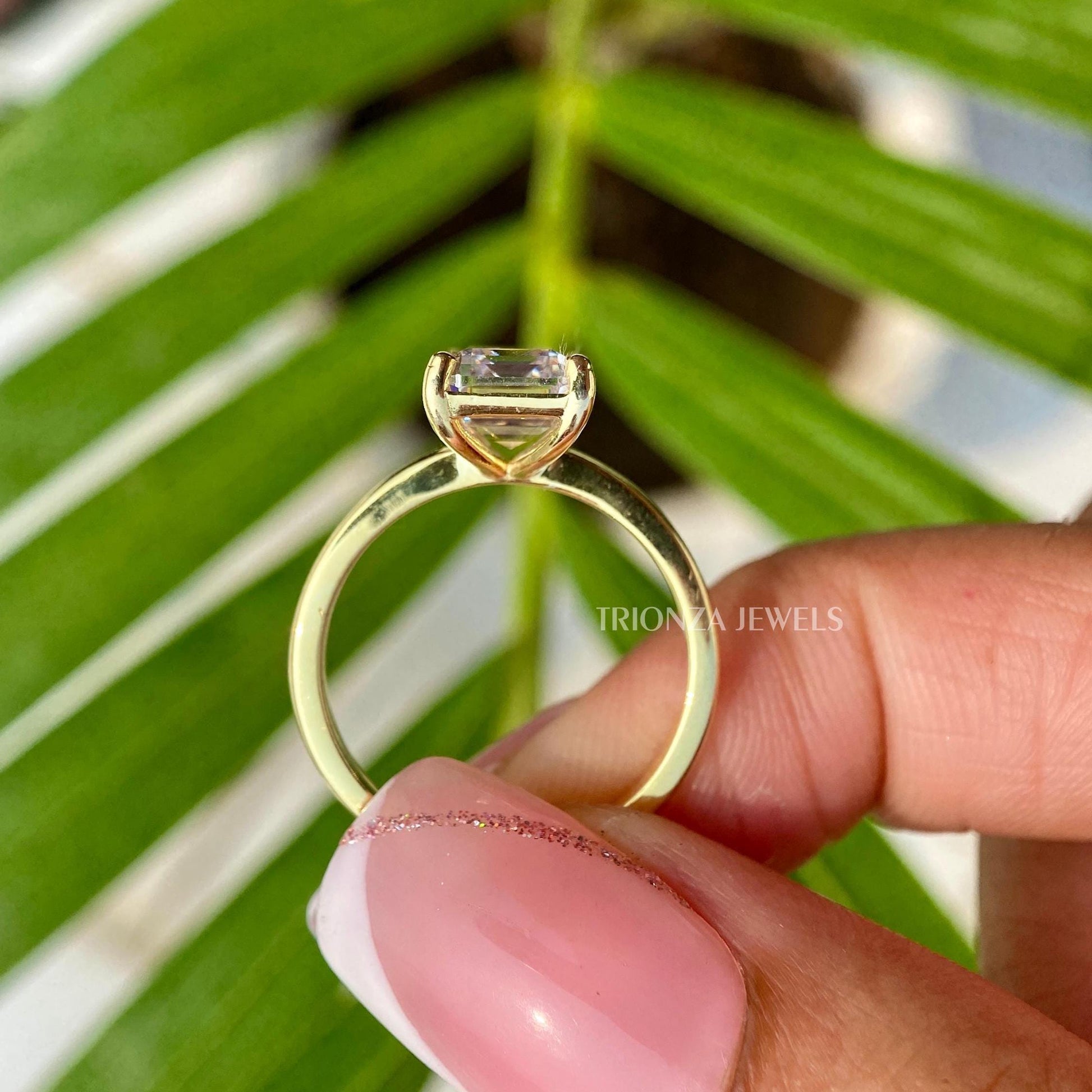 Celebrate your love with this stunning 3 CT Emerald Cut Moissanite Engagement Ring, crafted in 10K Solid Yellow Gold. Perfect as a promise ring, proposal ring, or anniversary gift for her. This elegant ring combines classic design with ethical brilliance.