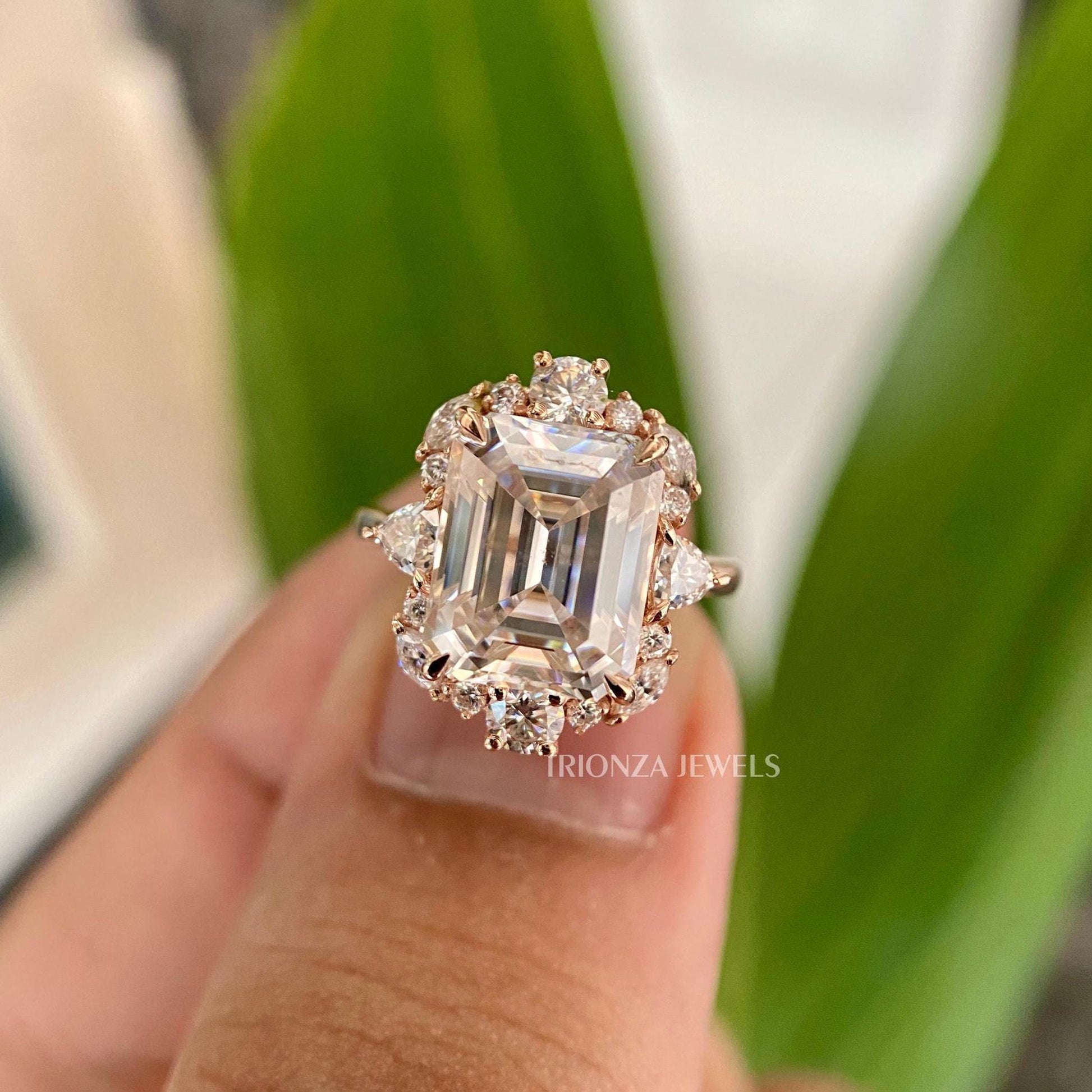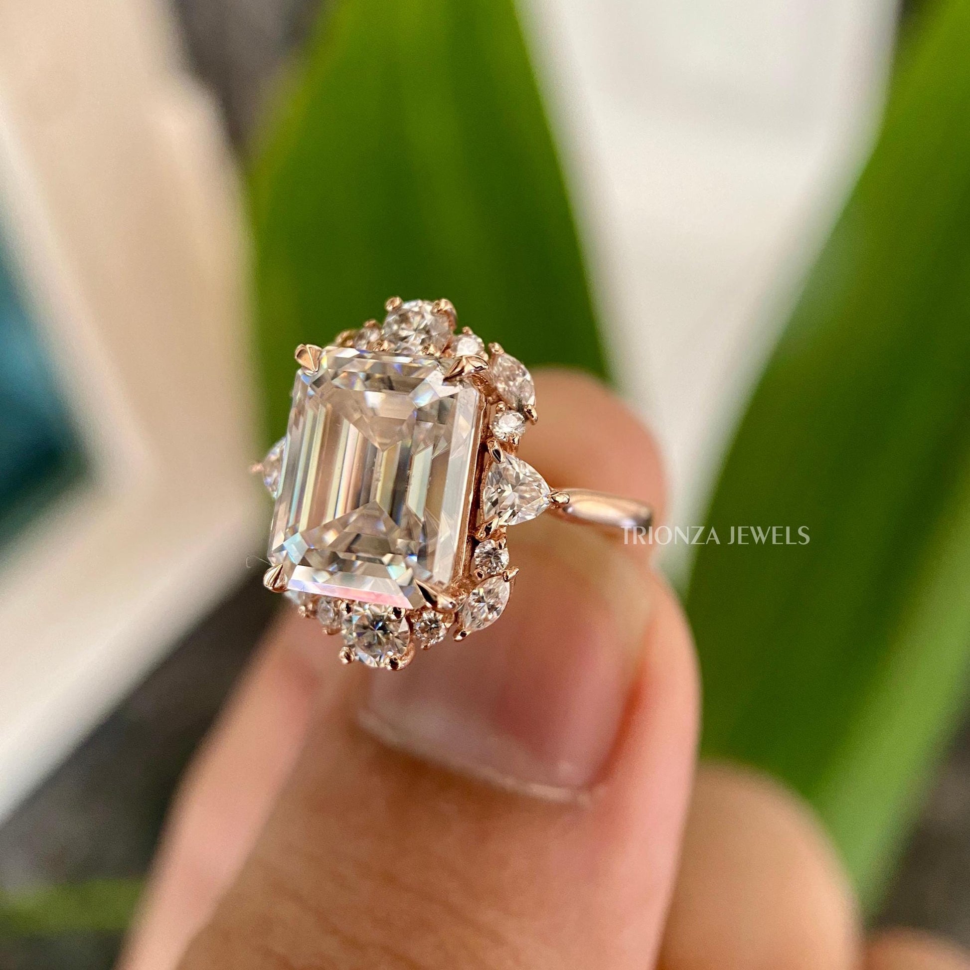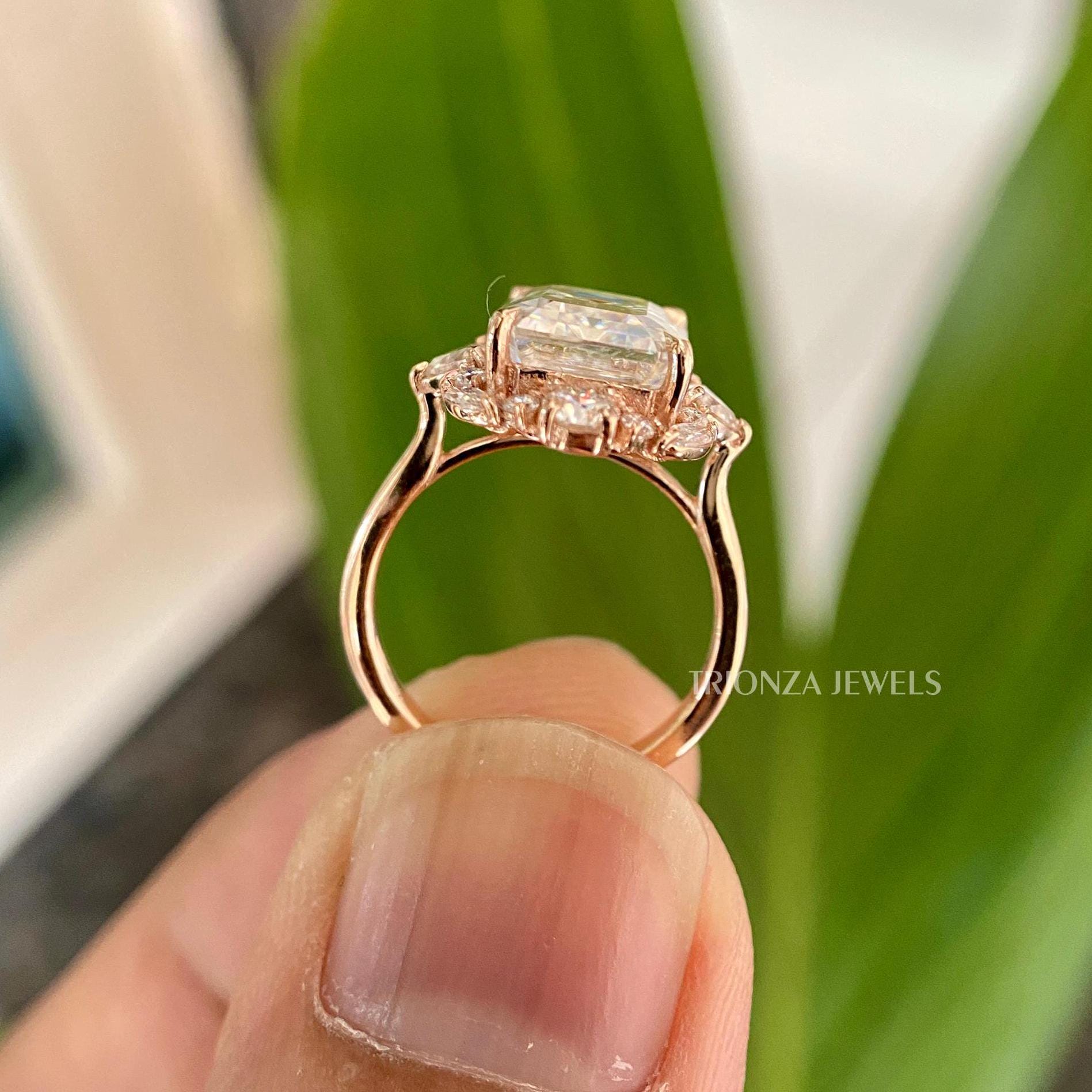 - Diamond Type: Emerald Cut Moissanite