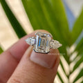 3 CT Emerald Cut Three Stone Ring | 14k Gold Half Bezel Wedding Ring