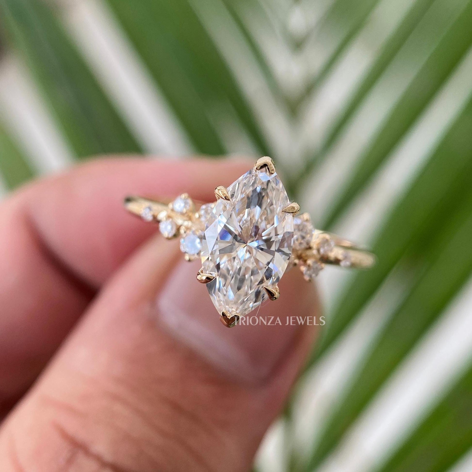 3 CT Marquise Moissanite Engagement Ring | 14K Gold Cluster