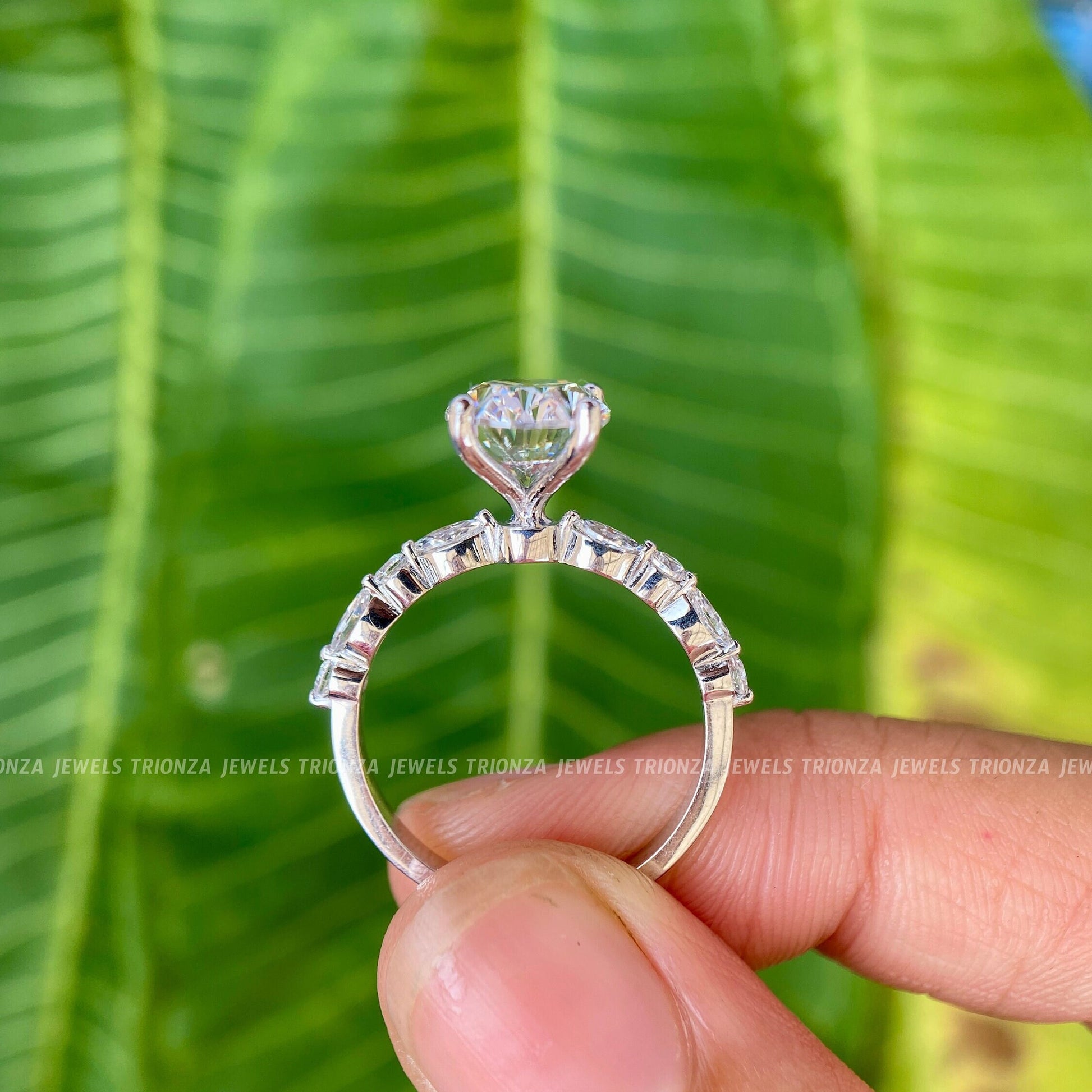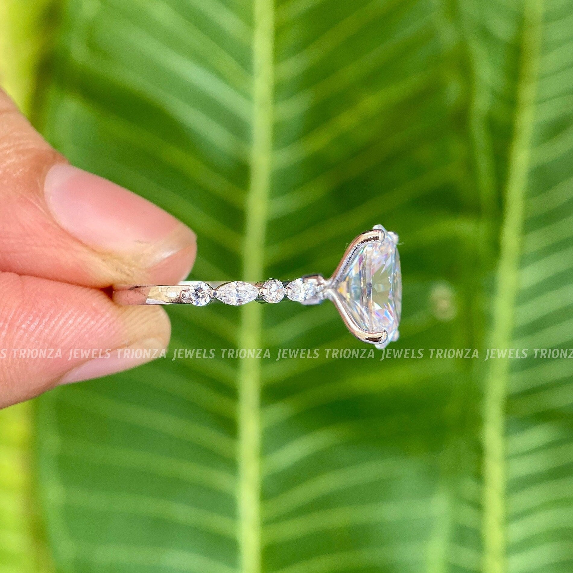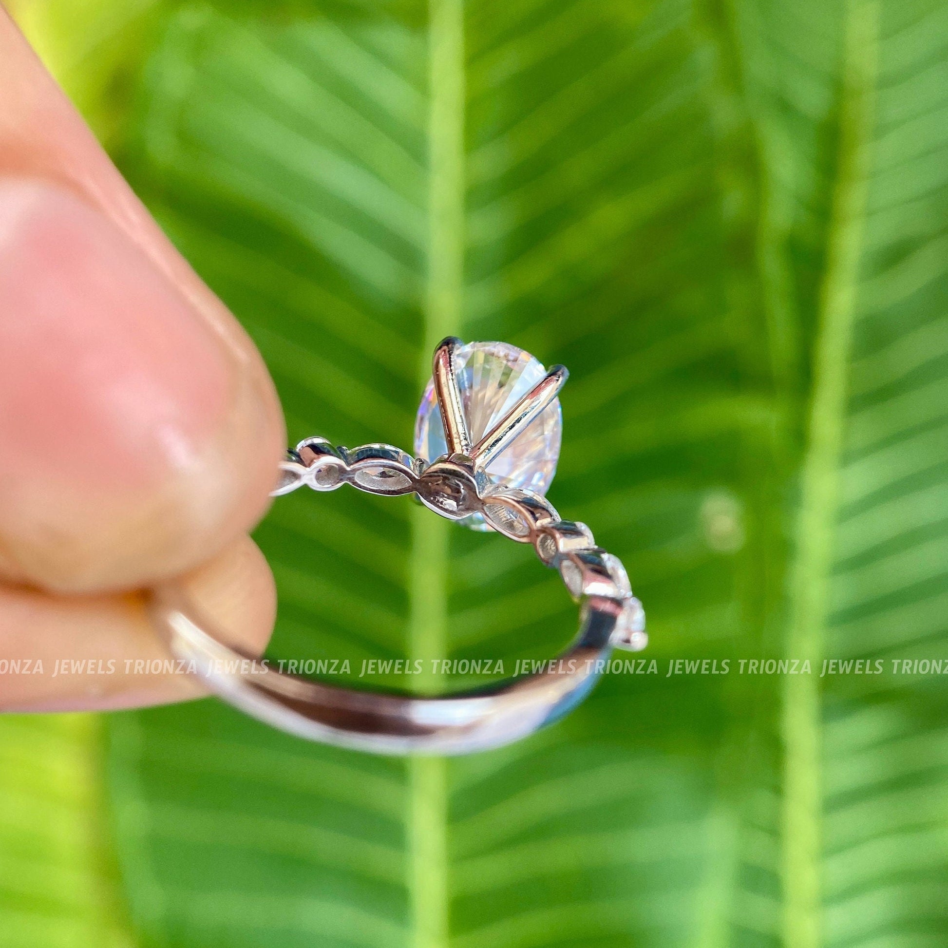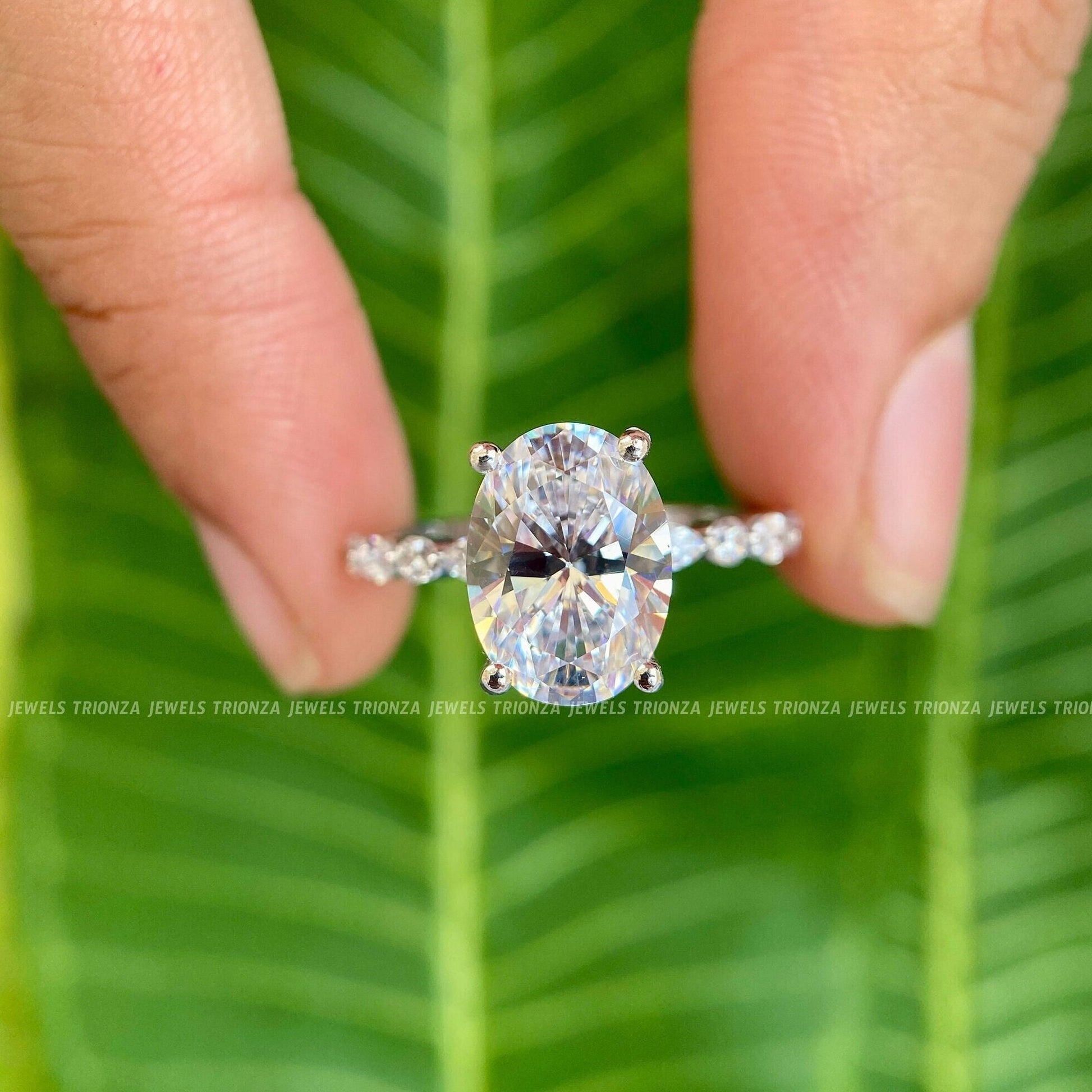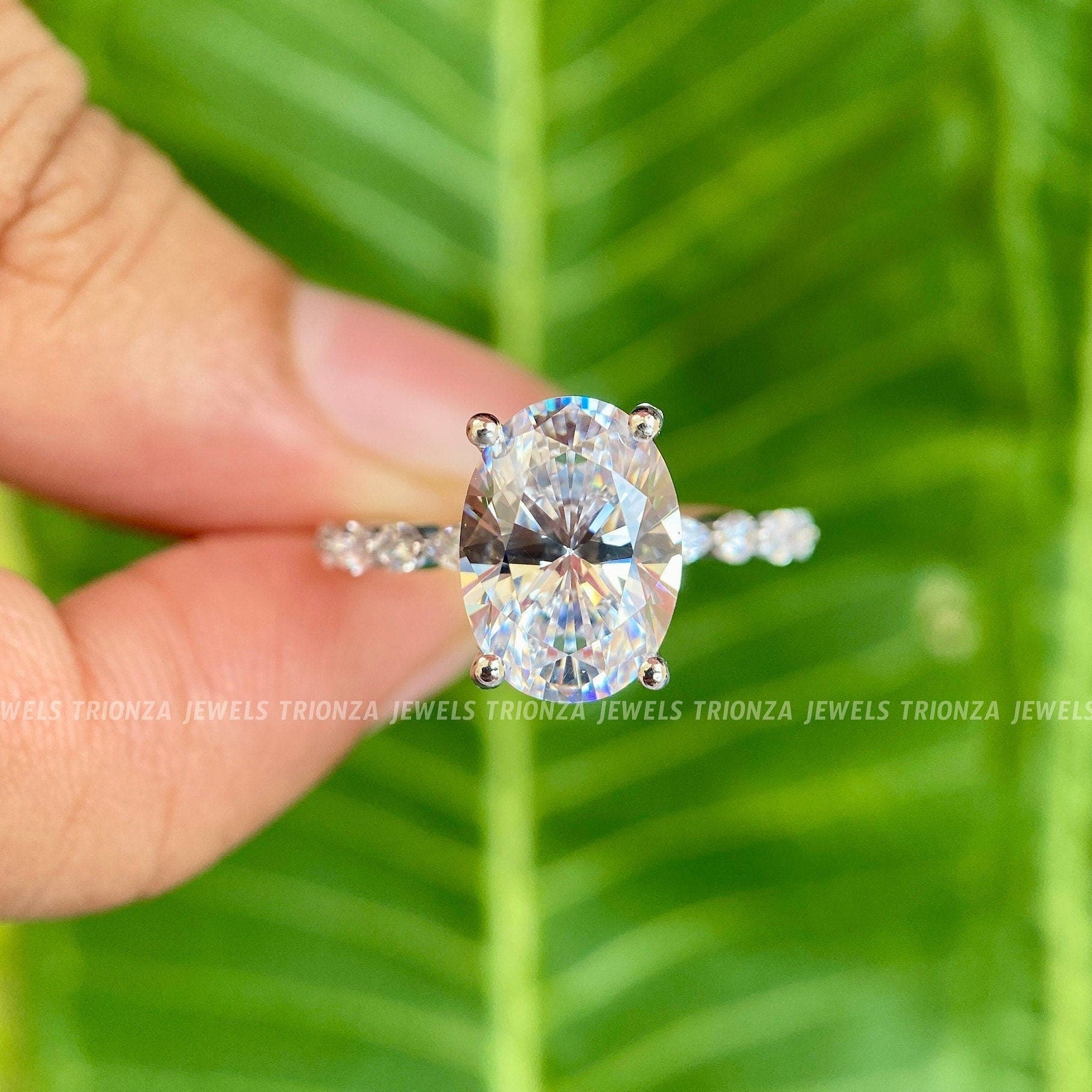 Discover our stunning 3.00 CT Oval Near Colorless Moissanite Engagement Ring. This antique elongated oval cut moissanite ring features an elegant open gap solitaire design, perfect as a wedding ring for her. Moissanite offers a confident-driven and environmentally-friendly alternative to traditional diamonds, also known as Eco-Friendly, Ethical, Sustainable, or Man-Made Diamonds.